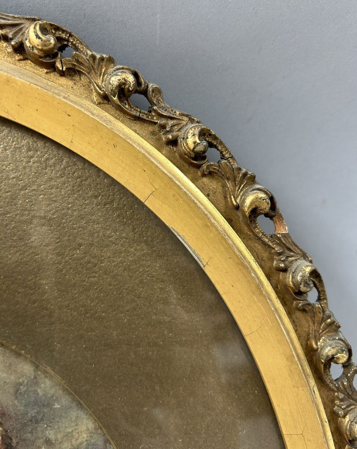 Condition: Good, some chips and scratches on frame, cracks on gesso, sign of use and age