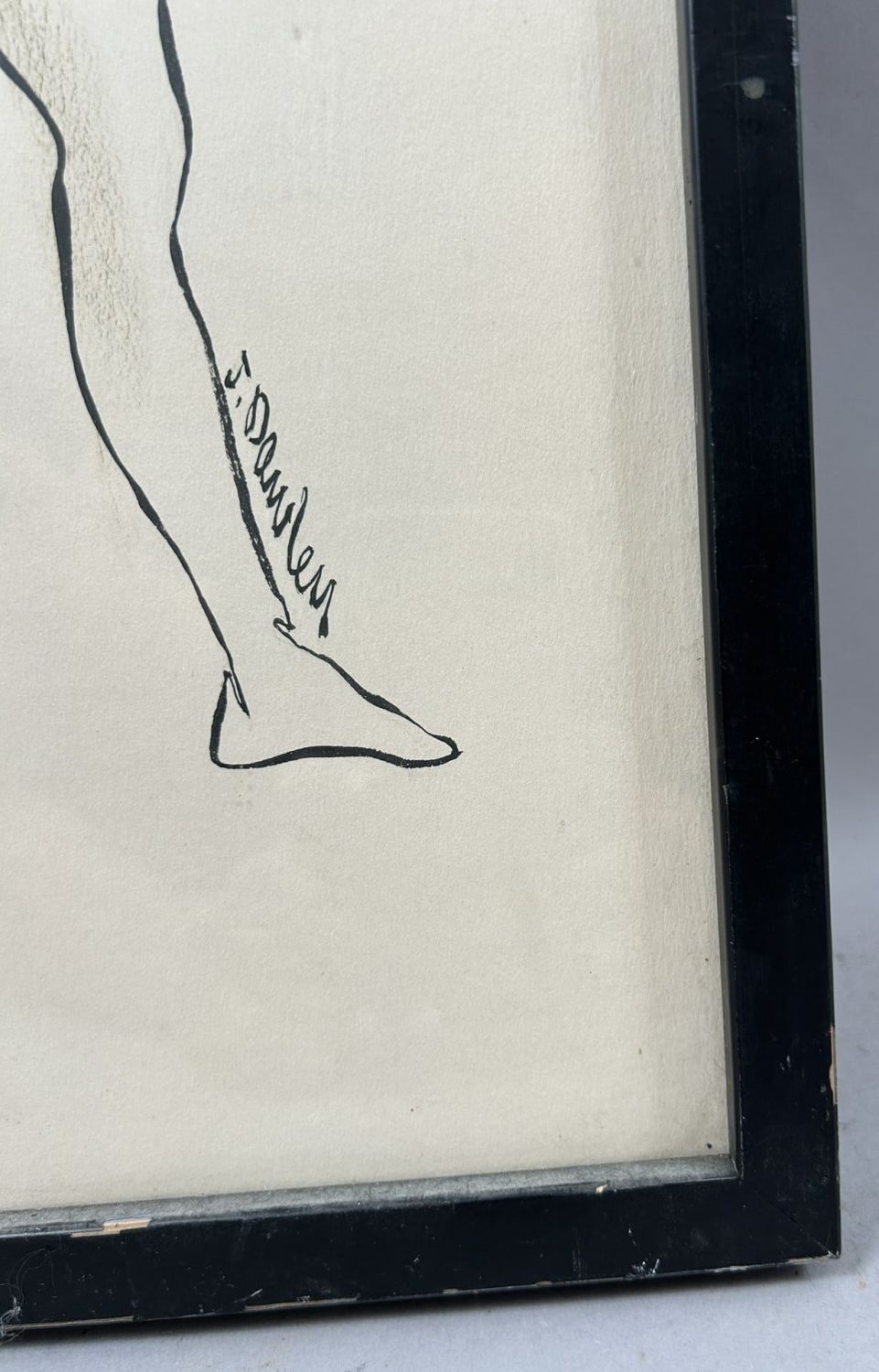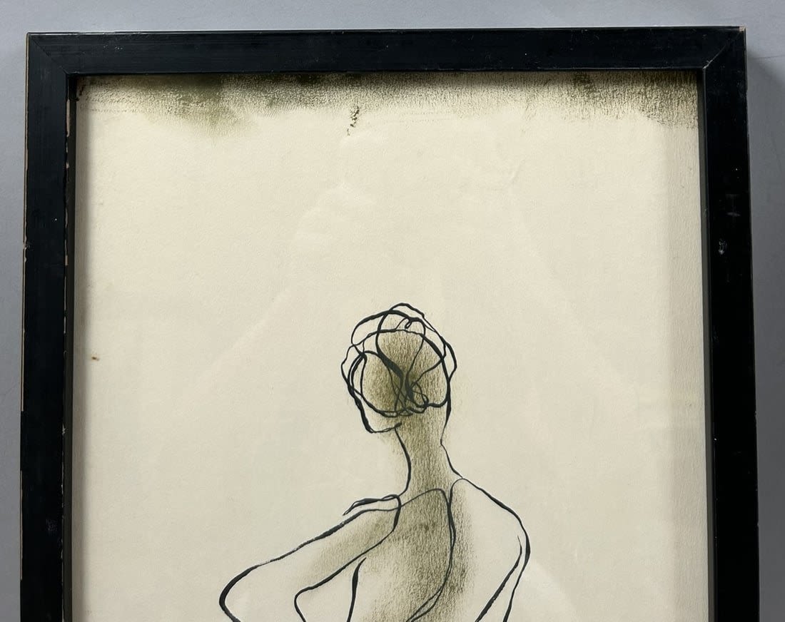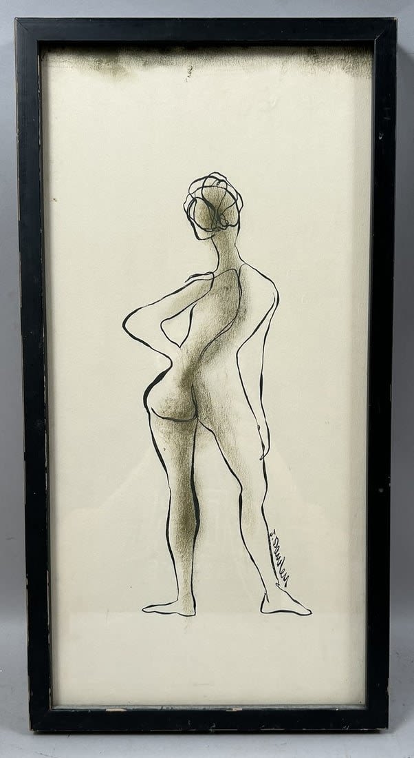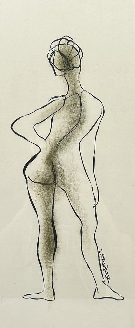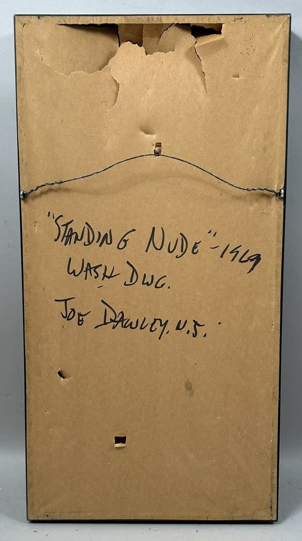Vintage Nude Woman Portrait, Signed by Joe Dawley, 1969, Titled ”Standing Nude”, frame size 19.5”h x 10”w and sight size 18.5”h x 9”w