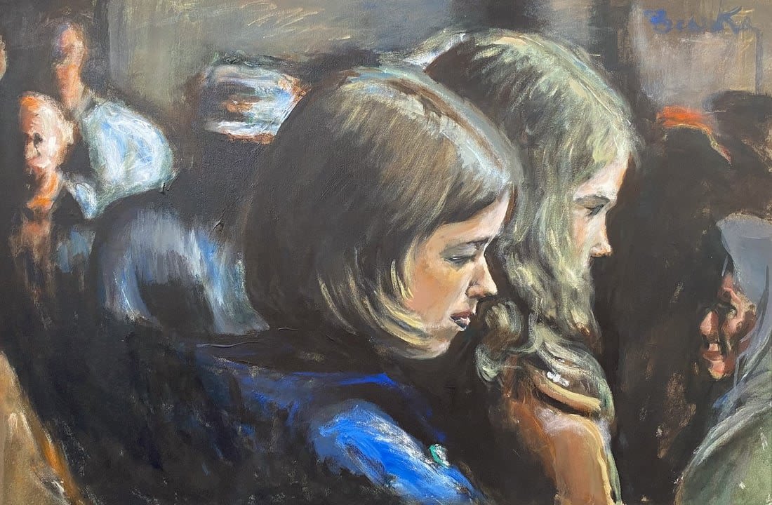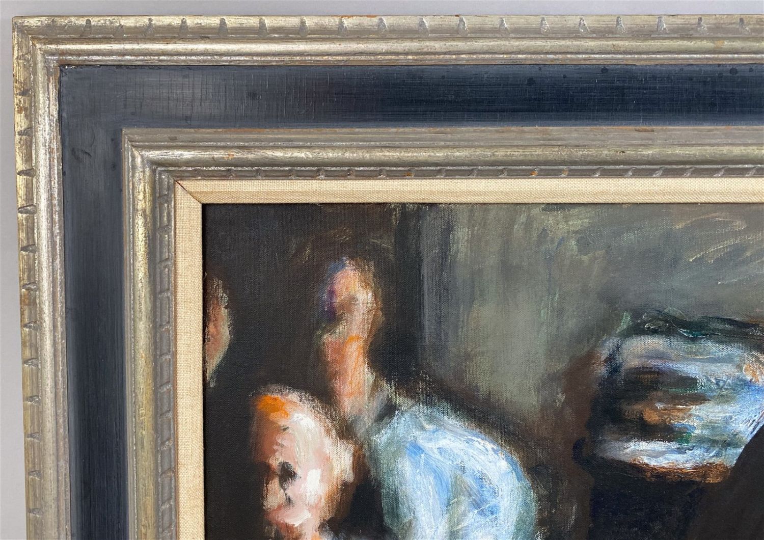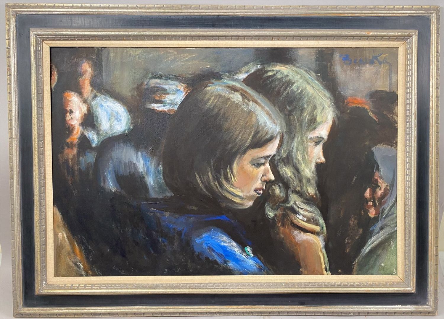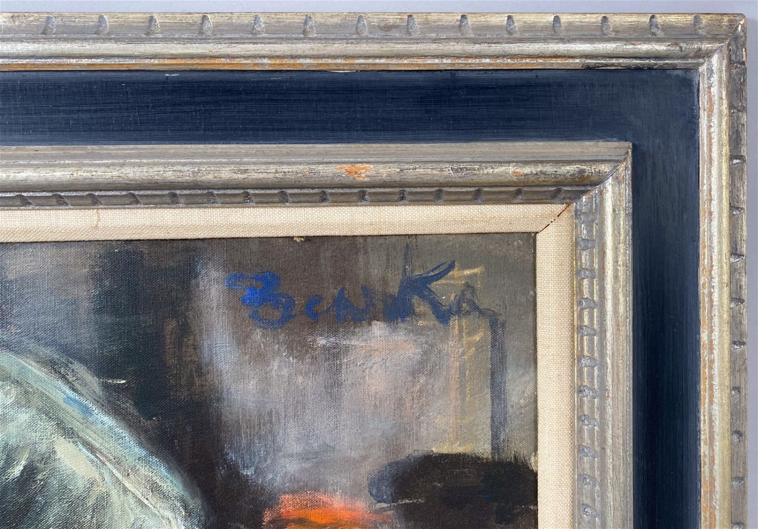 Vintage Large Oil on Canvas Portrait, Signed by Benska at Upper Right, frame size 32.5”h x 44.5”w and sight size 23.5”h x 35.5”w Condition: Good, minor chips and scratches on frame