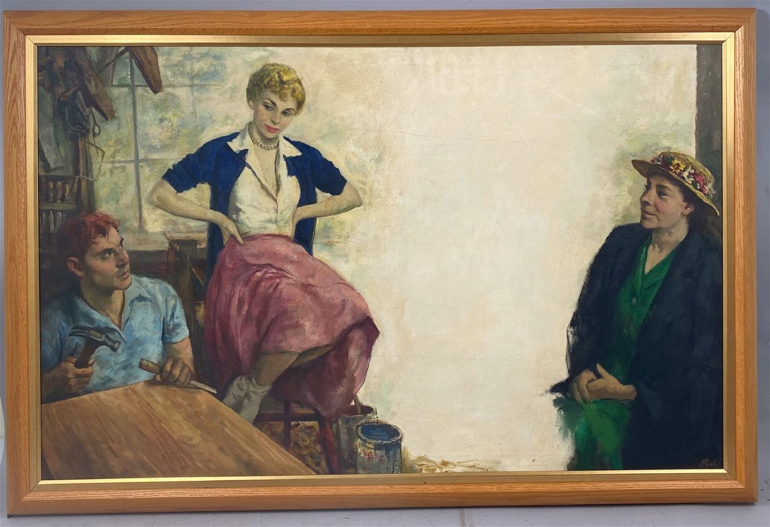 Vintage Oil on Canvas Portrait, Illegibly Signed at Lower Right, frame size 32”h x 48”w and sight size 27”h x 43”w Condition: Good