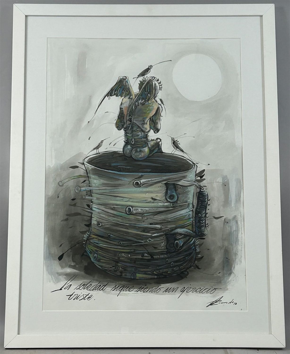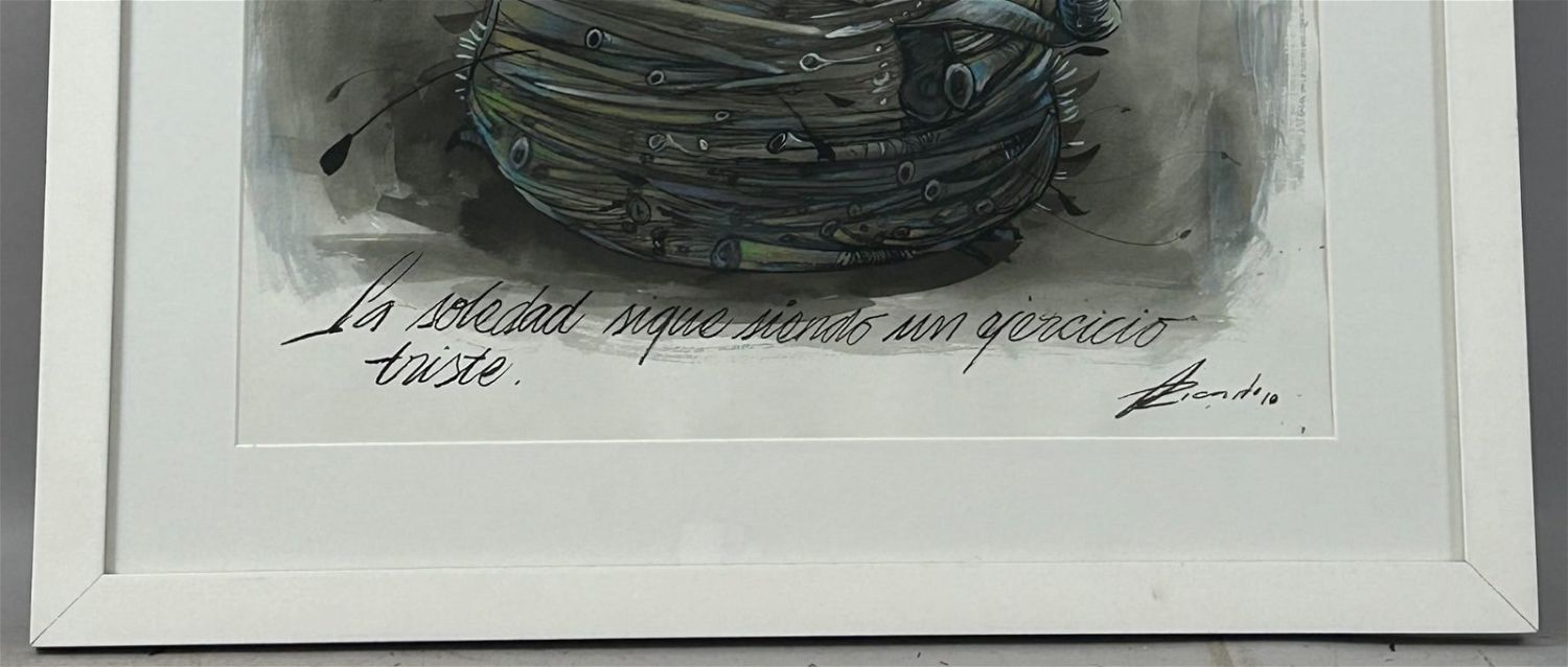 Contemporary Watercolor Abstract Painting, Signed by Ricardo at Lower Right, frame size 35”h x 27”w and sight size 28”h x 20”w Condition: Good