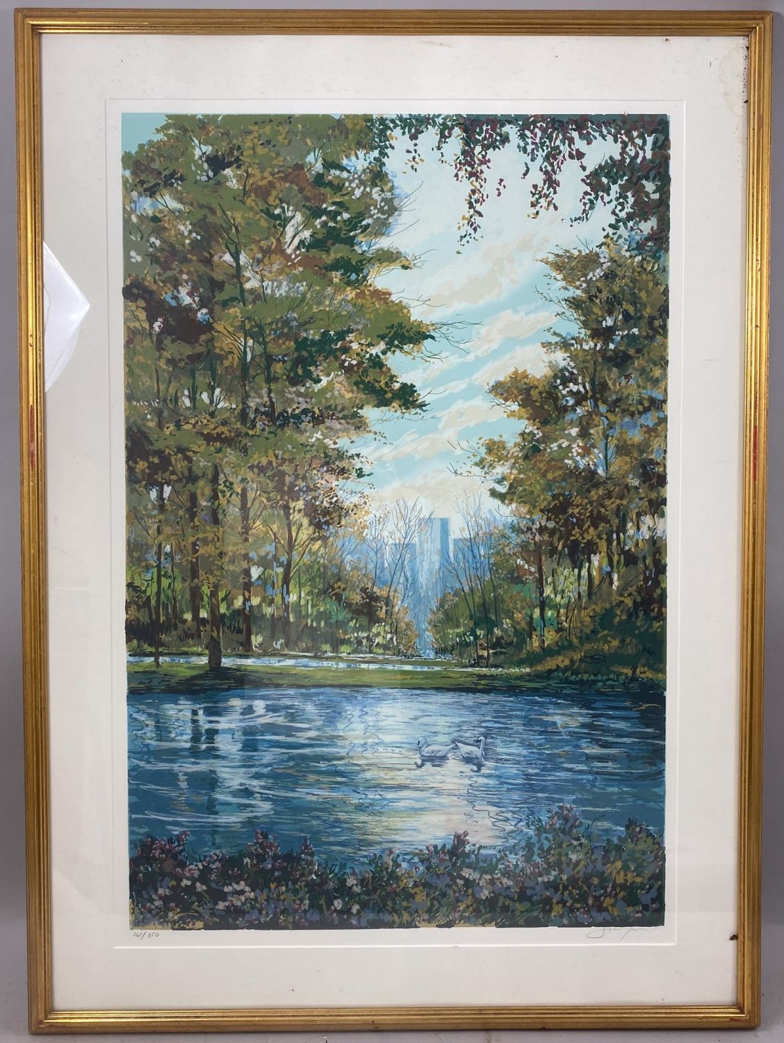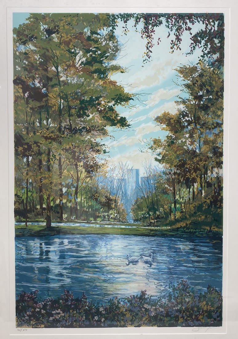 Titled as ”Silver Lake”, Pencil Signed by Michael Schofield, frame size 45”h x 32.75”w and sight size 24”h x 36”w Condition: Good