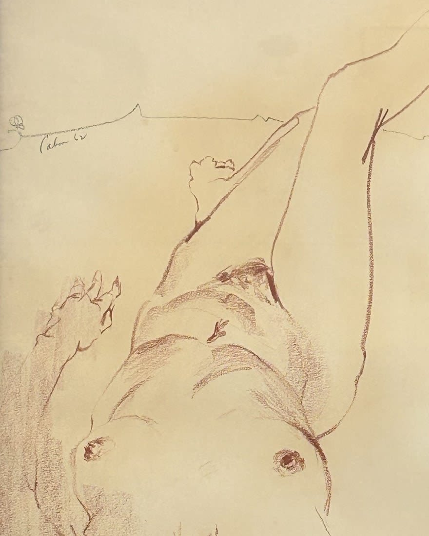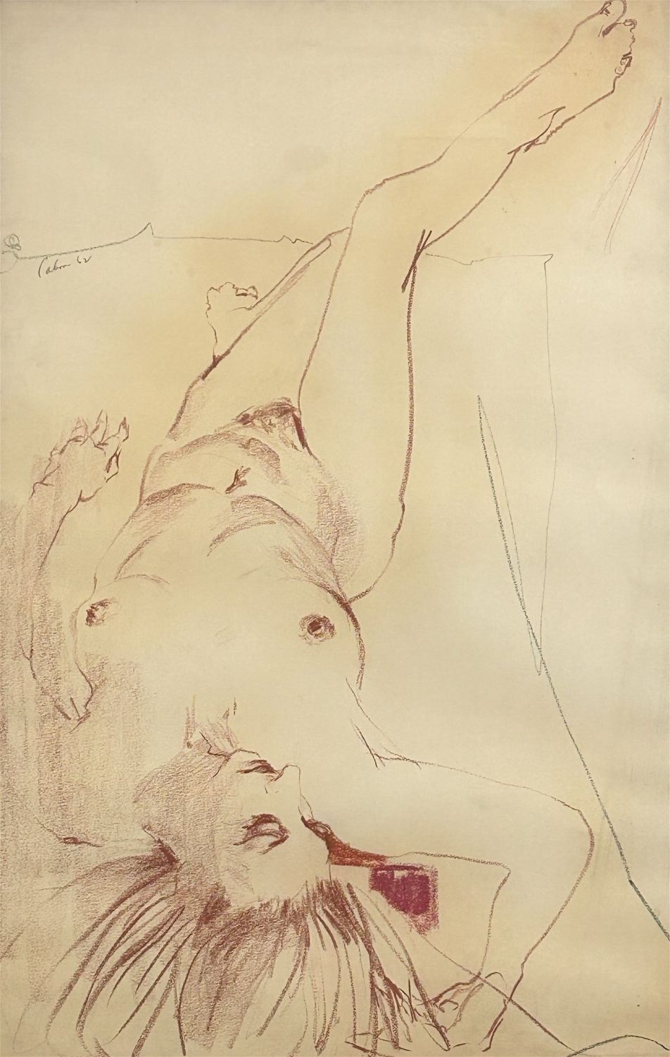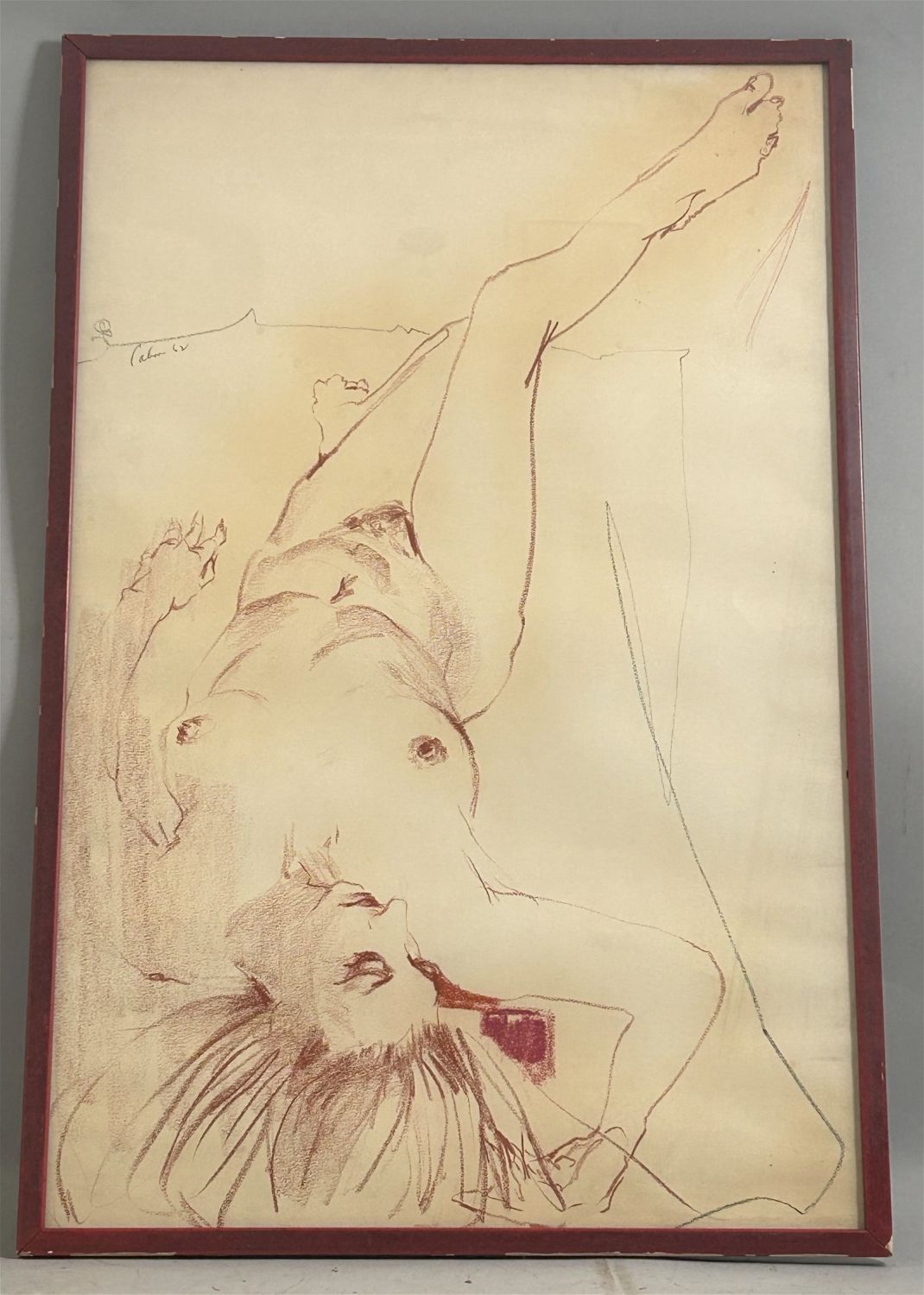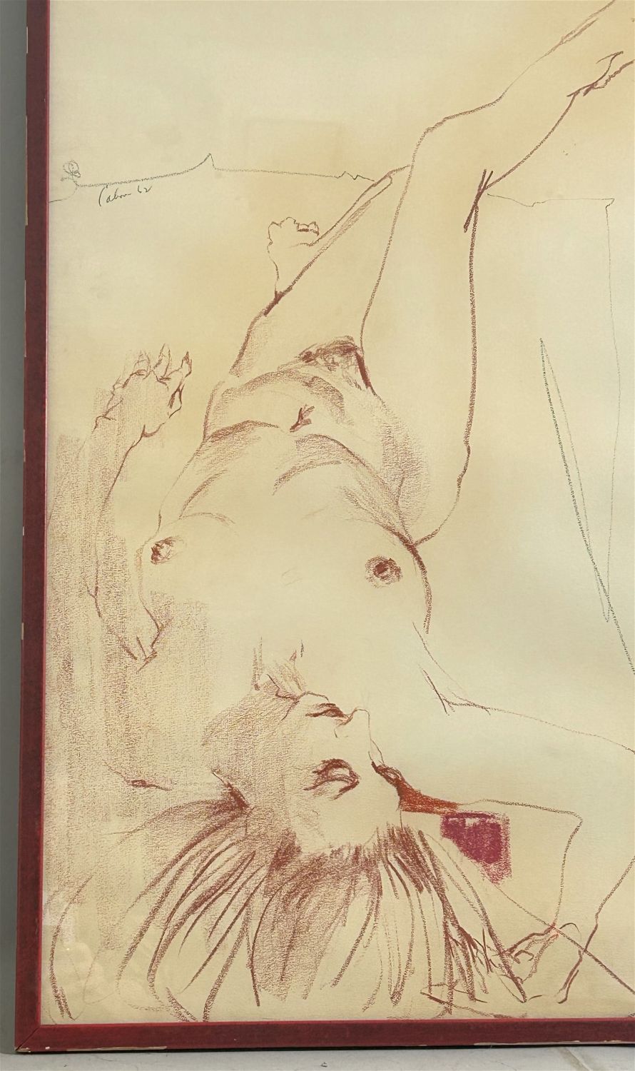Vintage Large Pencil or Pastel Drawing Reclining Woman Portrait