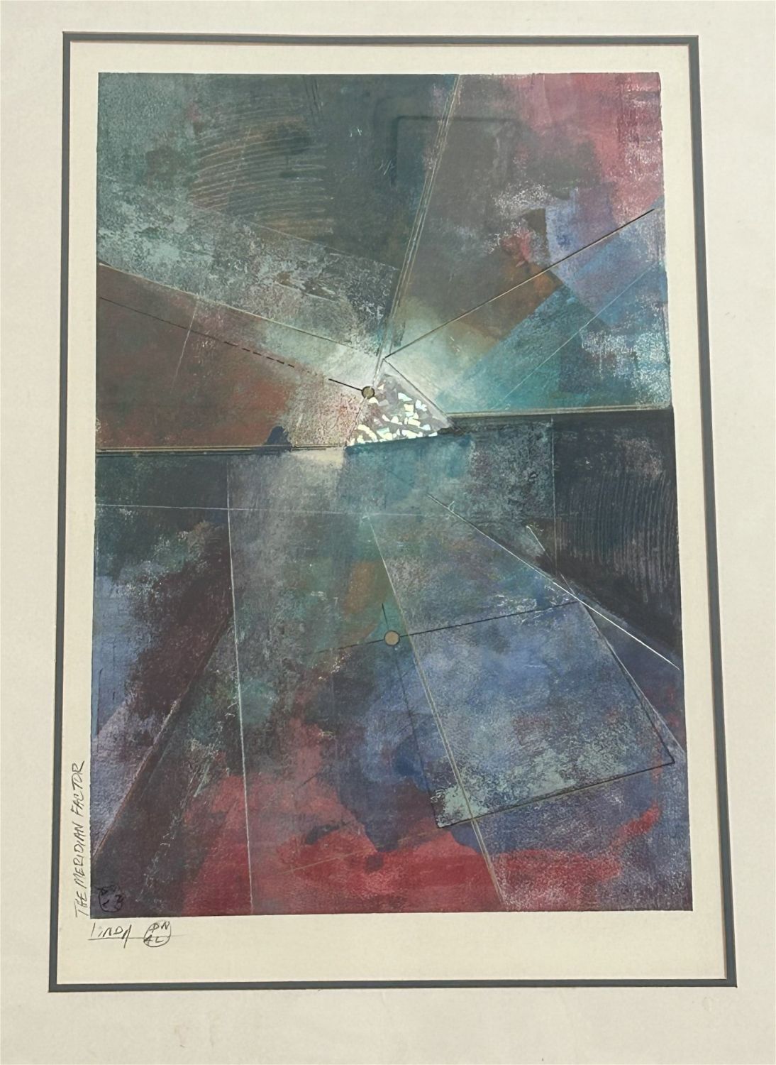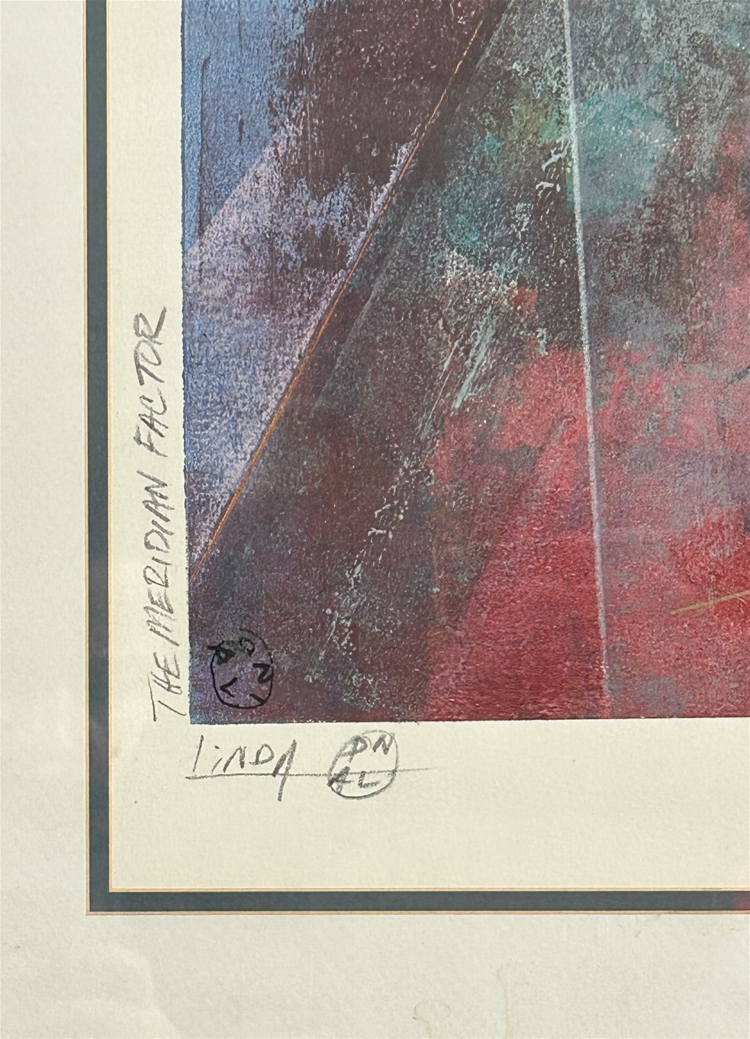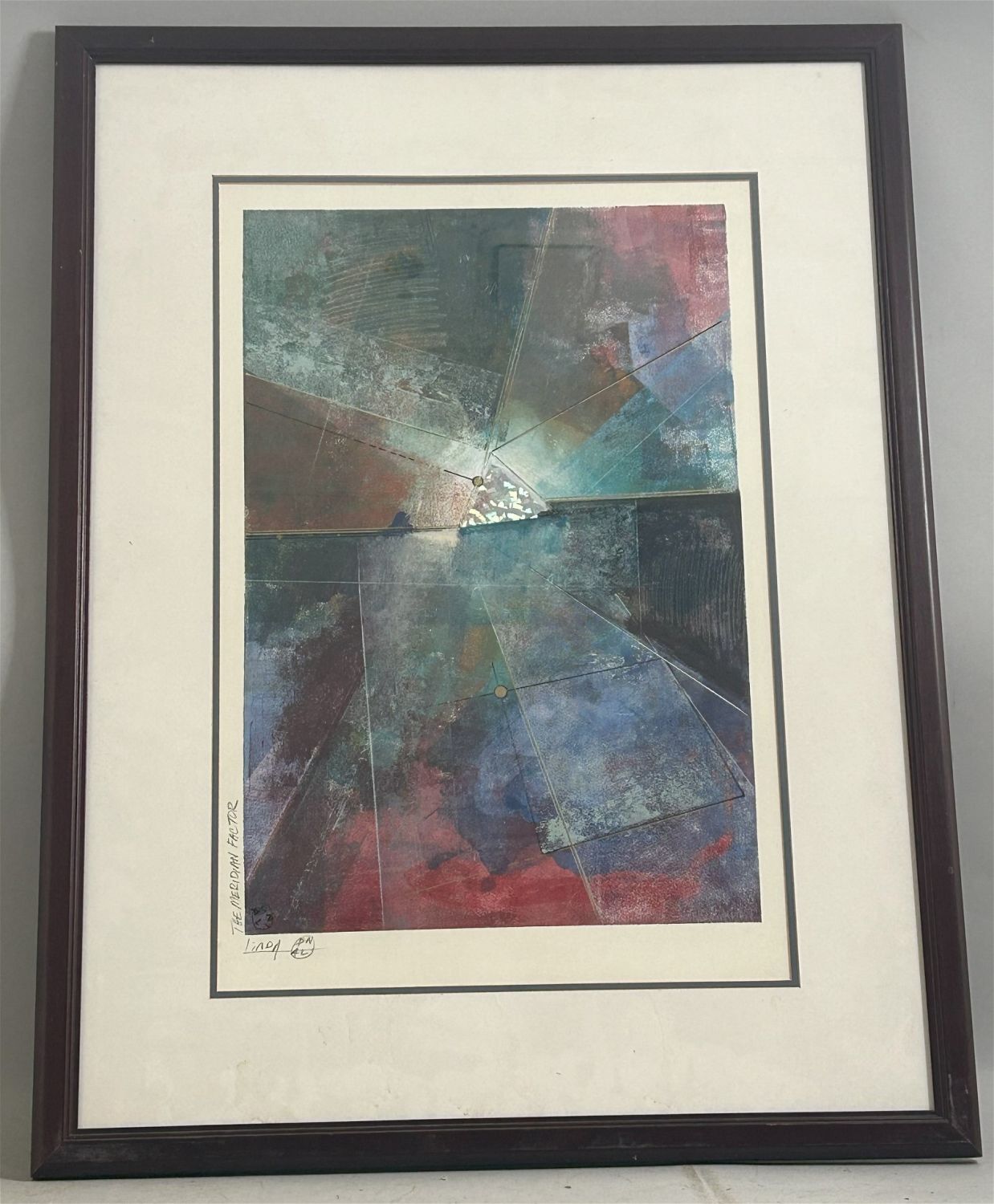 Vintage Large Art Print, Pencil Signed by Linda with a title ”The Meridian Factor”, frame size 37.25”h x 28.5”w and sight size 29”h x 16”w