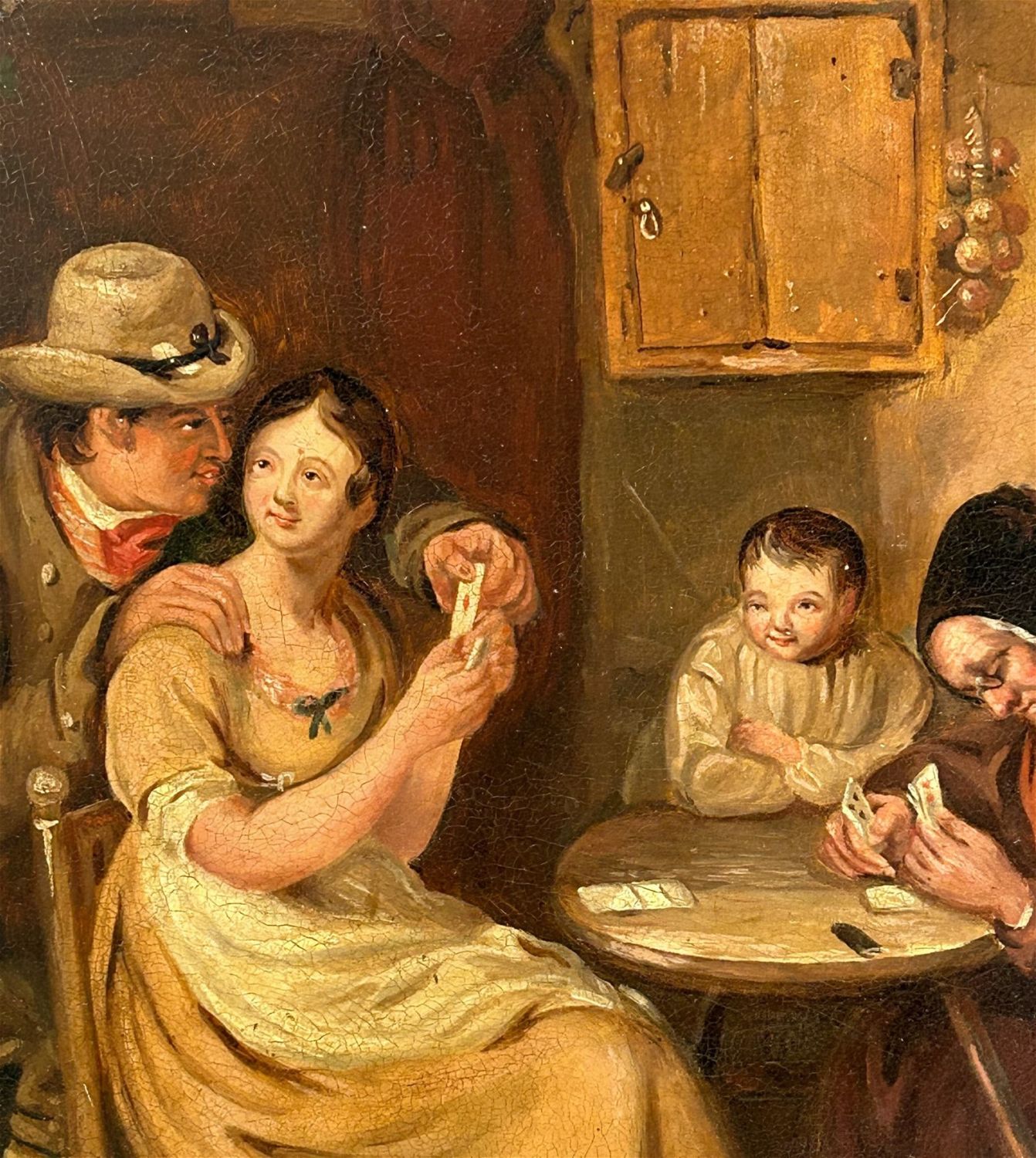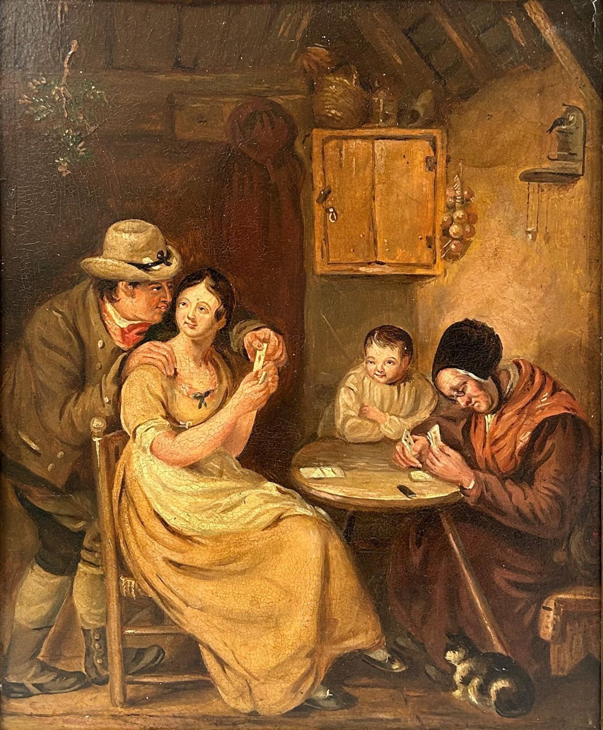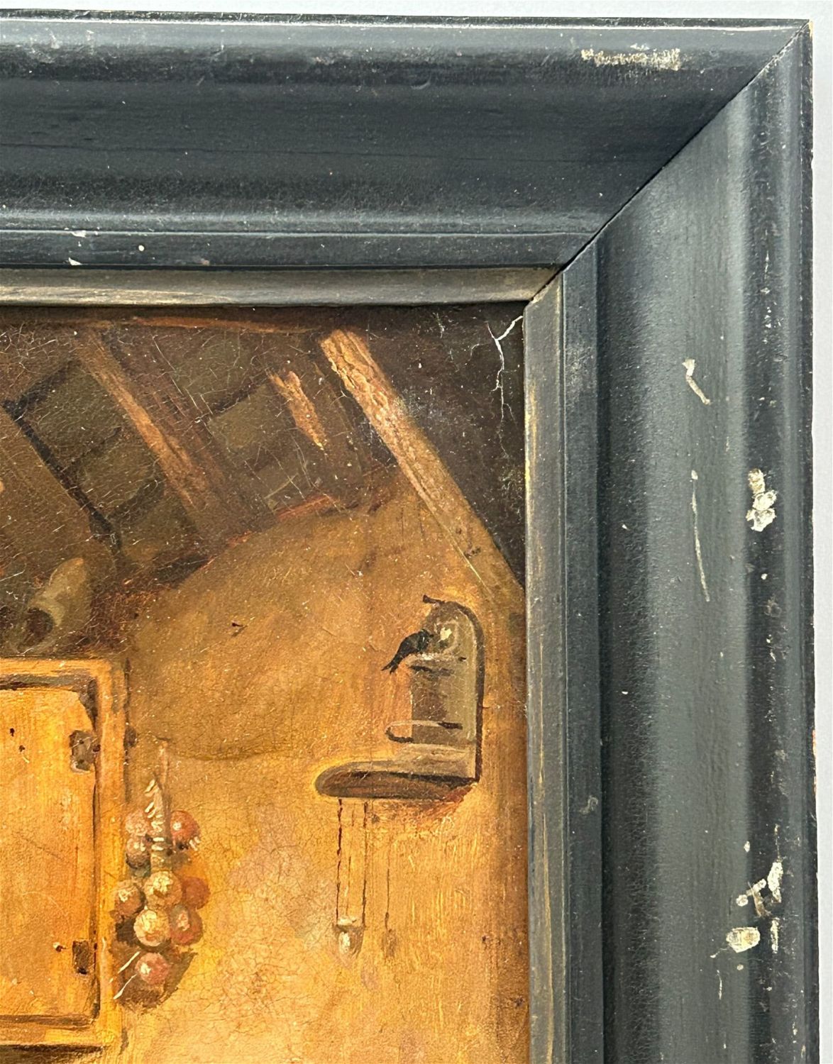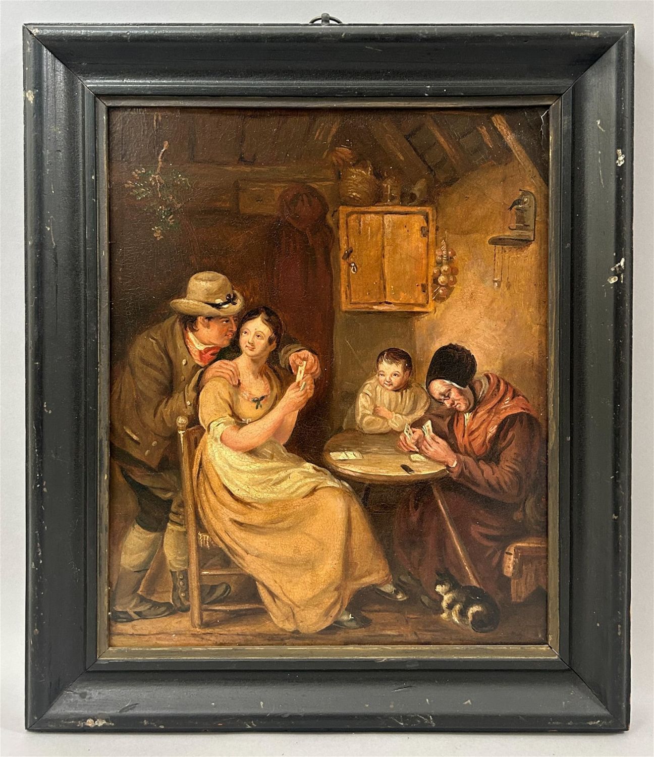 Condition: Good, minor craquelures, some scratches and chips on frame, sign of aging