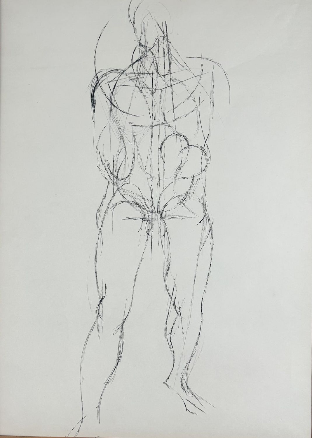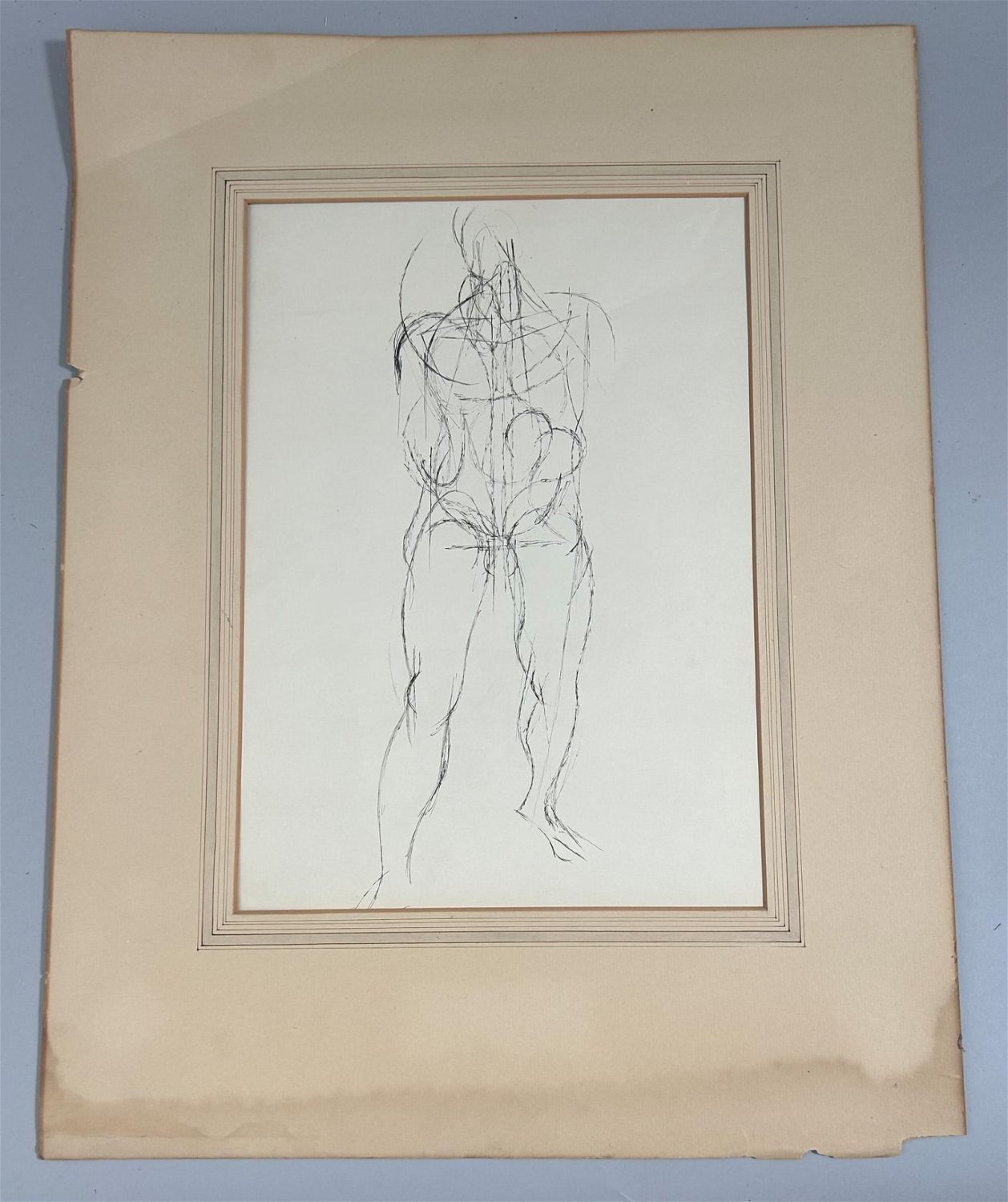 Illustration of a Man, Pencil Drawing, Unsigned, frame size 22"H x 17"W and sight size 14"H x 10"W