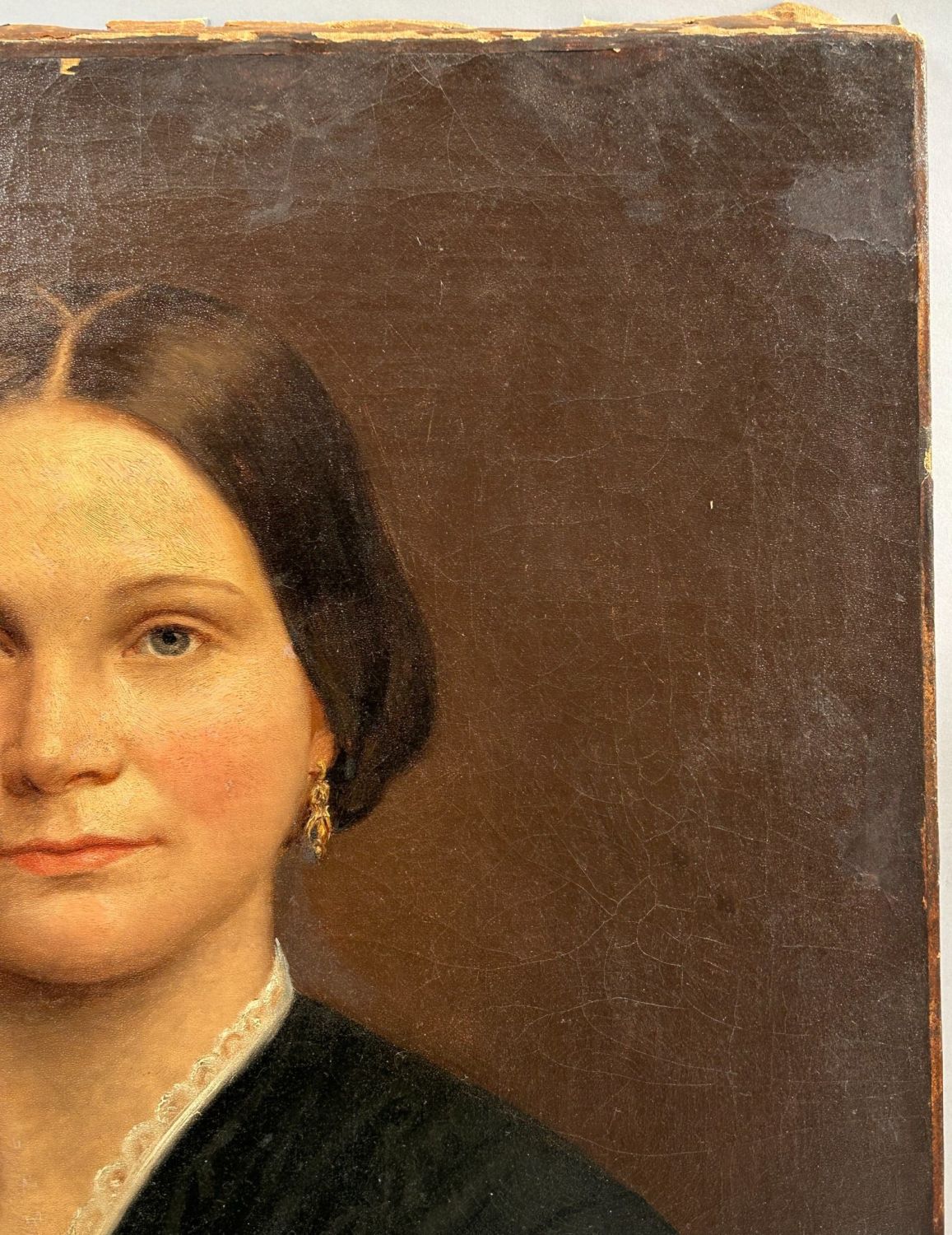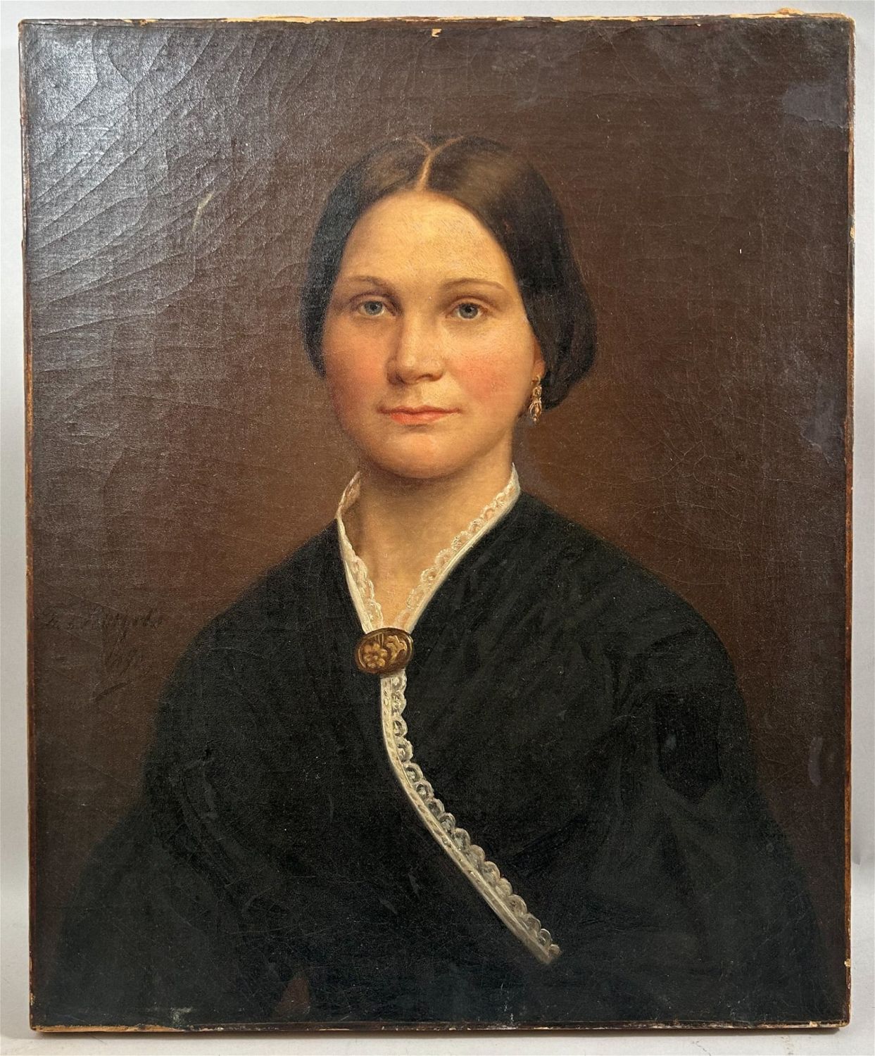 Antique Oil on Canvas Woman Portrait , illegibly signed, 1890, canvas size 25.5"H x 21"W