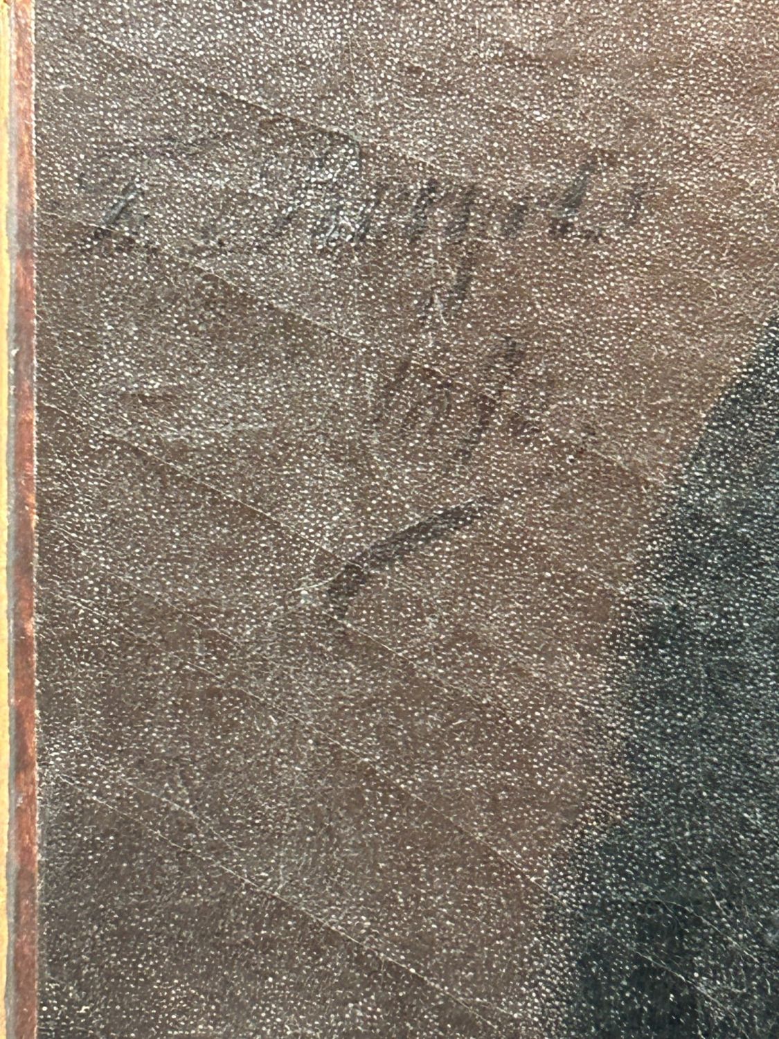 Condition: Good, some craquelures, some scratches and scuffs on edges, canvas is slighlty detached from frame, sign of aging