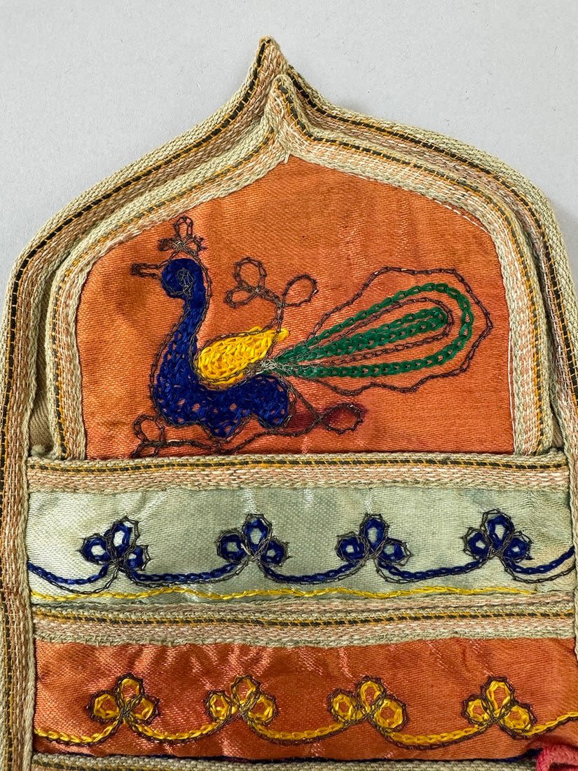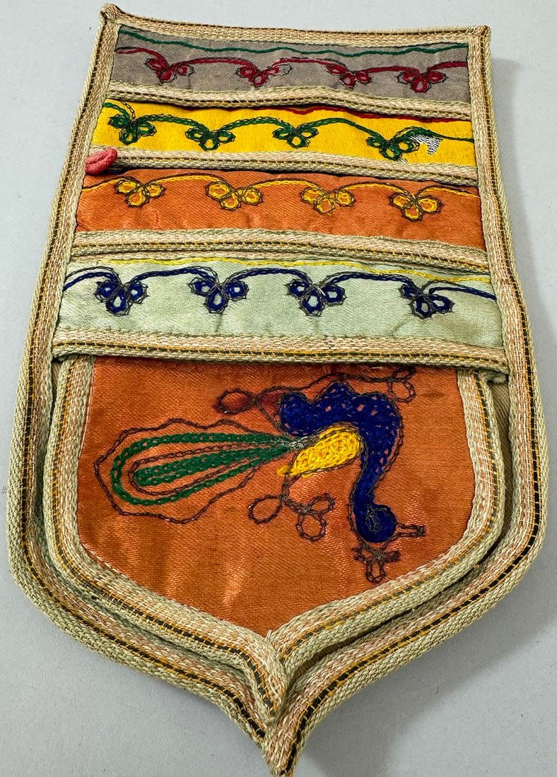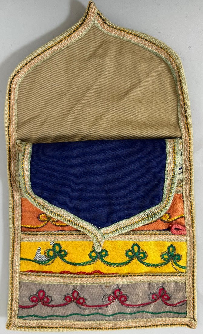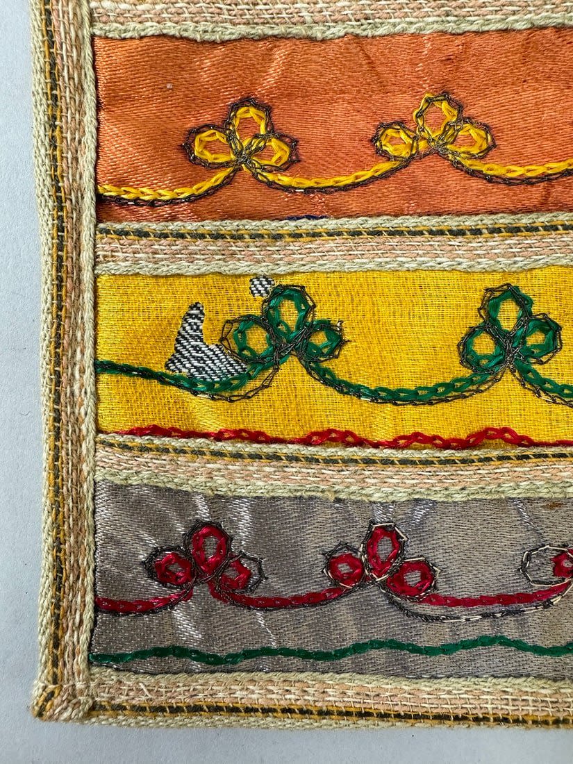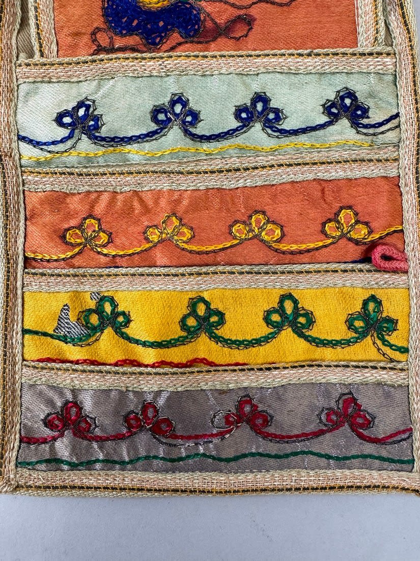 Vintage multi color and design Asian Textile. Multiple pockets in front. The top layer is silk fabric and the rest is cotton. 10.5 L x 6.5W in.