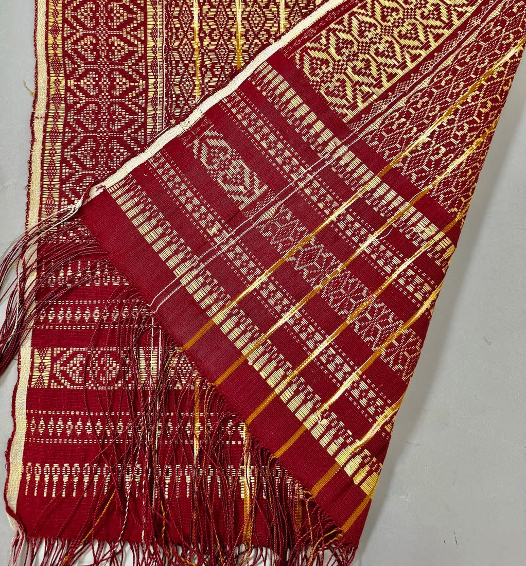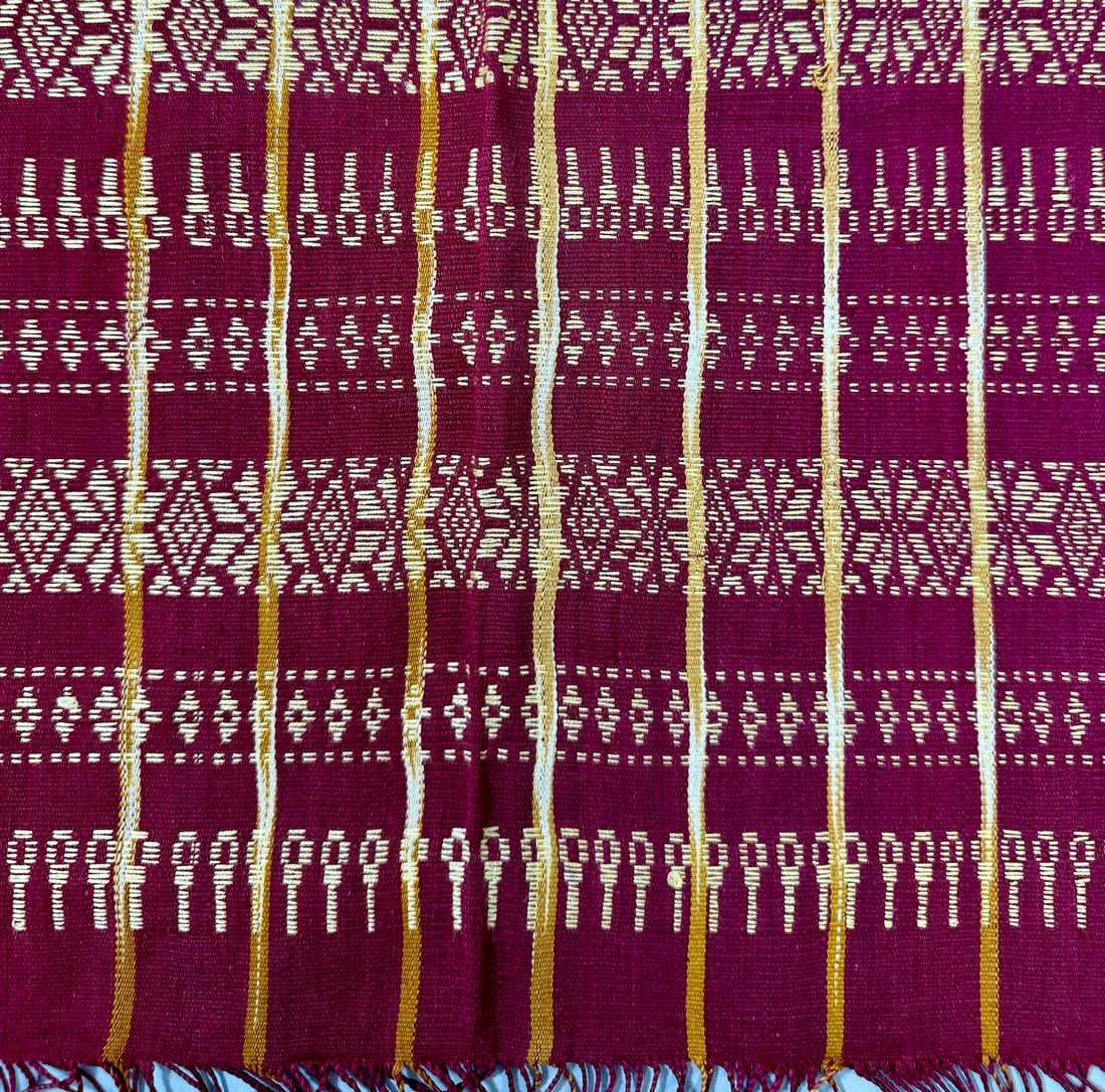 Southeast Asian cotton pattern textile/shawl D: 74L x 21W in.
