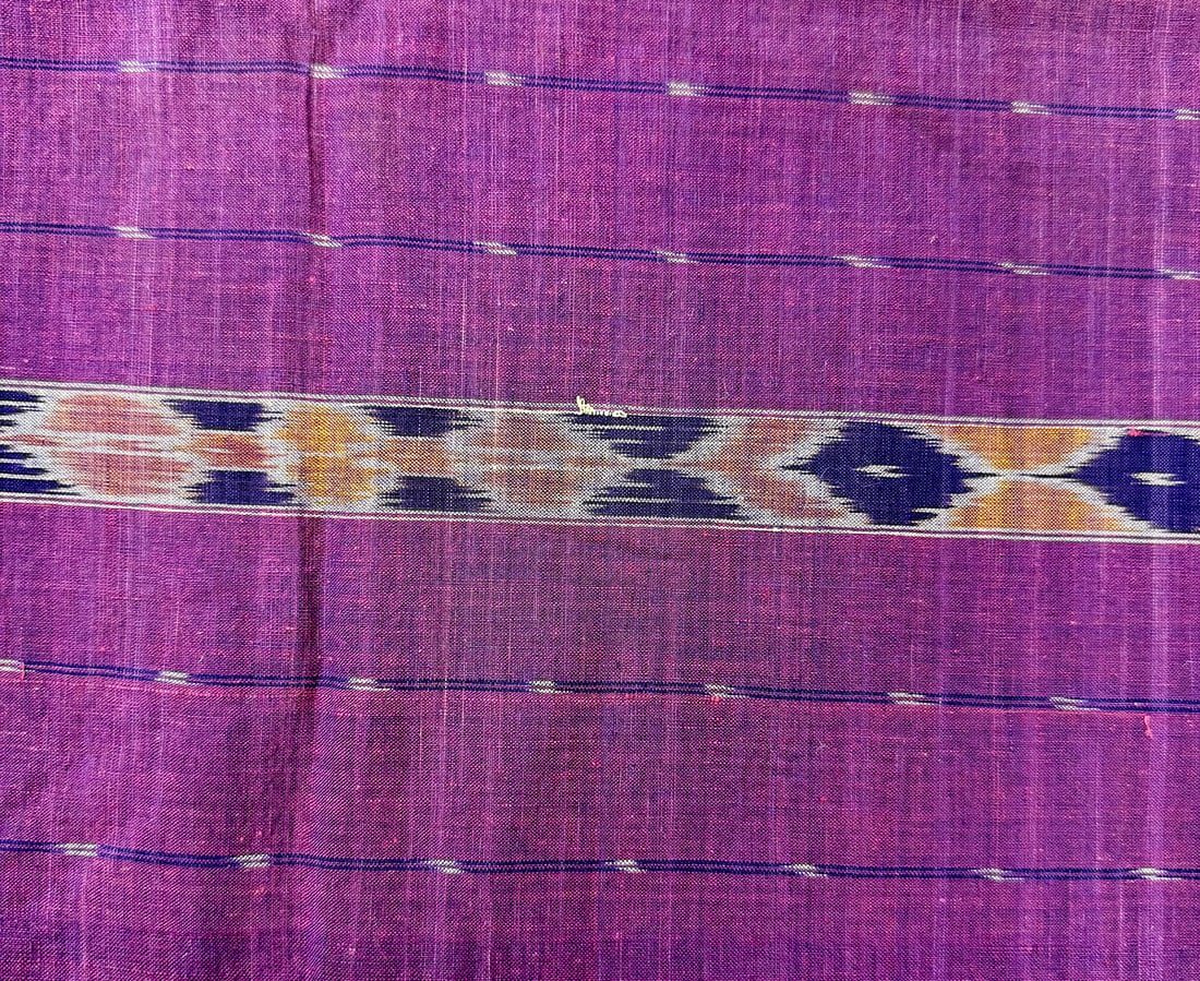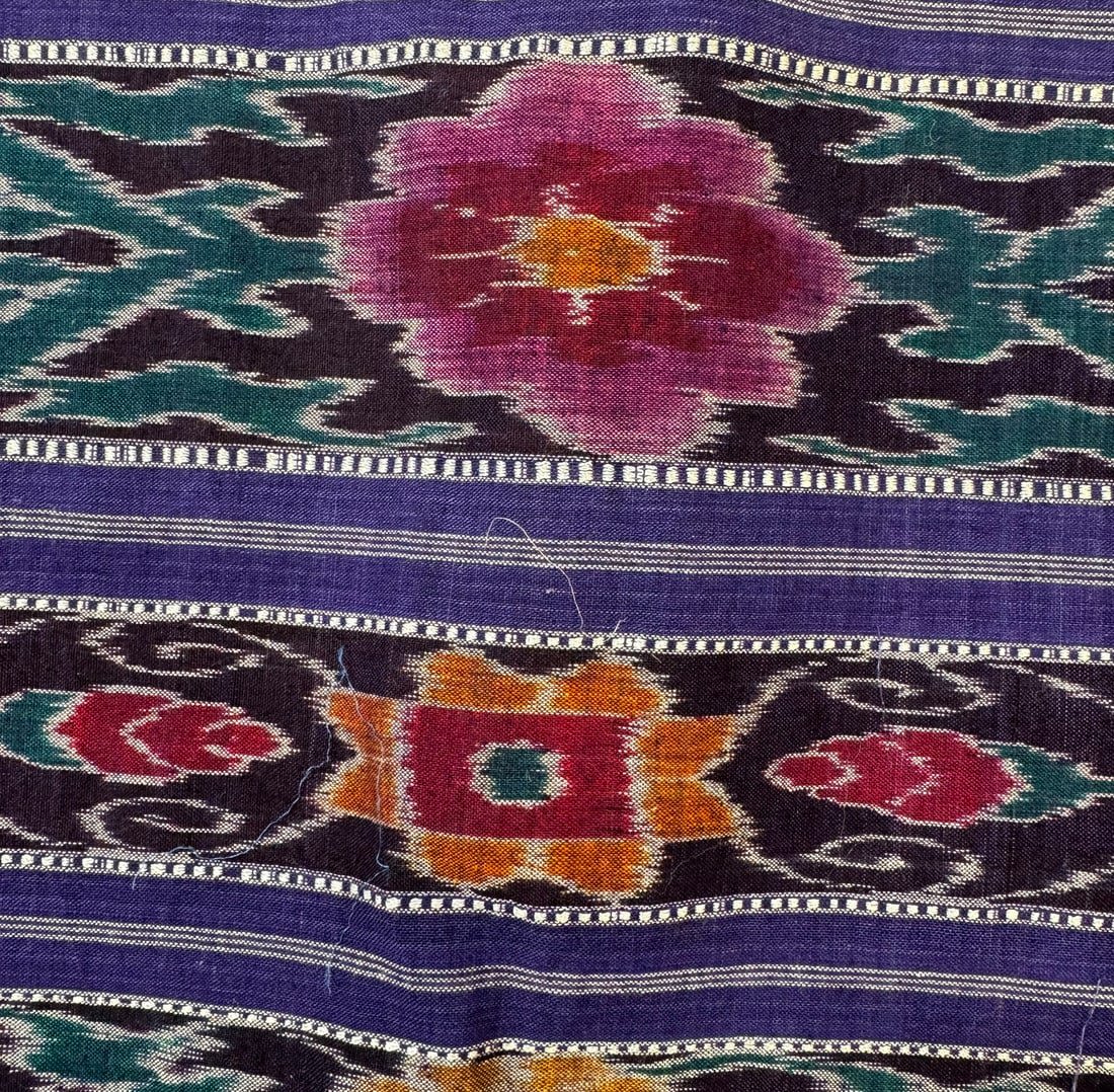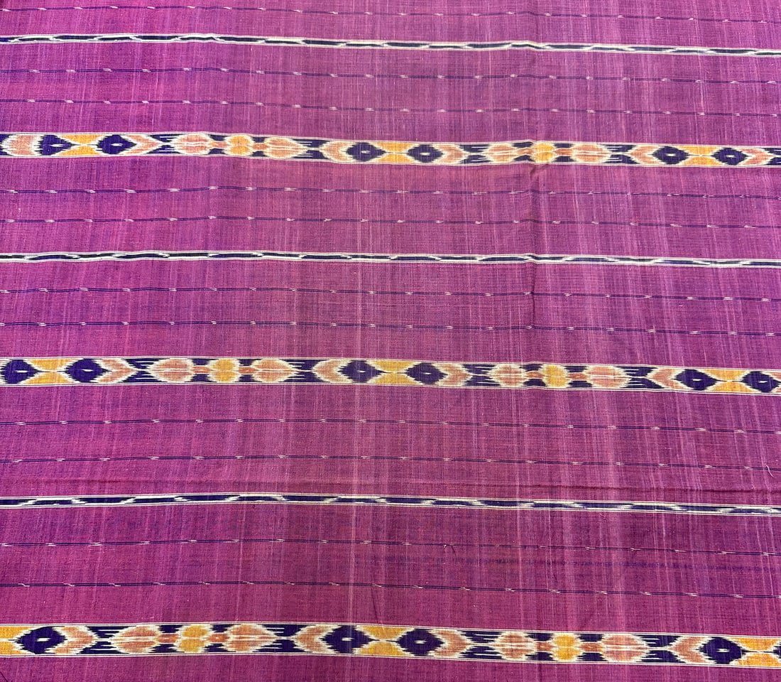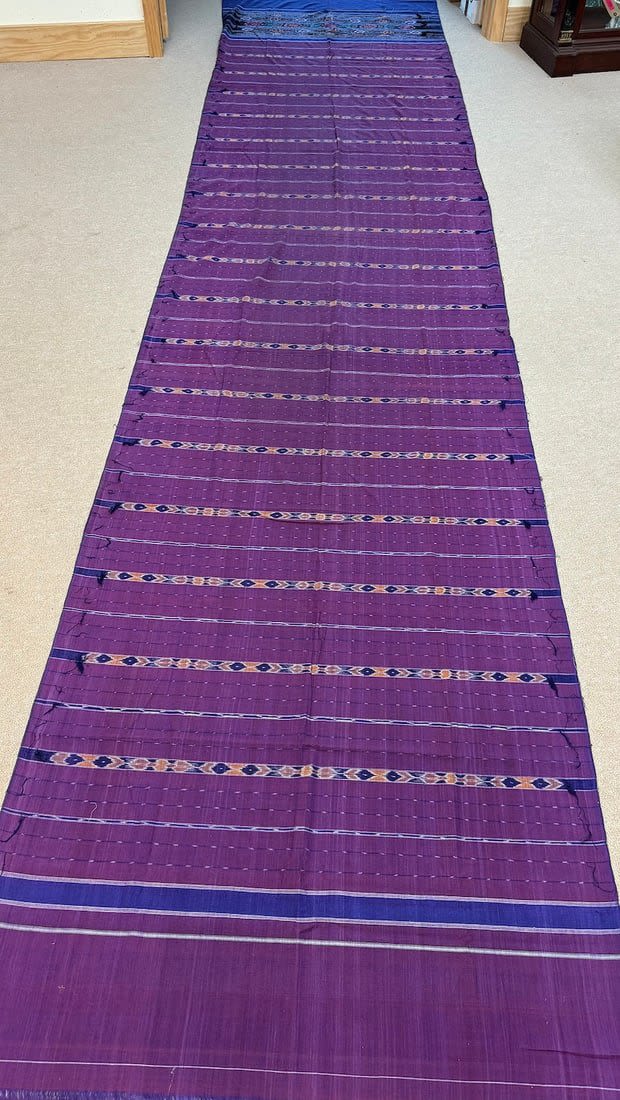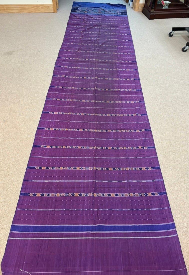 Possibly Indonesian hand-woven cotton ikat textile. D: 186L x 52W in.