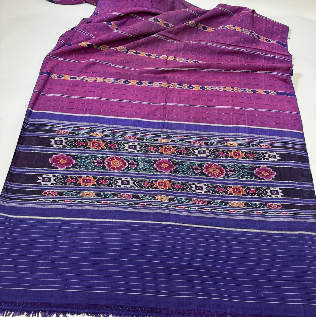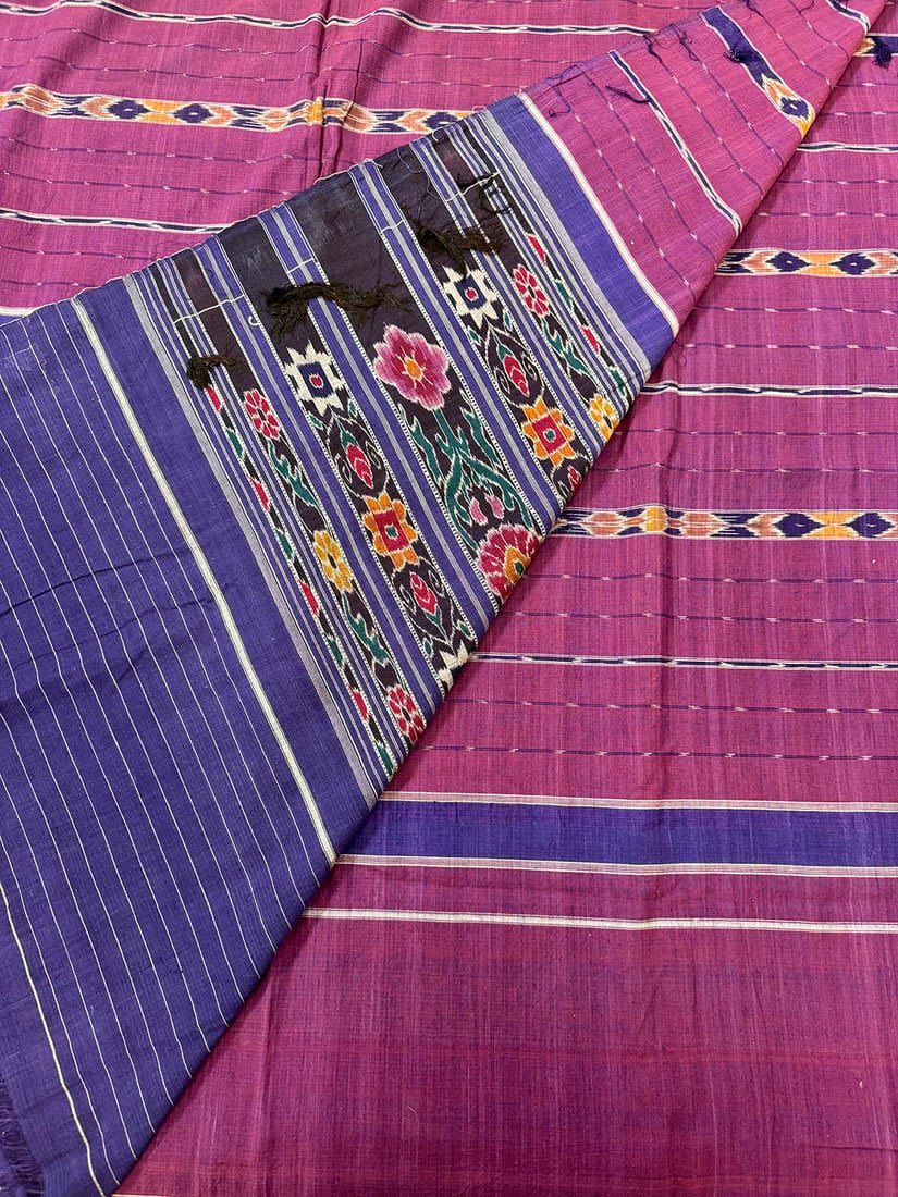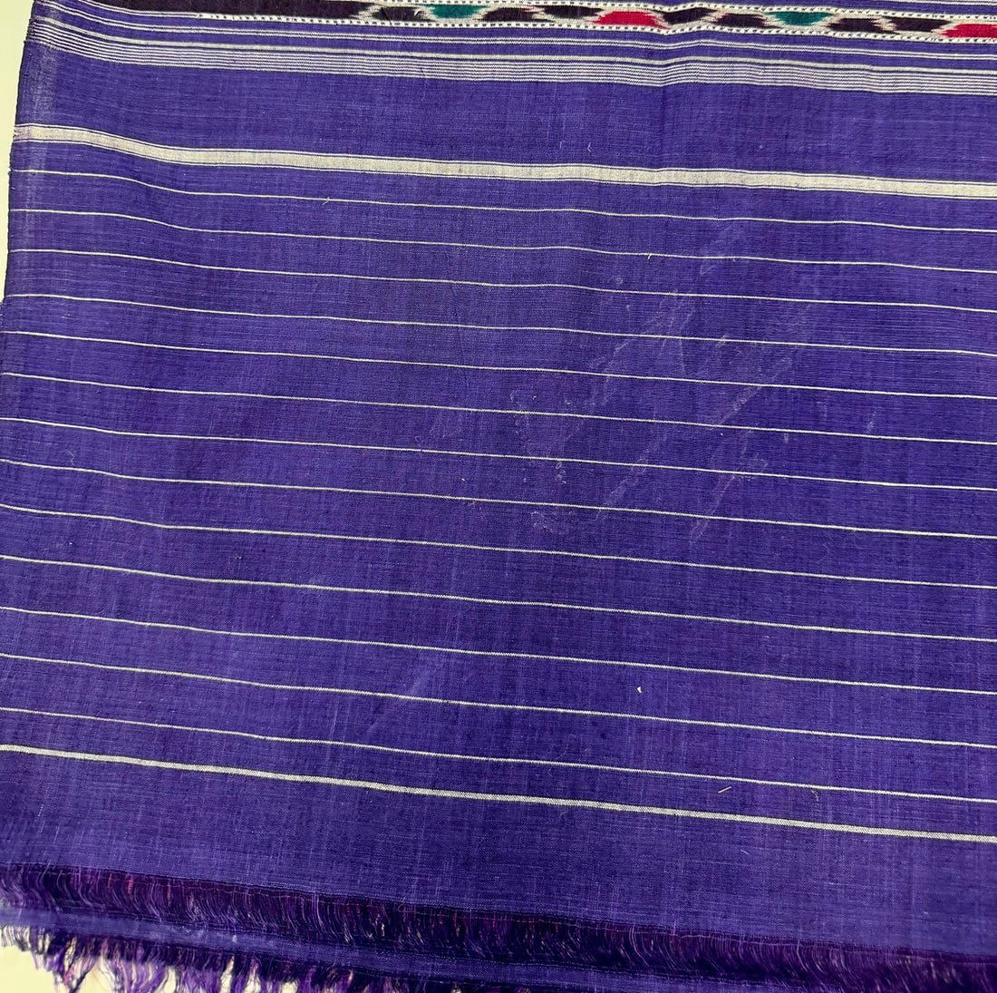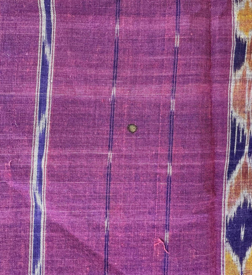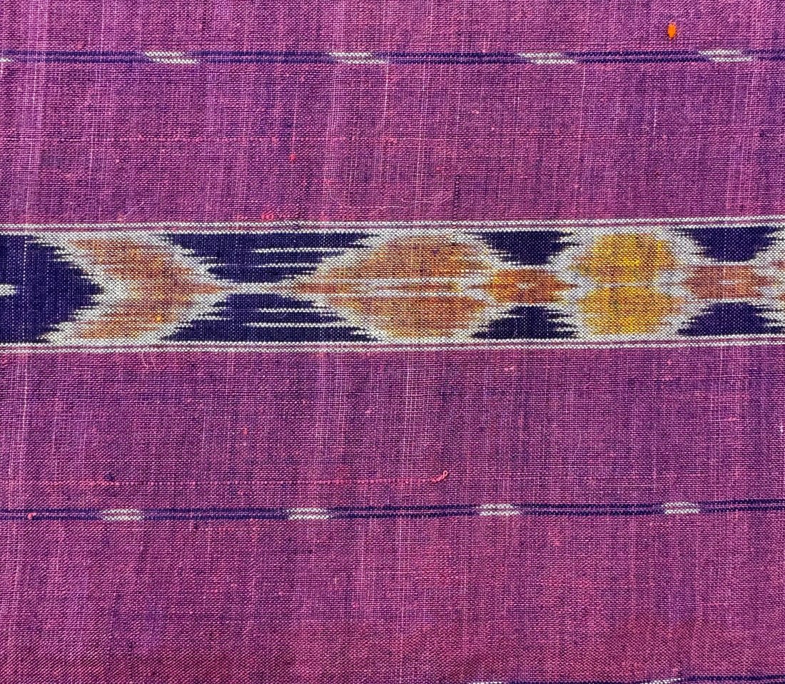 Possibly Indonesian hand-woven cotton ikat textile. D: 186L x 52W in.