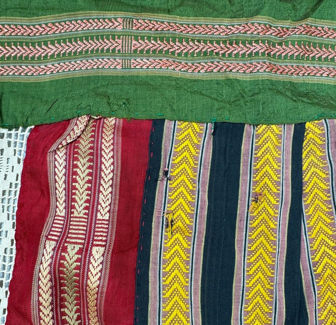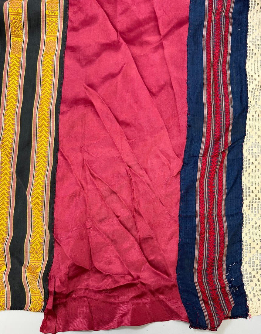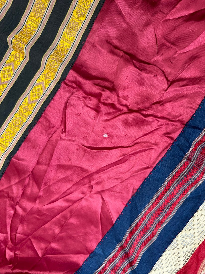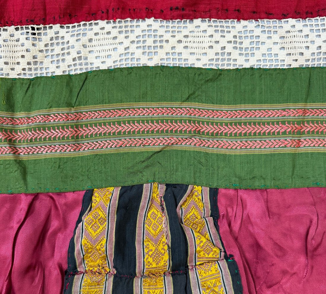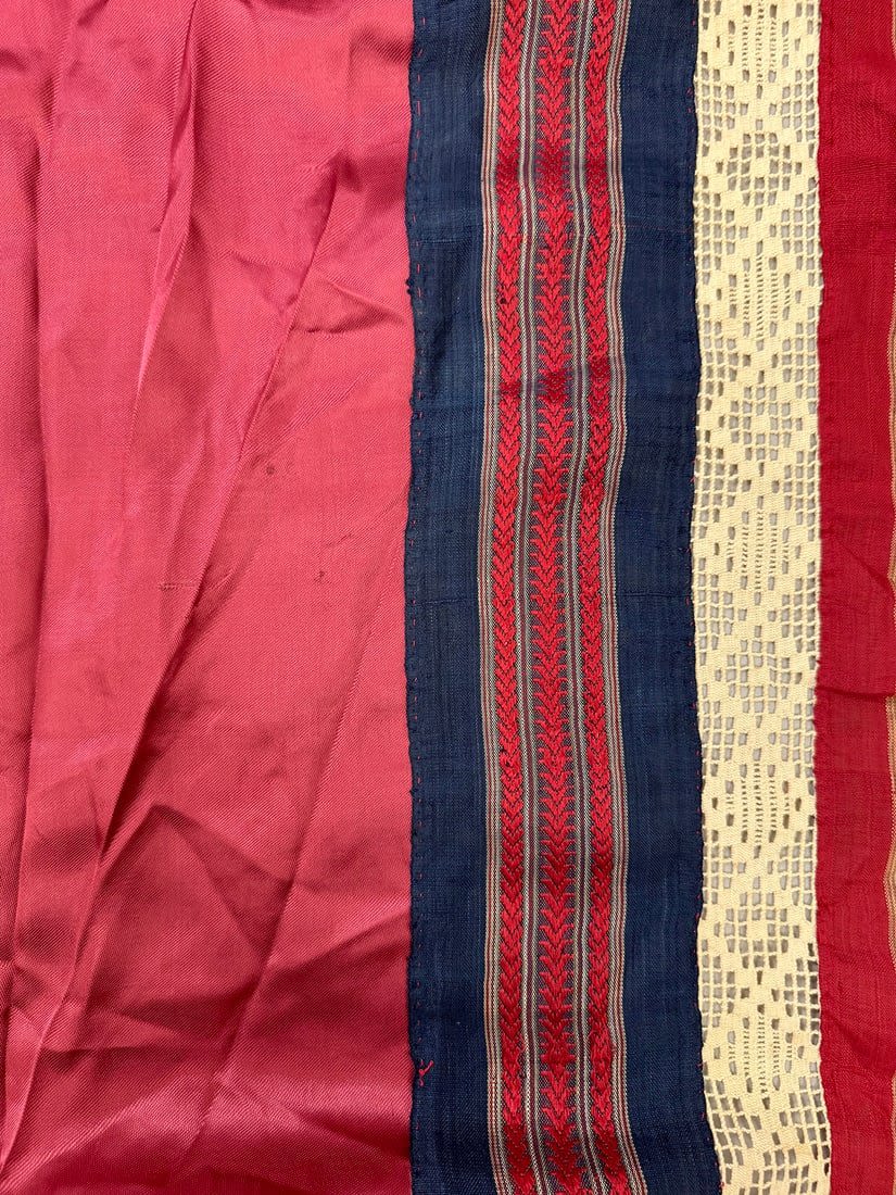 Asian silk textile decorated with lace. D: 90L x 35W in.
