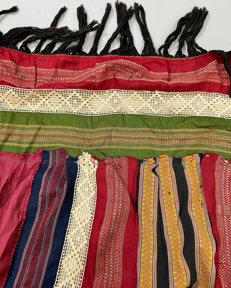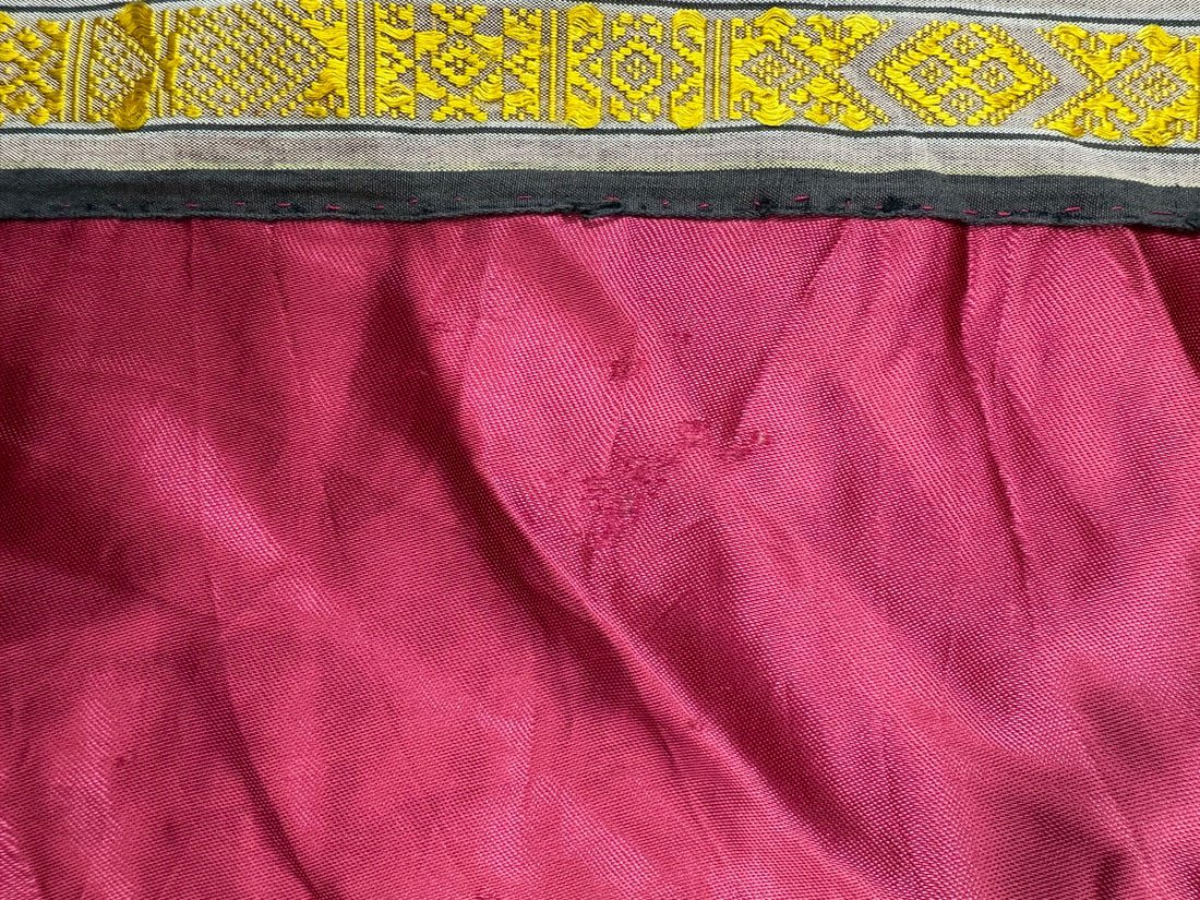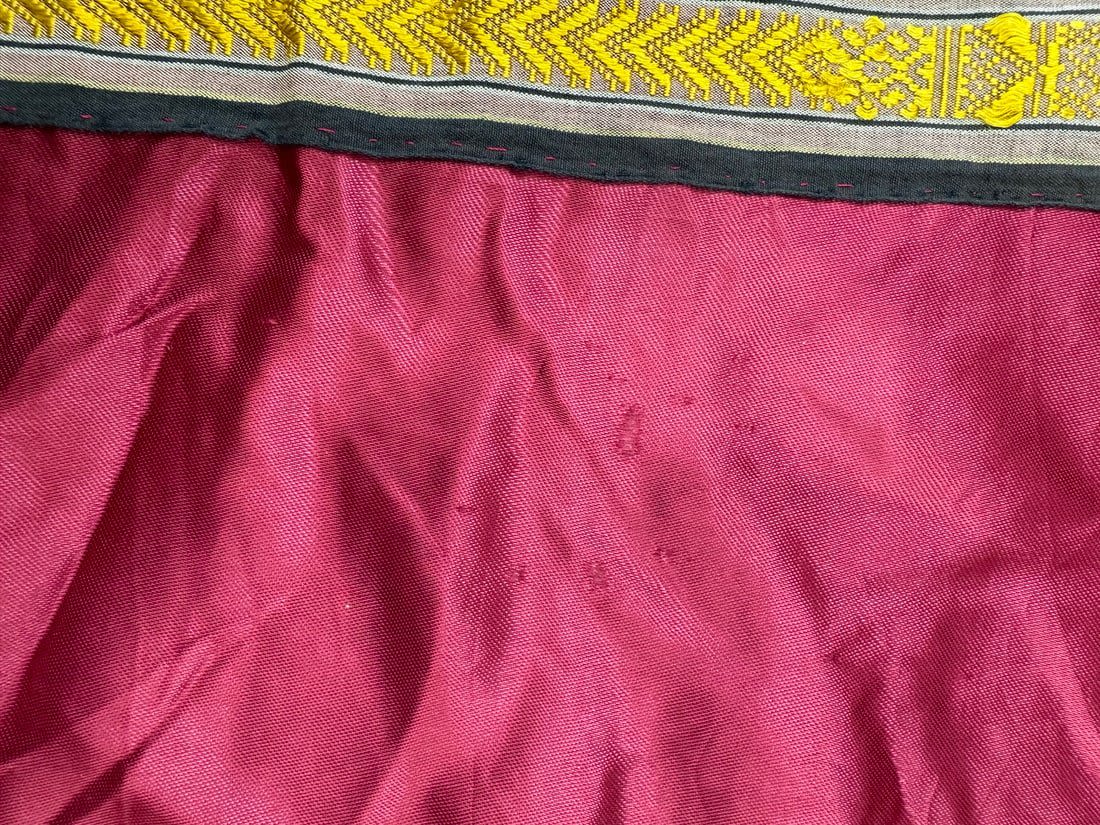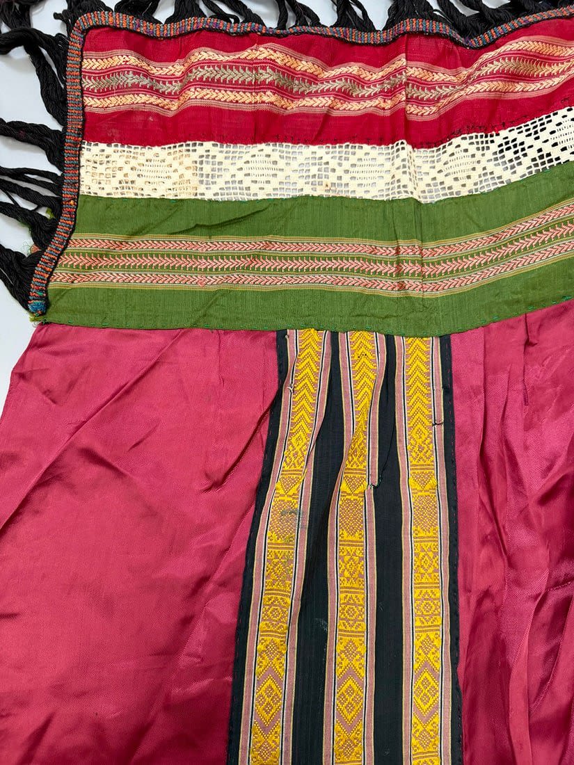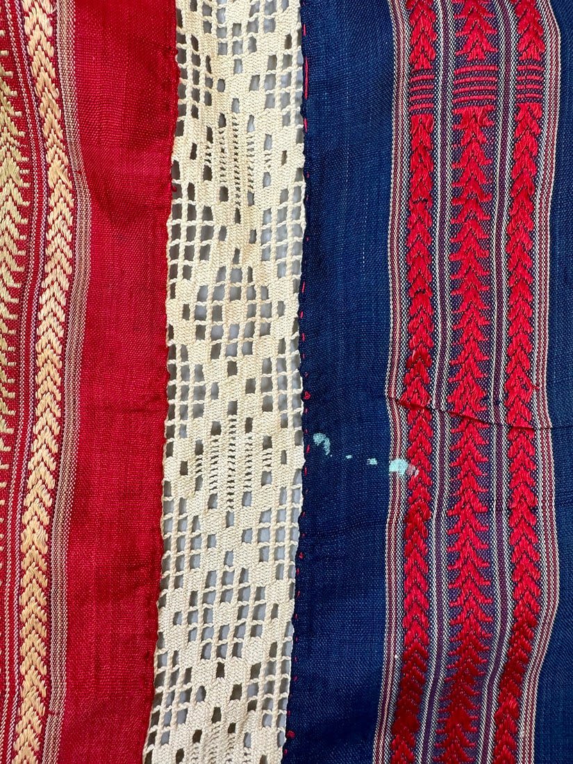 Asian silk textile decorated with lace. D: 90L x 35W in.
