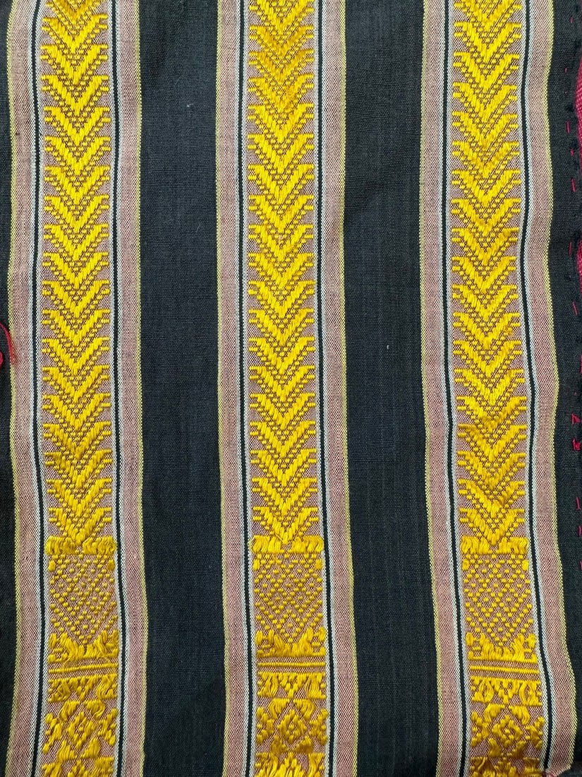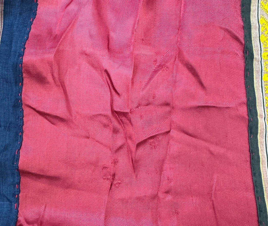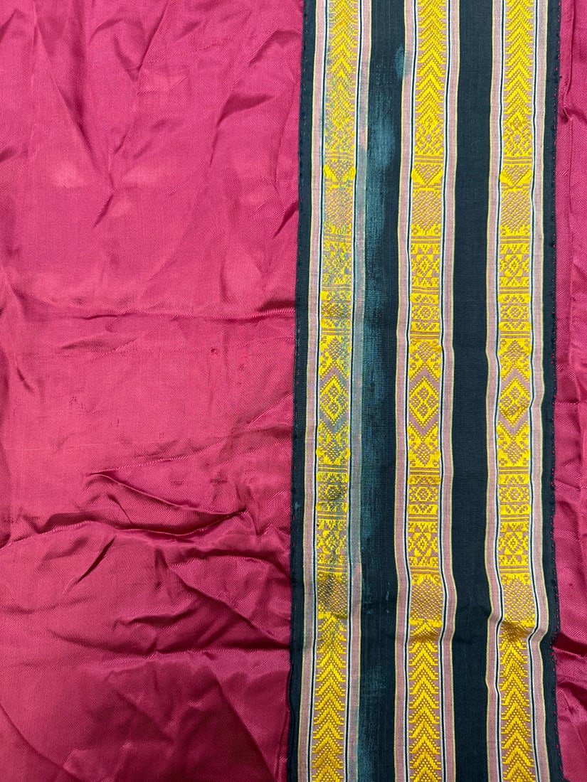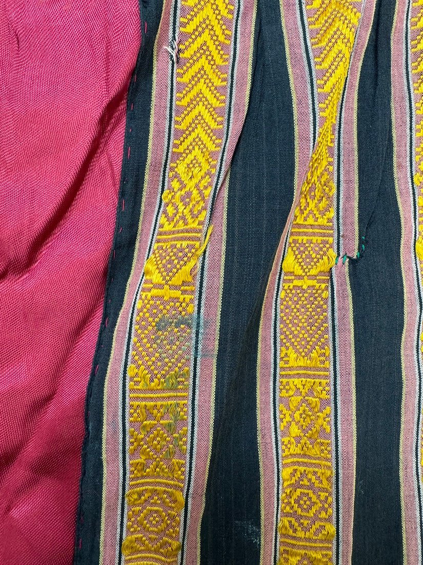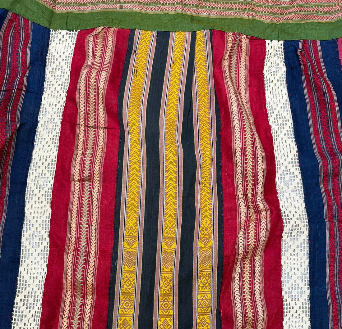 Asian silk textile decorated with lace. D: 90L x 35W in.