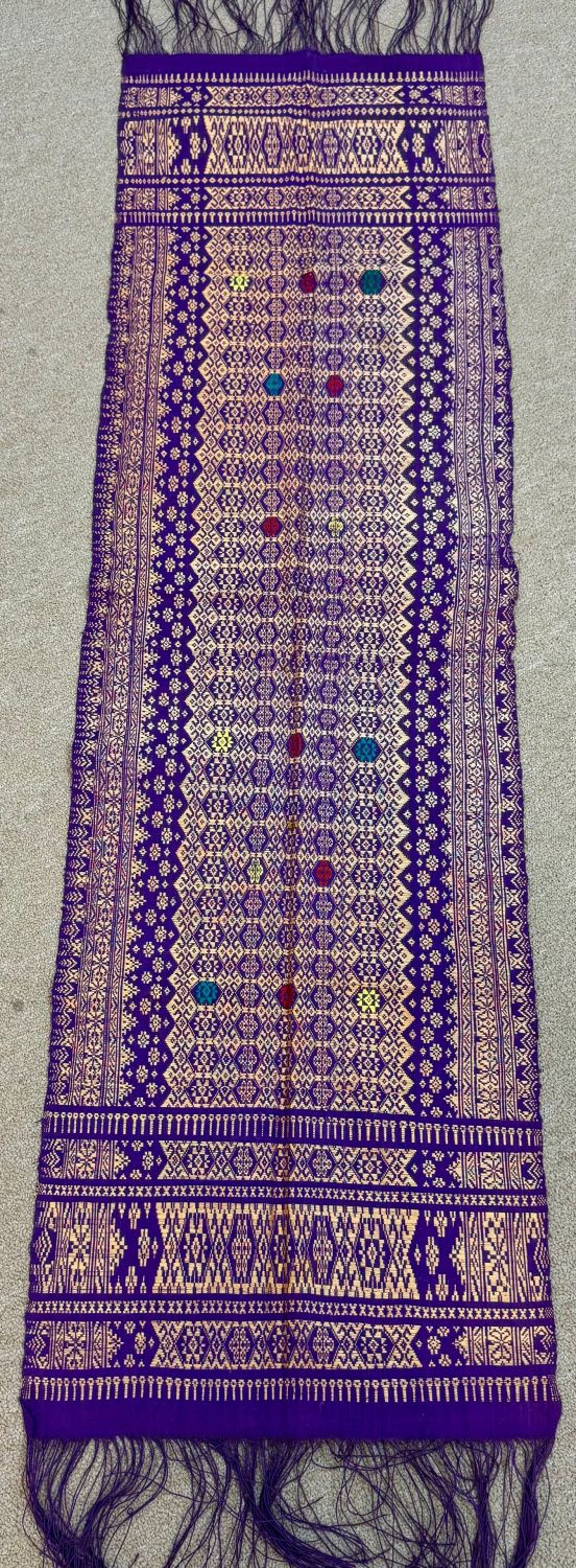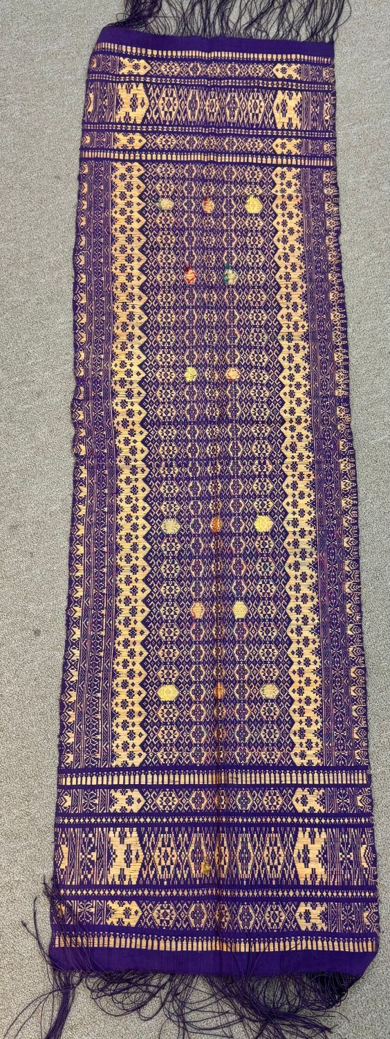 Indonesian woven cotton ikat sarong. D: 69L x 16 W in.