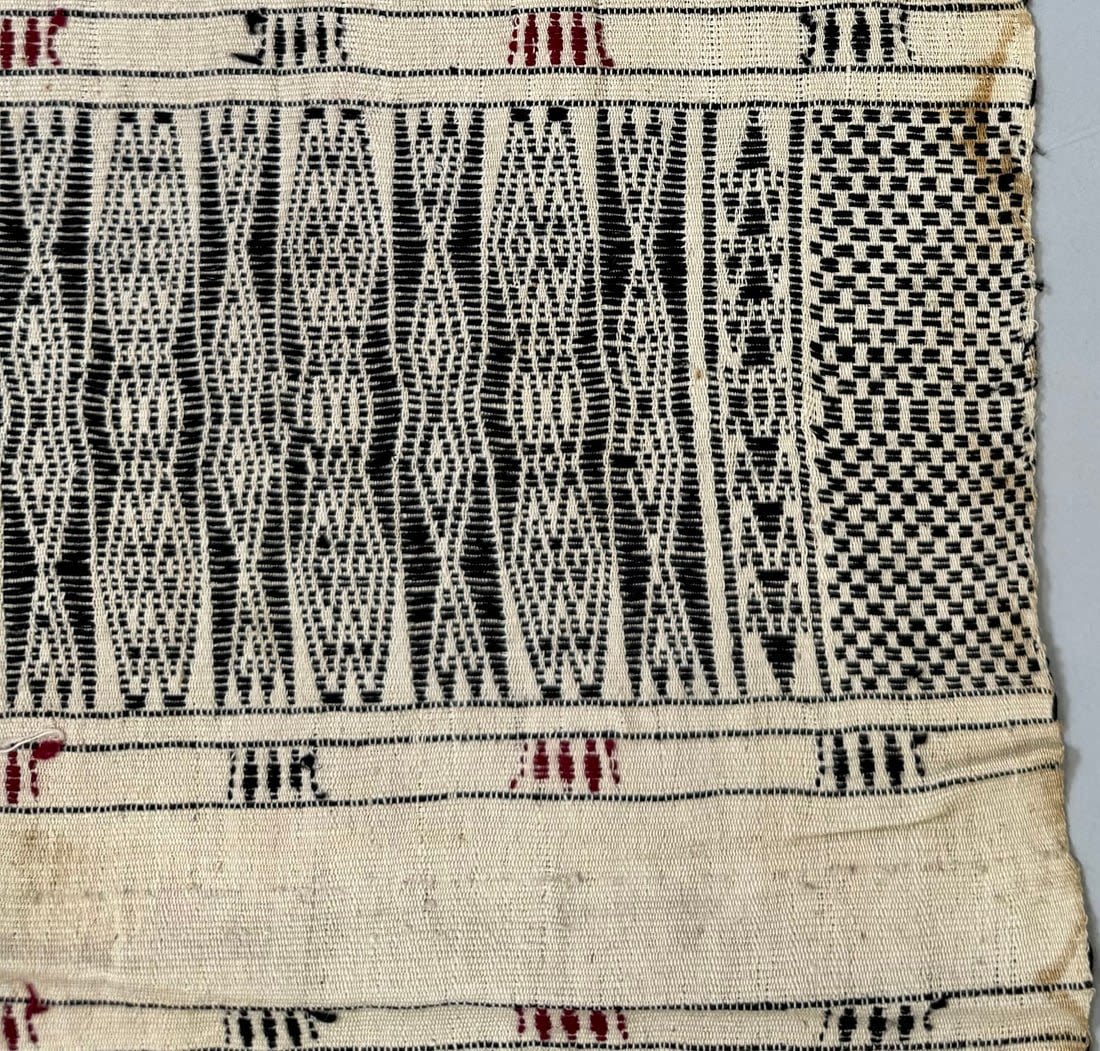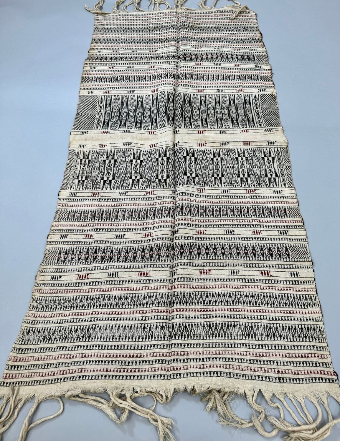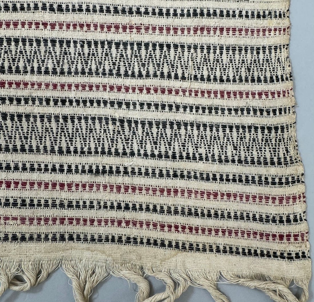Bhutan woven cotton textile. D: 50L x 20W in.