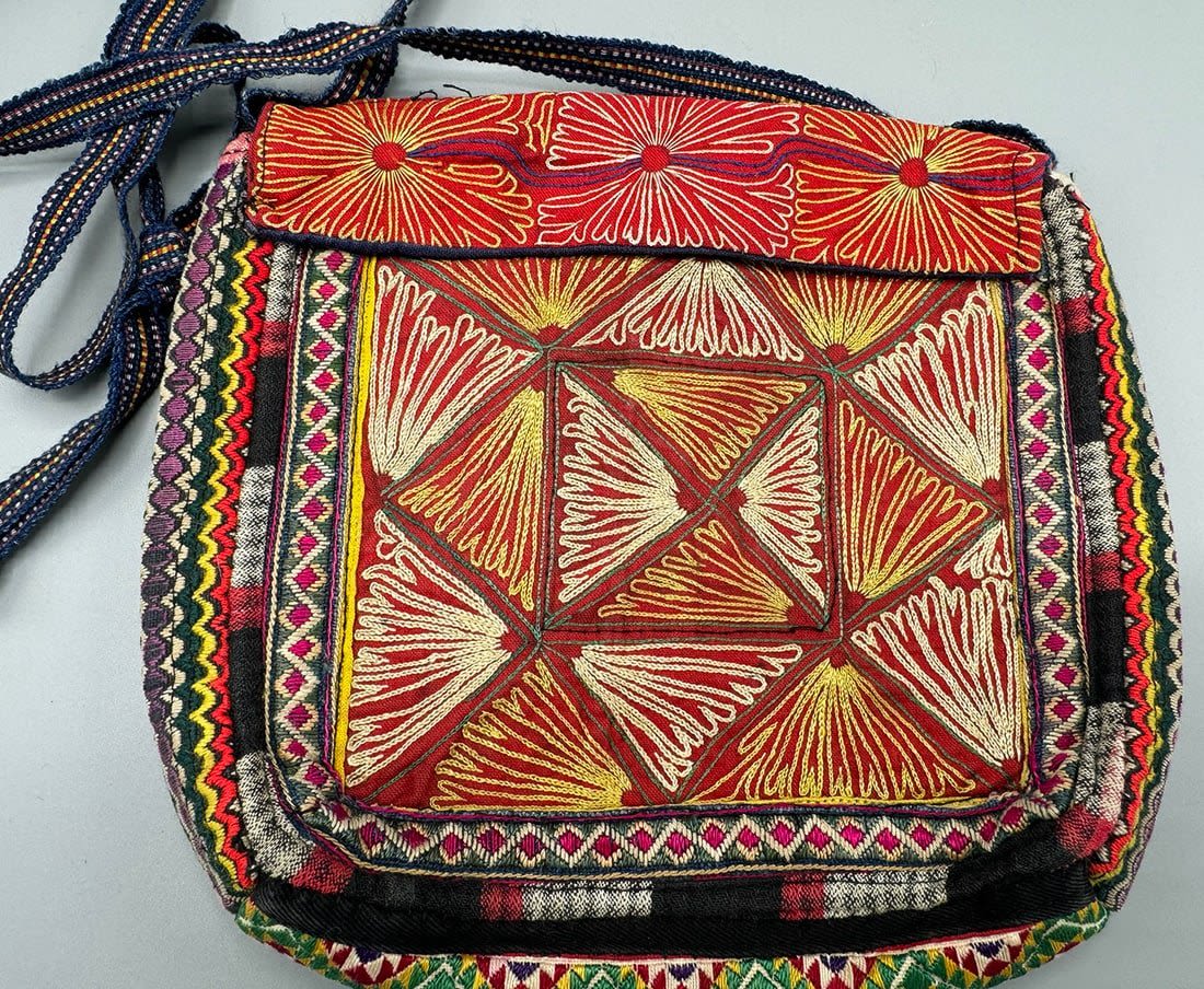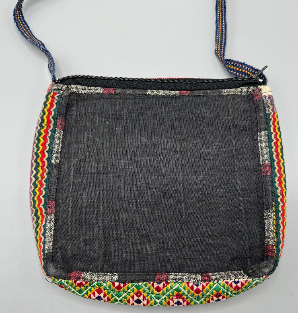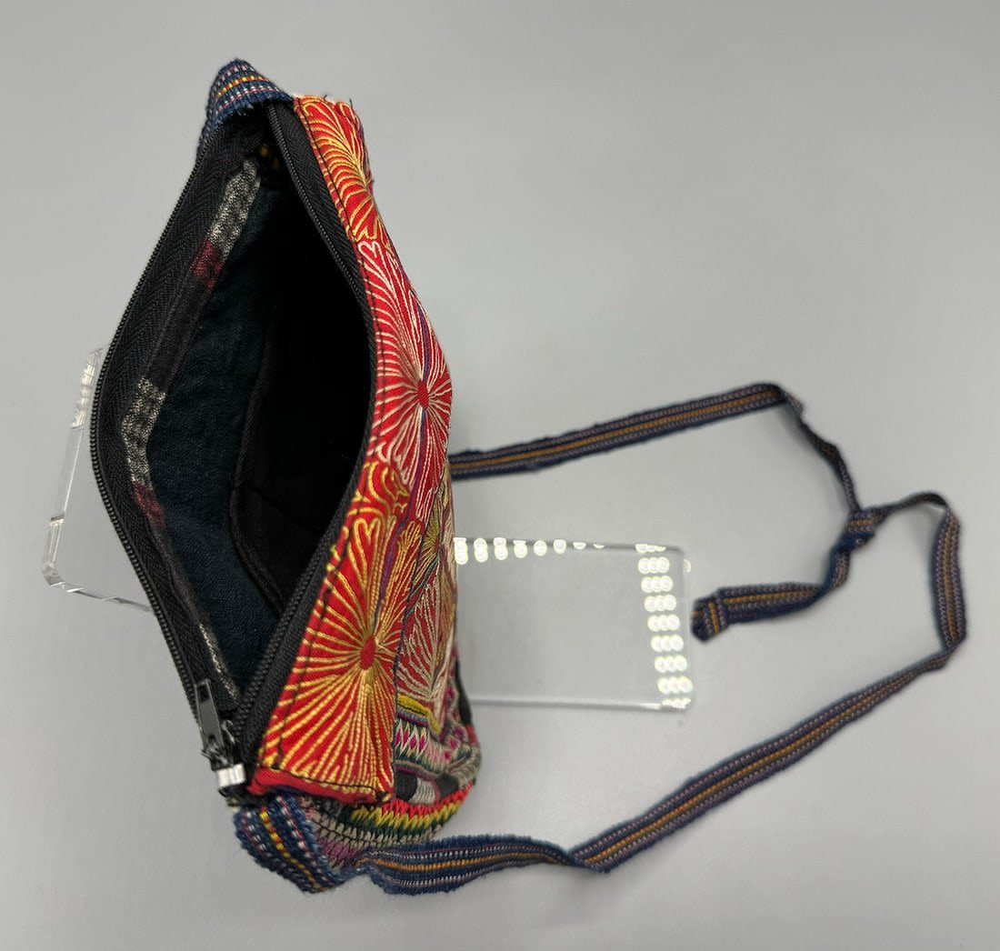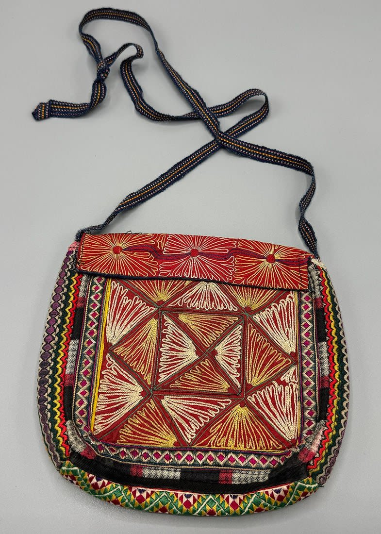 Vintage embroidered crossbody bag. Length with strap: 29 in. Bag dimensions: 8.5H x 7.5L x 2W in.