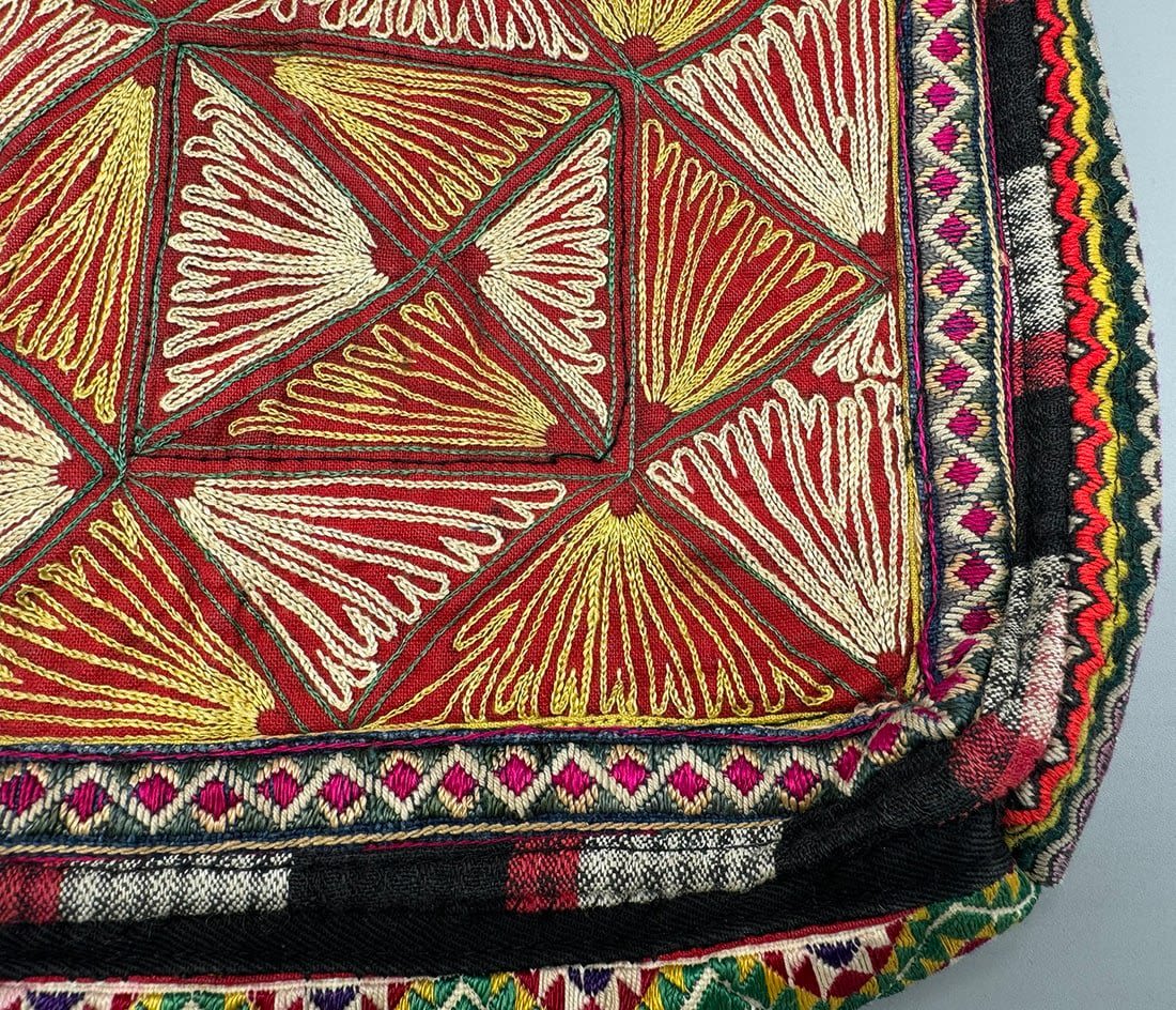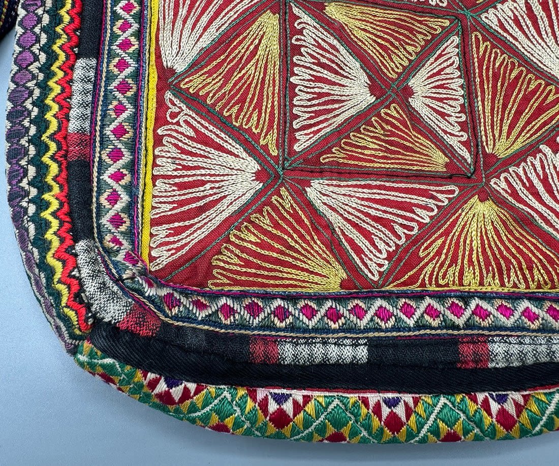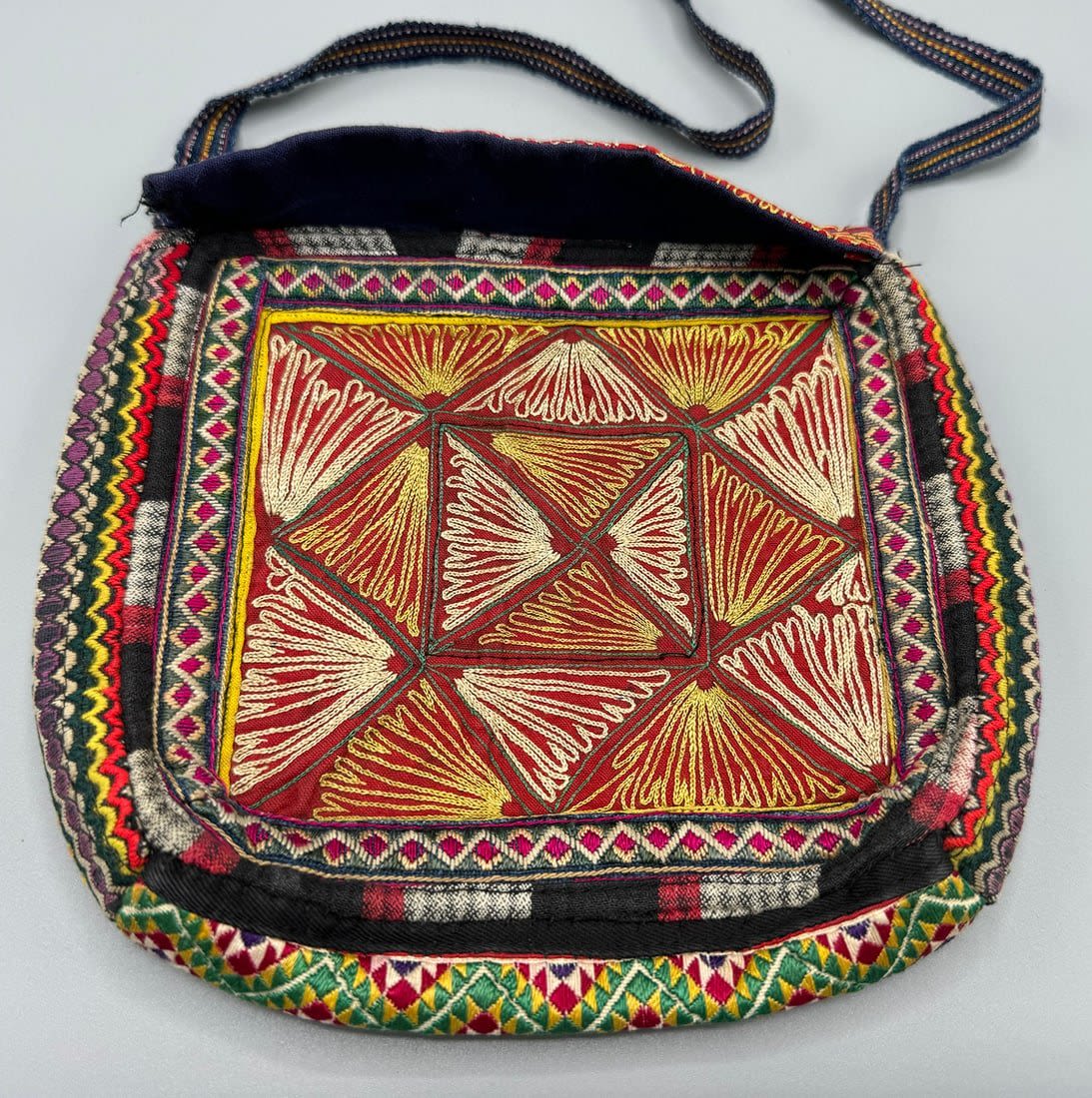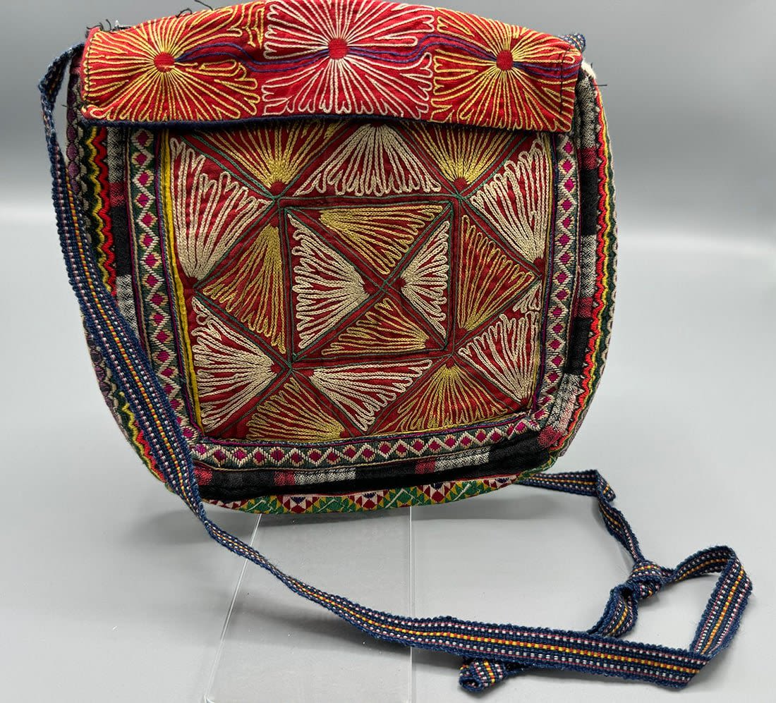 Vintage embroidered crossbody bag. Length with strap: 29 in. Bag dimensions: 8.5H x 7.5L x 2W in.