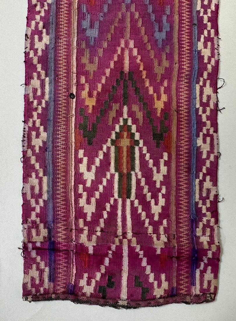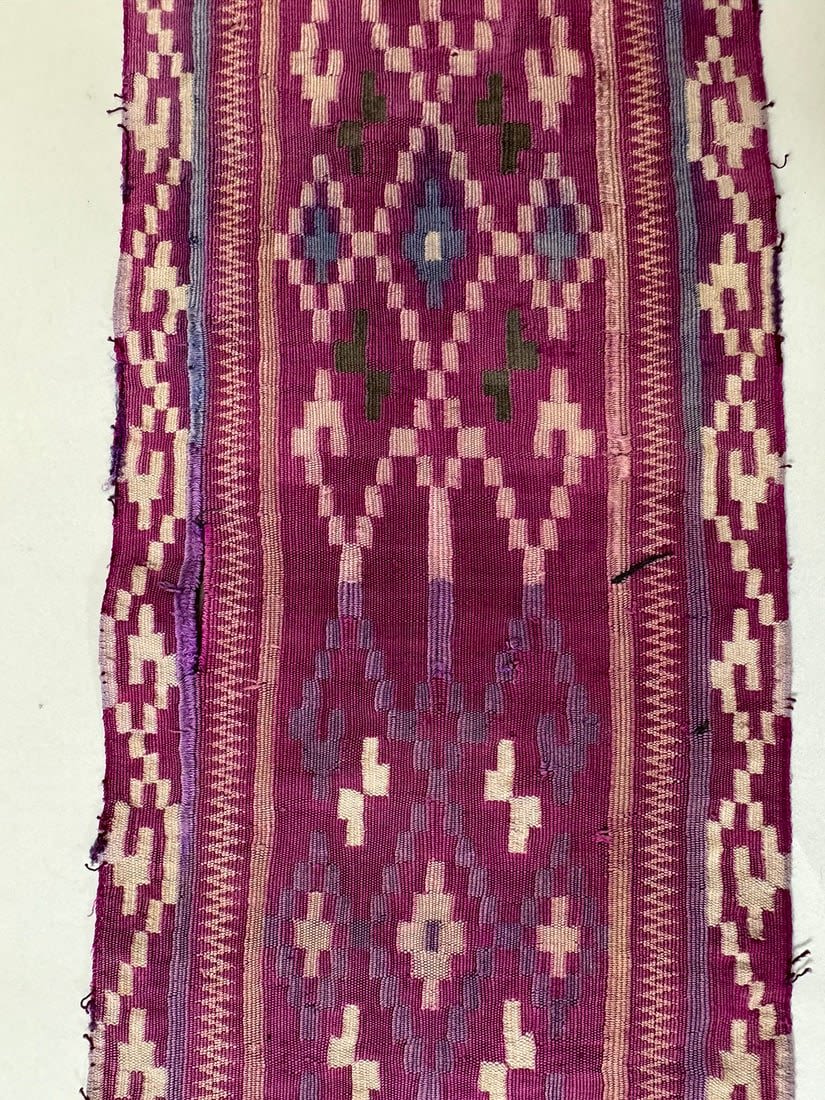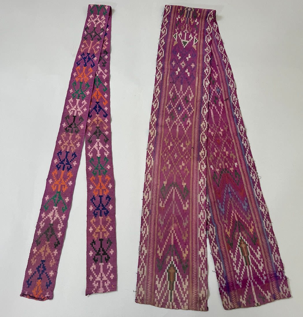Asian purple textile belts. Large belt dimensions: 60L x 5.5W in. Small belt dimensions: 29L x 2.9W in.