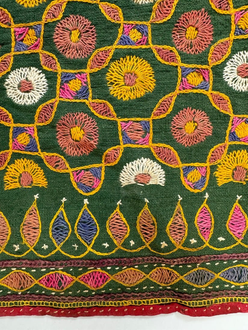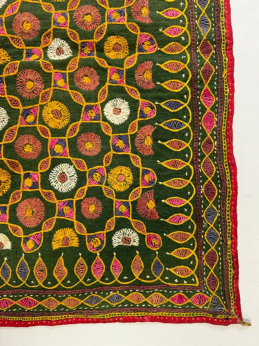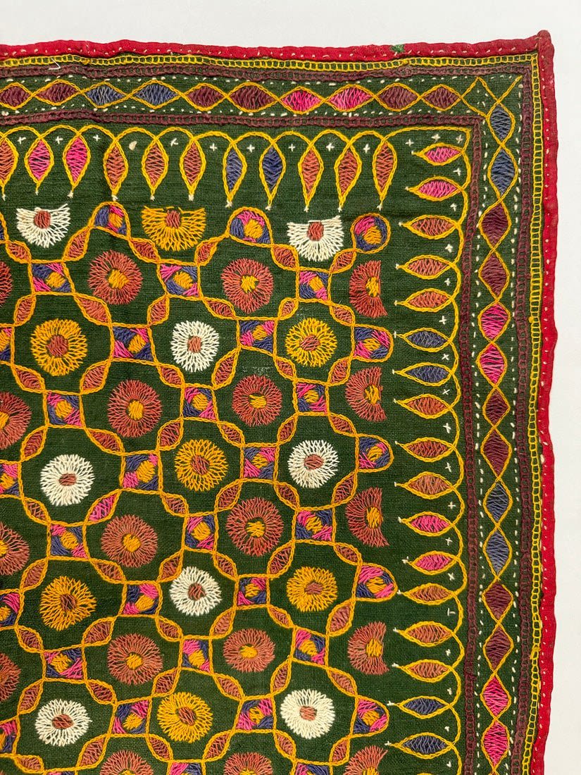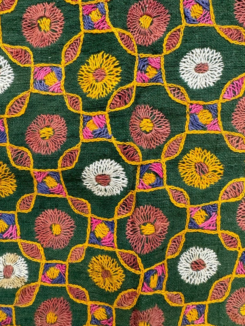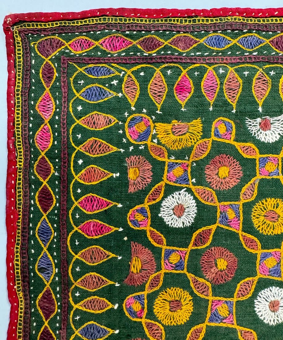 Possibly Indian hand-embriodered cotton wall hanging. D: 22.5L x 22.5 W in.