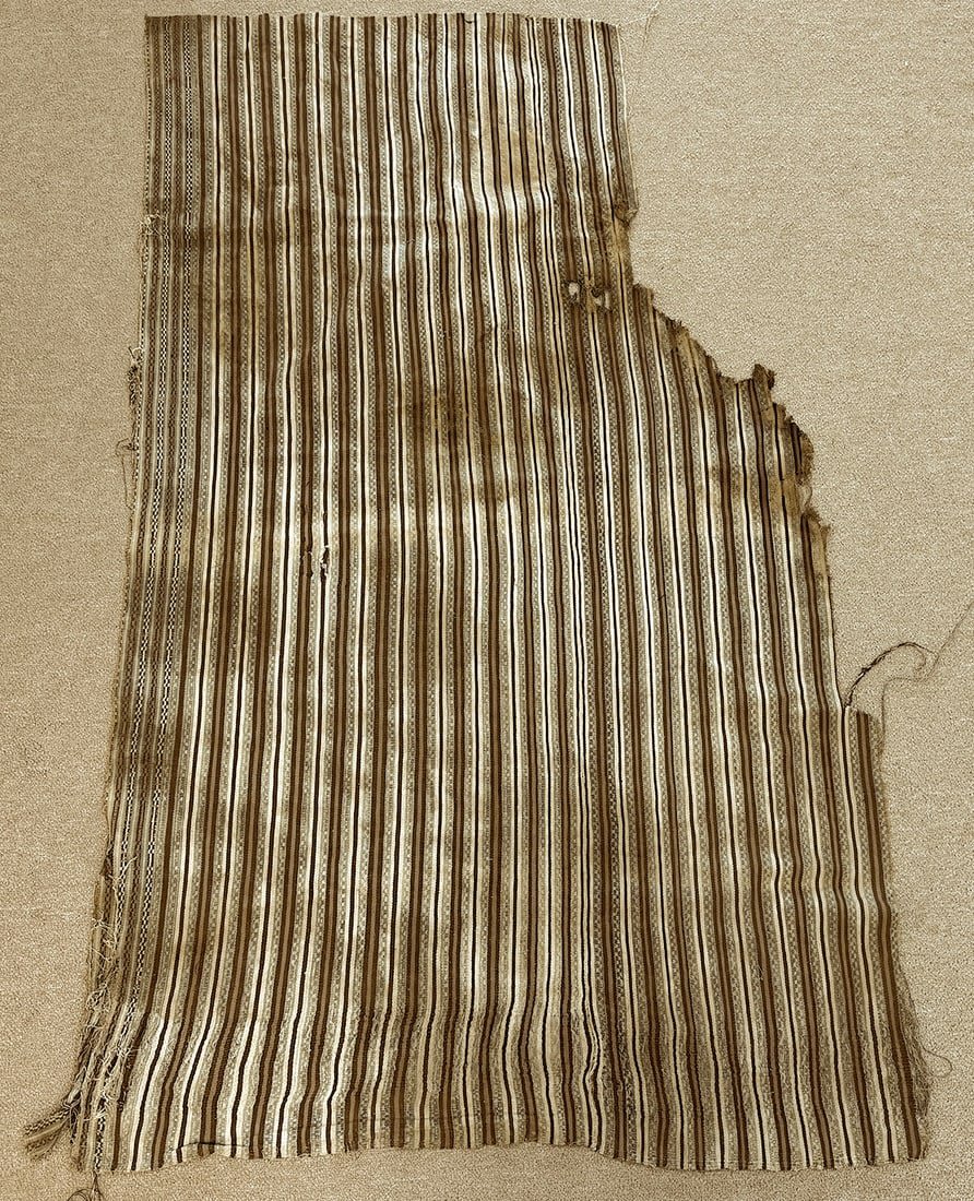 Asian textile fragment. D:60L (long side) x 36W (long side) in.