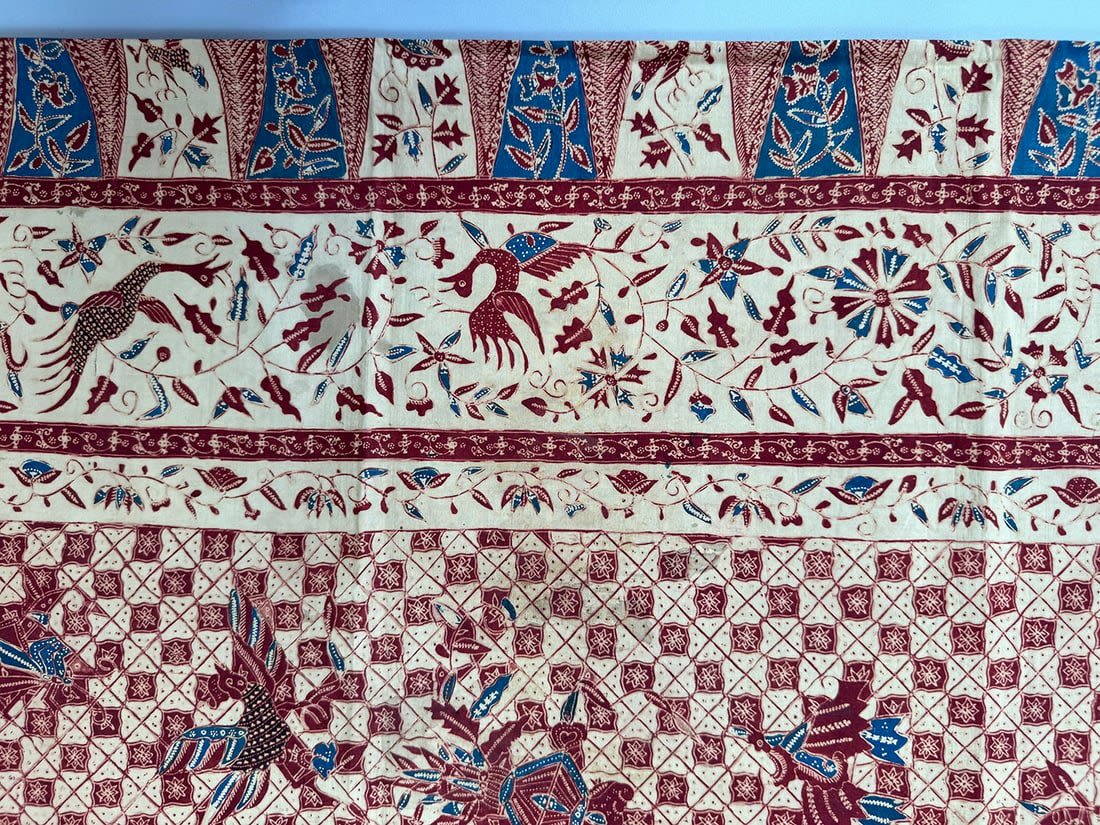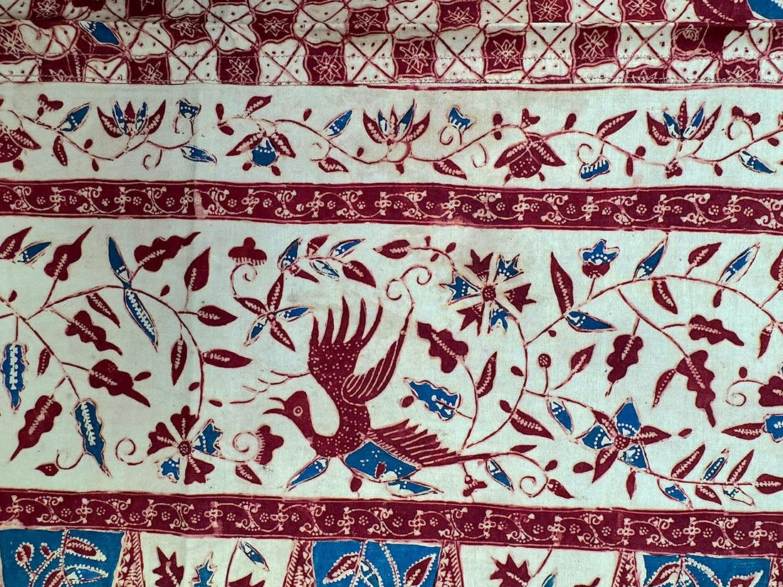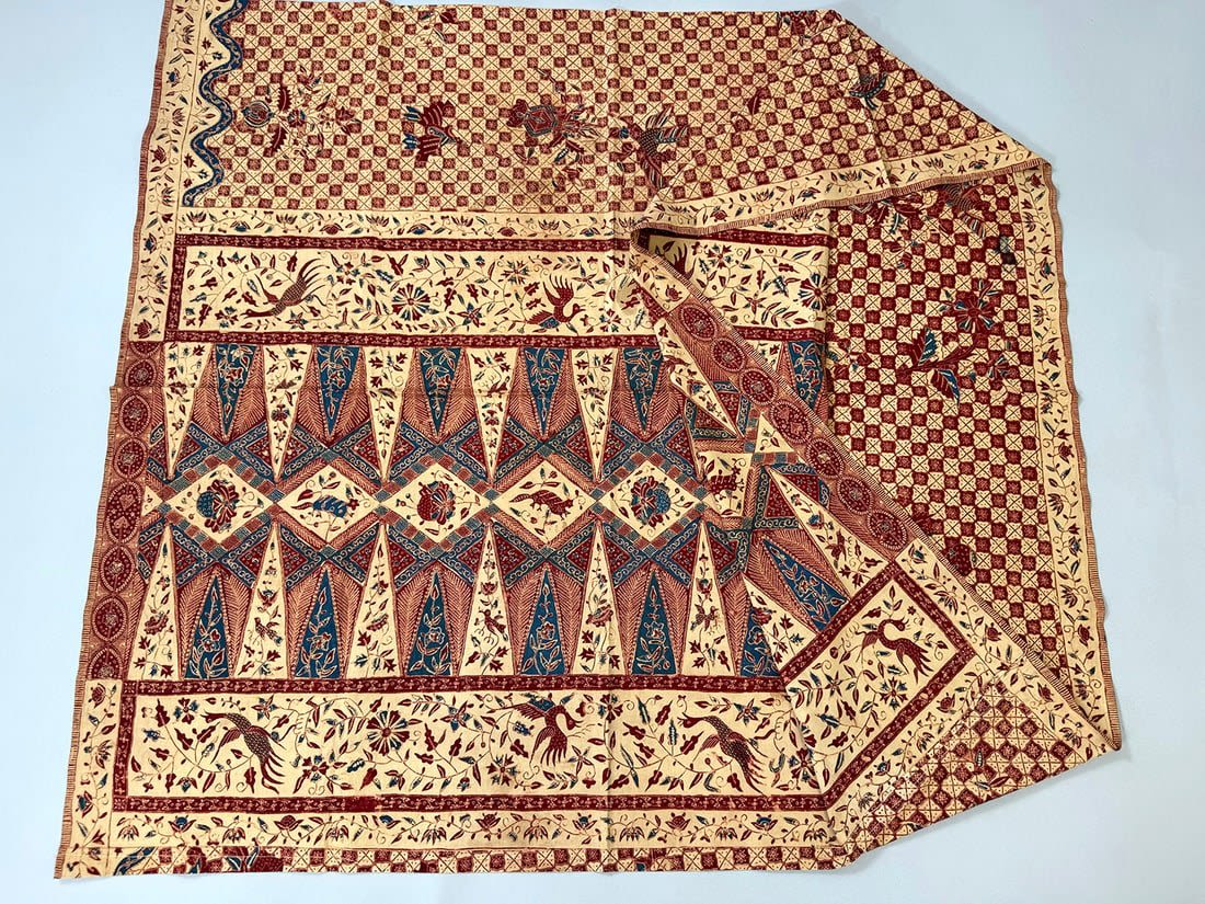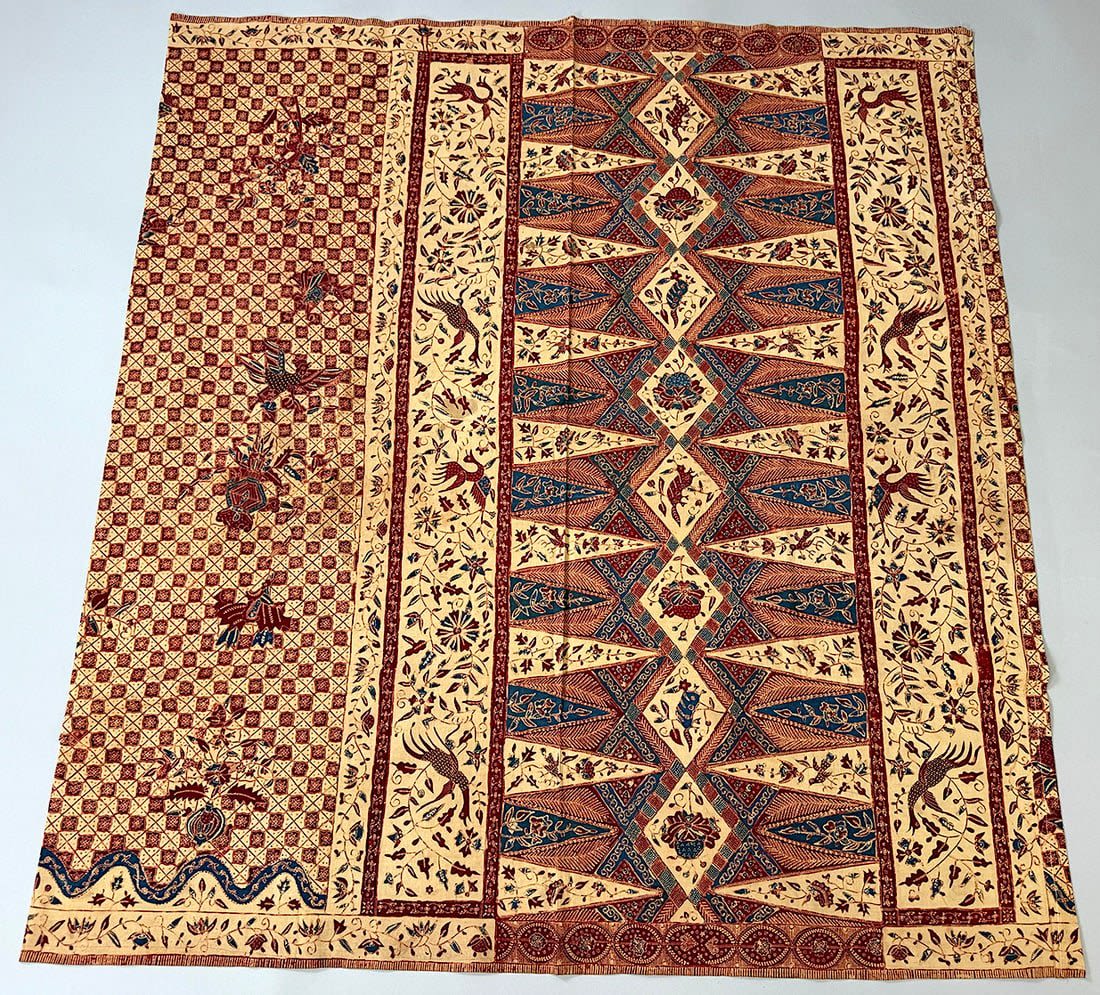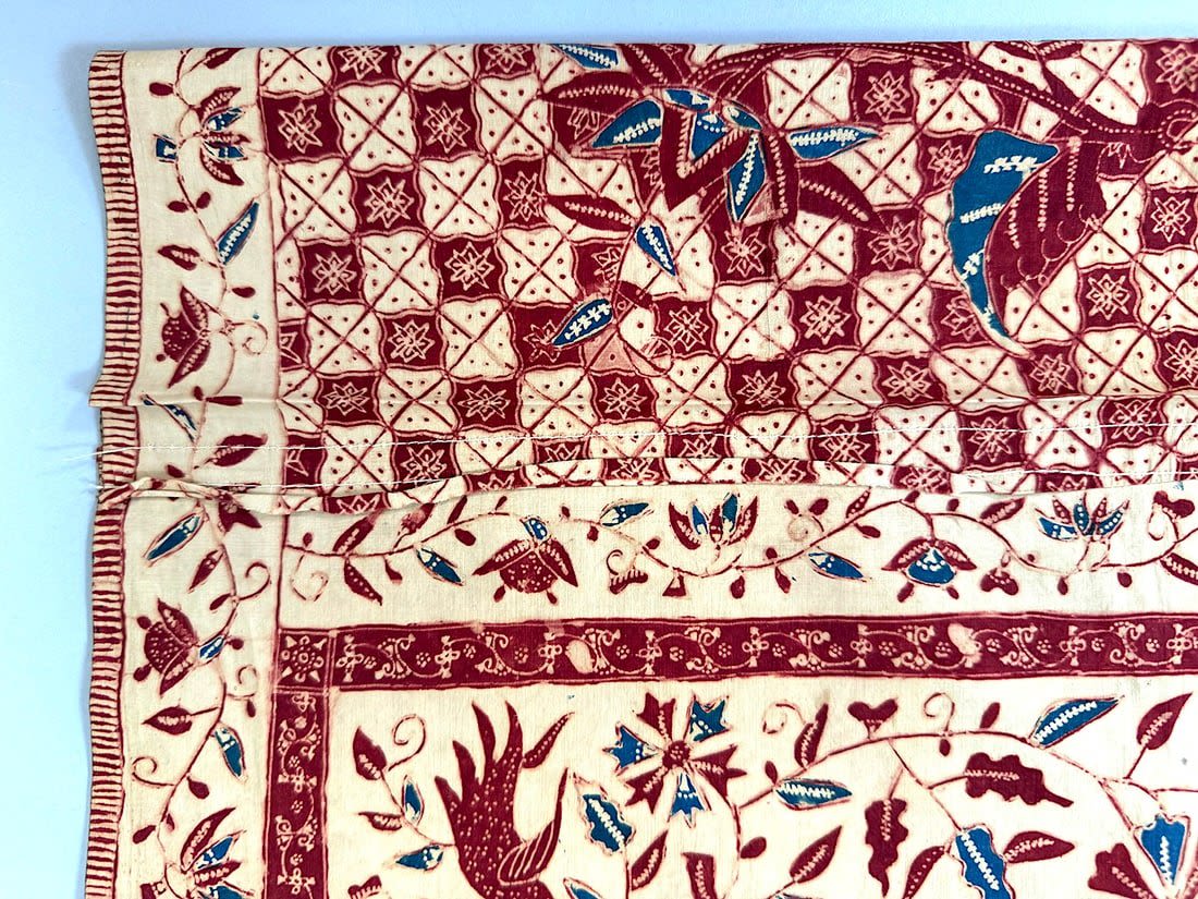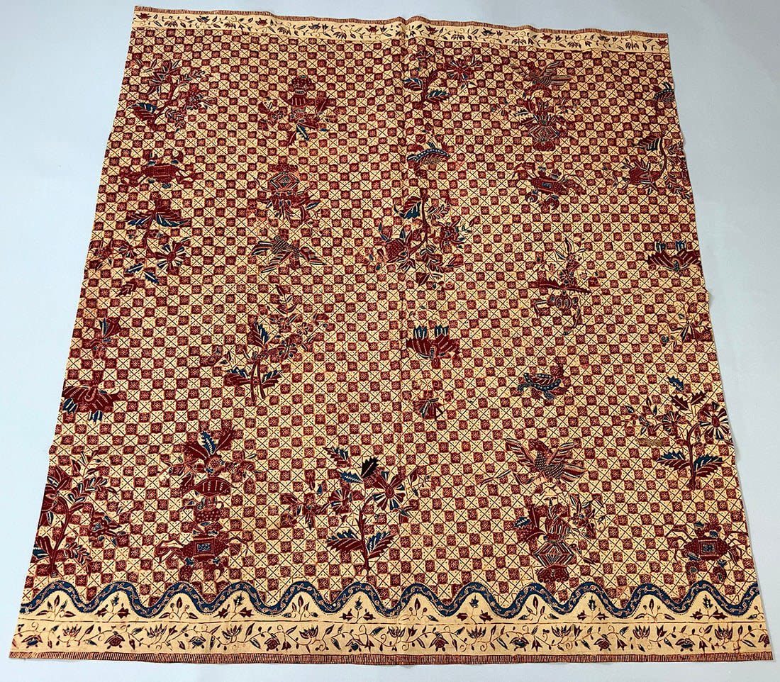 Indonesian batik cotton tubular cloth. D: 41.5L x 37.5W in.