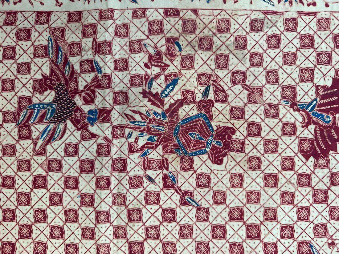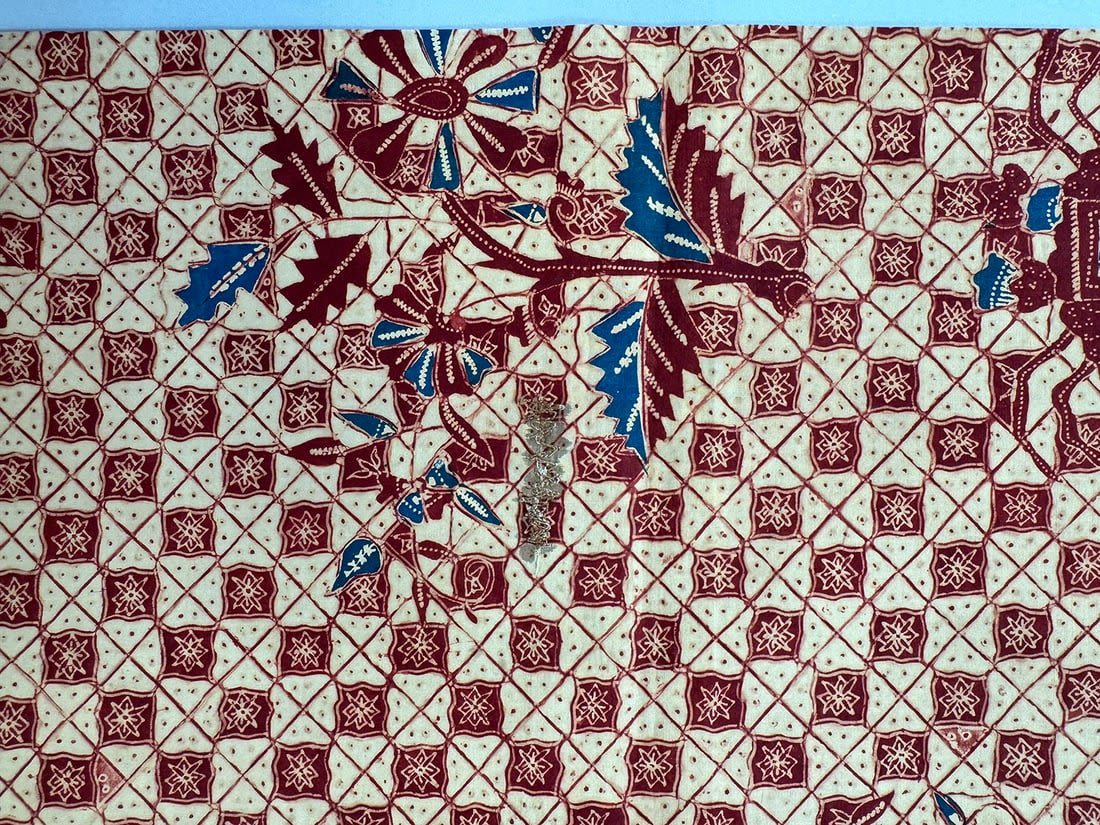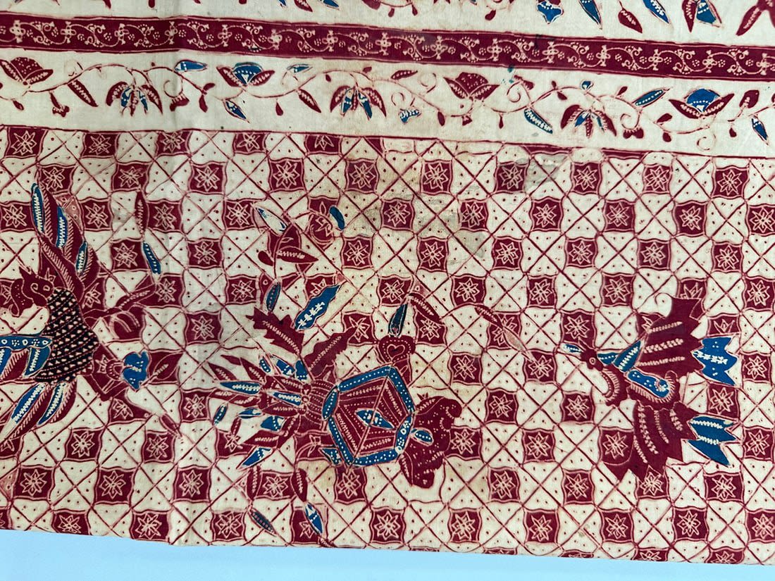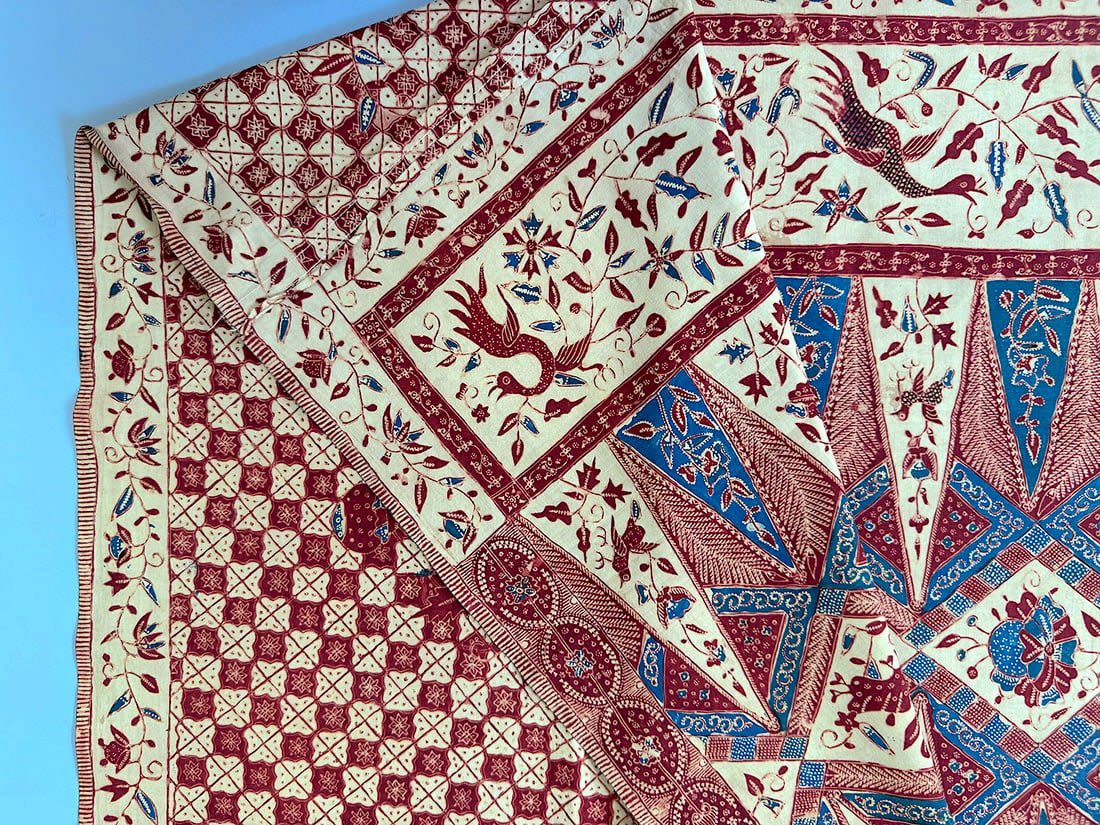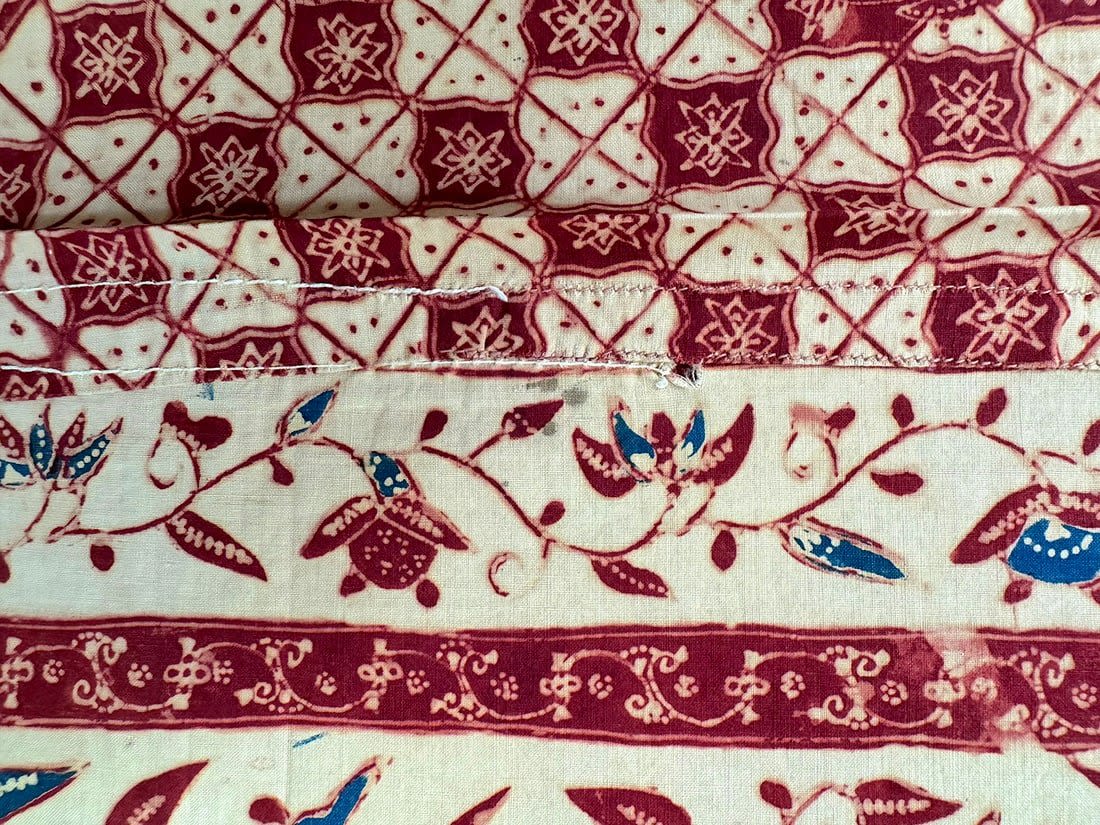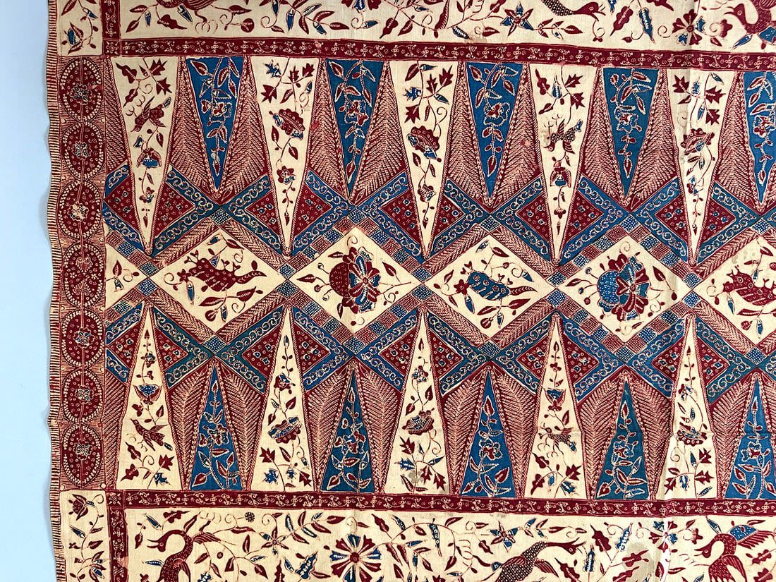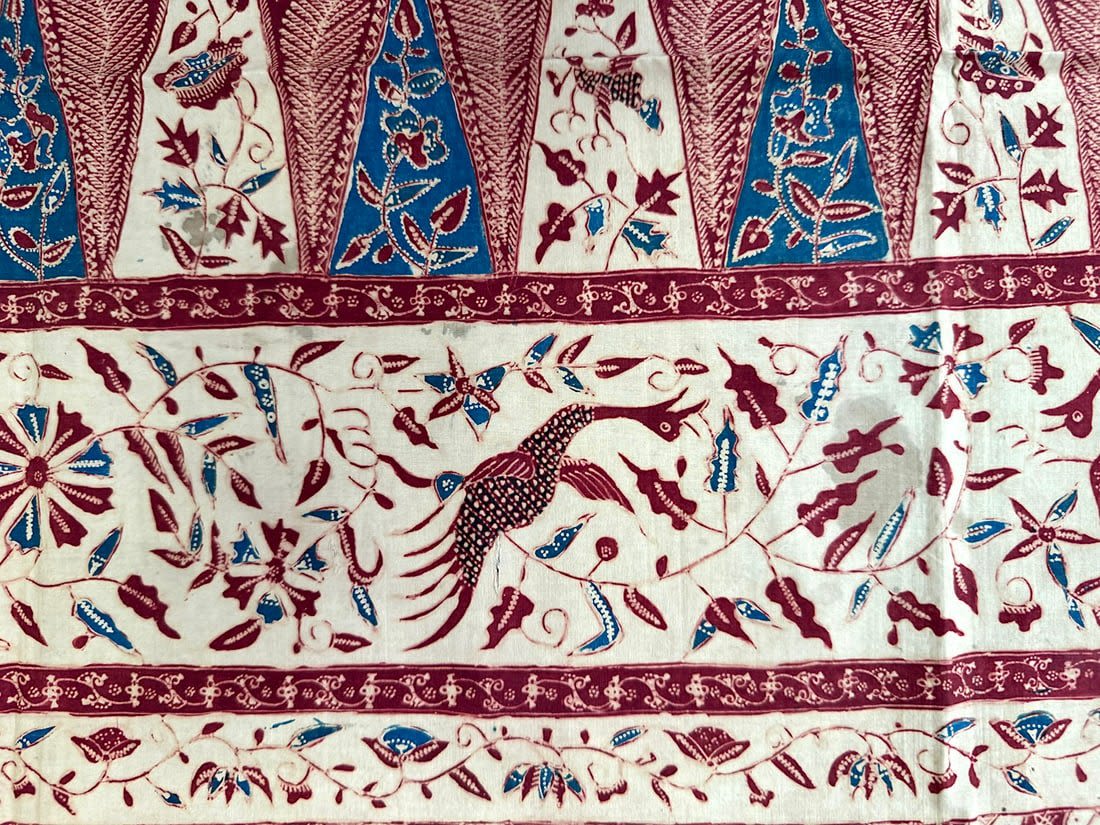Indonesian batik cotton tubular cloth. D: 41.5L x 37.5W in.