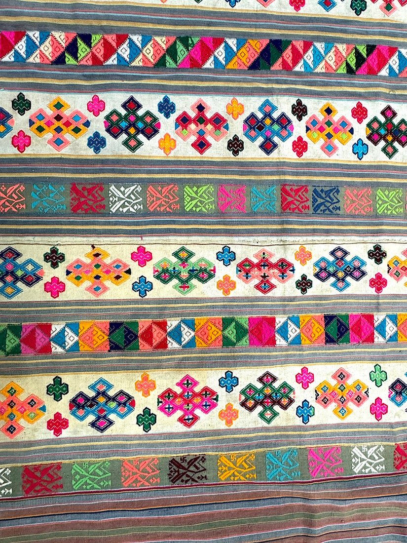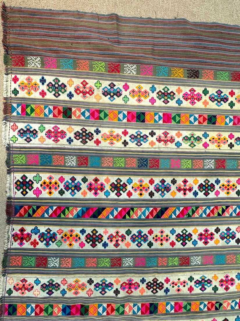 Bhutan cotton textile. D: 87L x 54W in.