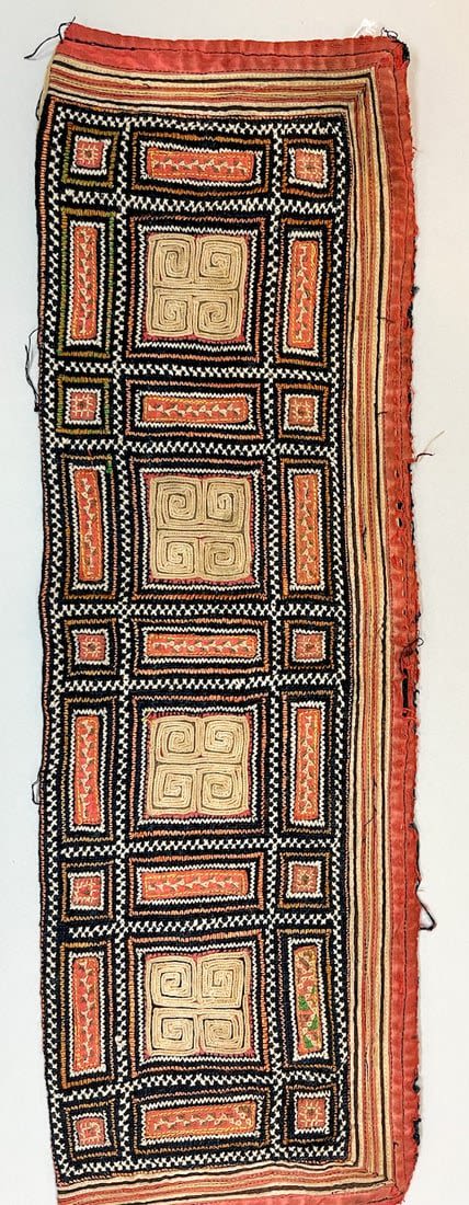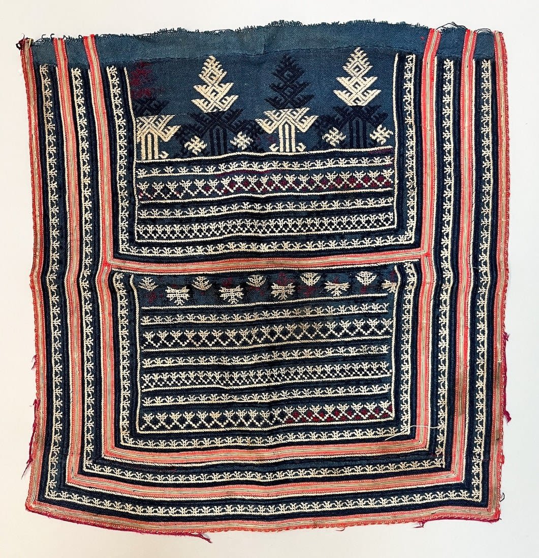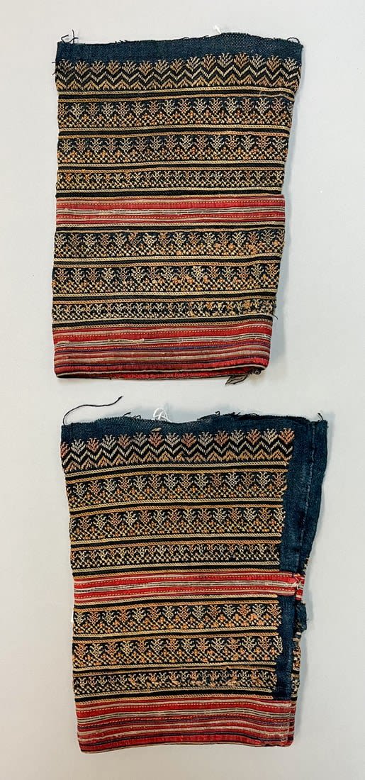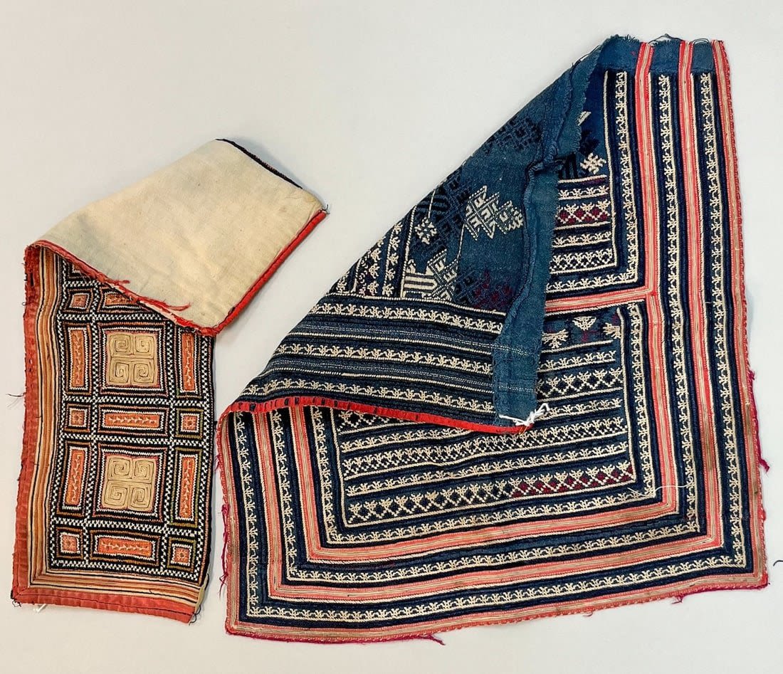Yao/Dai/ Miao, Vietnam , group of (3) vintage cotton embroidery accessories, one jacket flap, 15"l x 14"w, one collar 17"l x 5"w , two short sleeves 7.5"l x 6"w