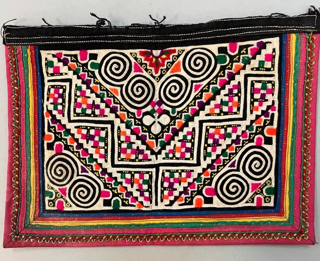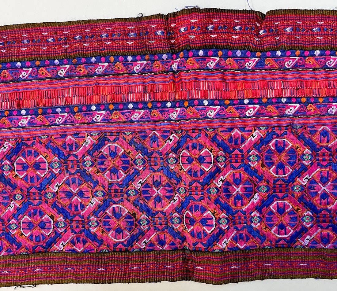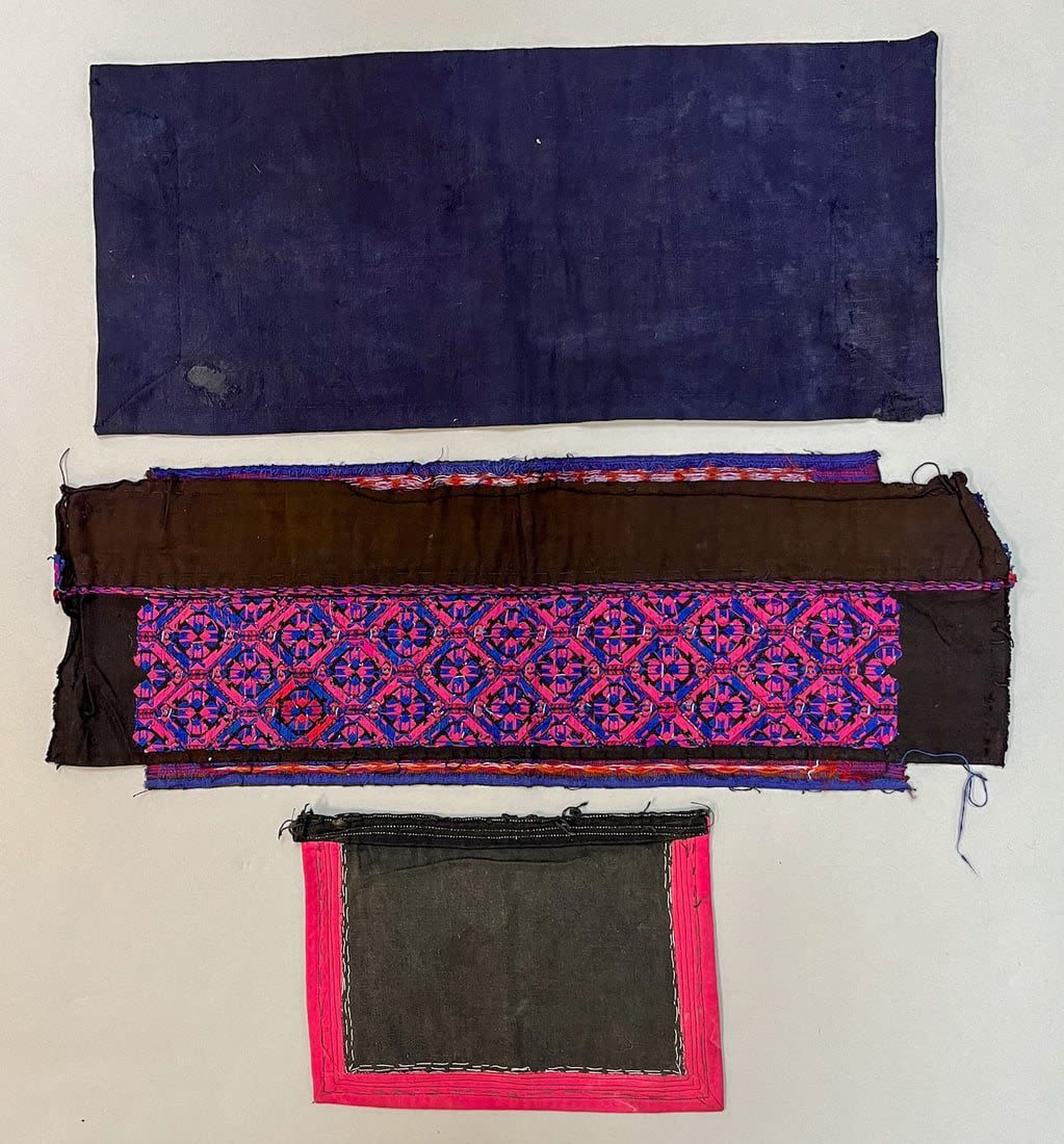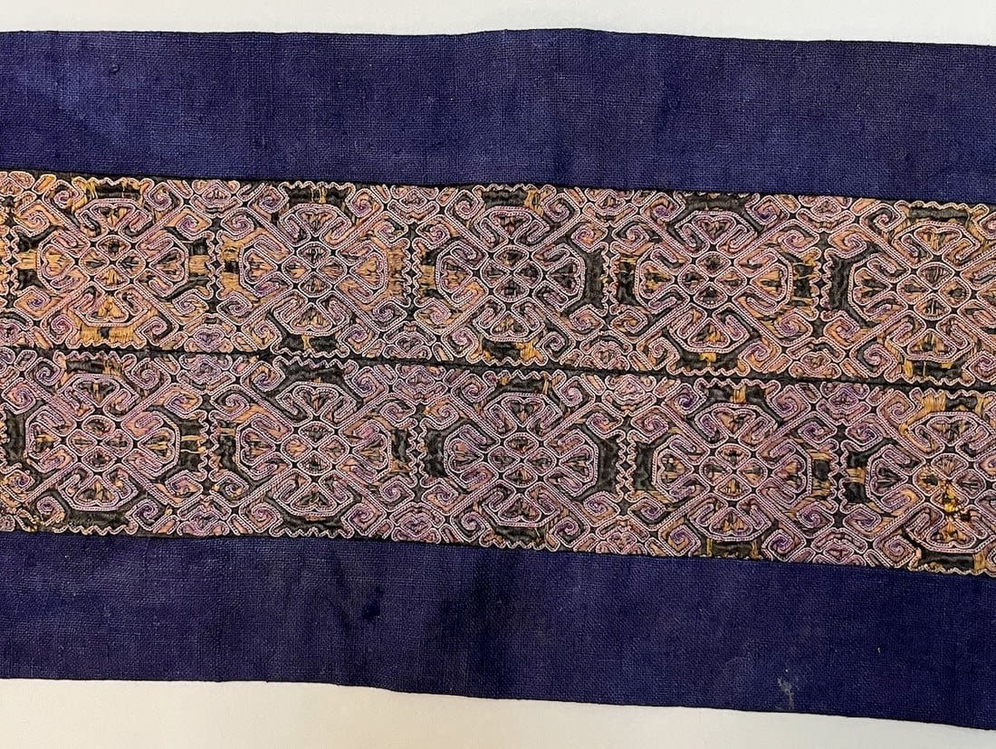 Miao, Yunnan Province, China, group of (3) vintage cotton and silk embroidery accessories, 18"l x 7"w, 16"l x 7"w , 8"l x 6"w