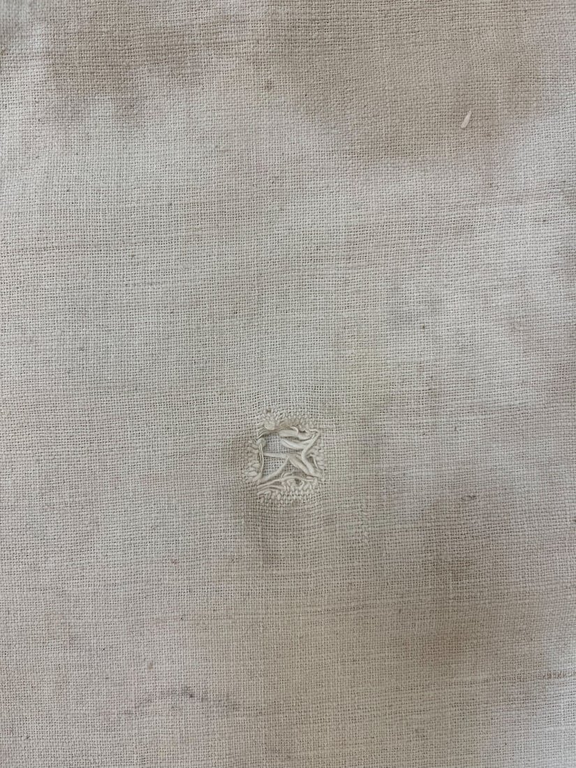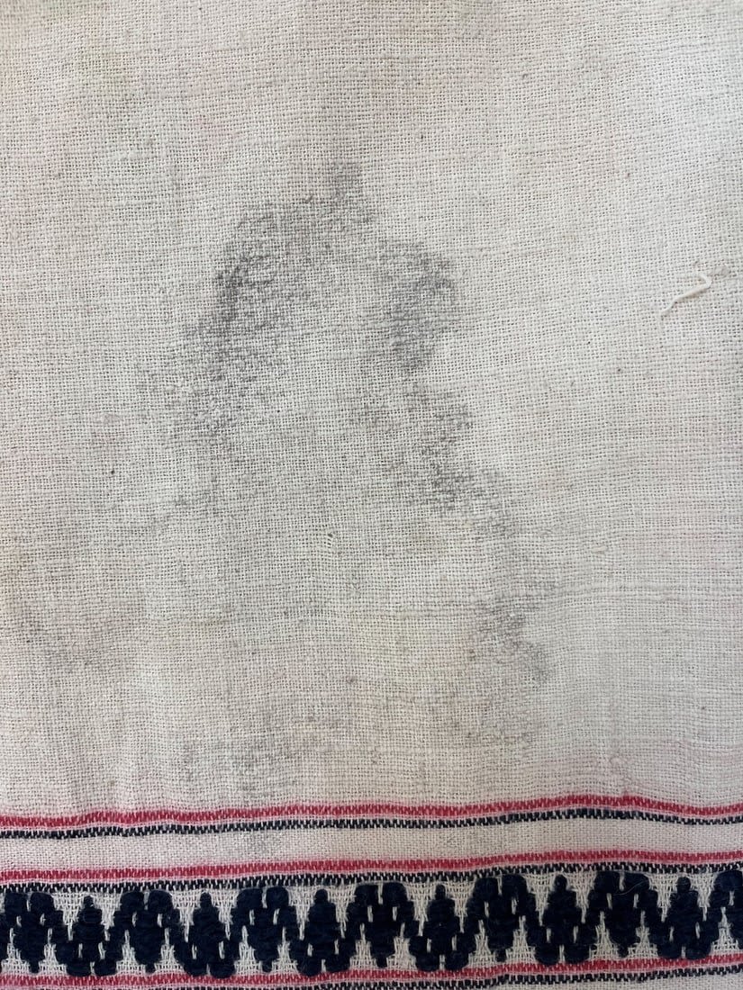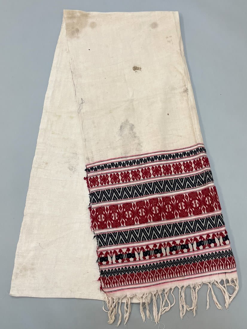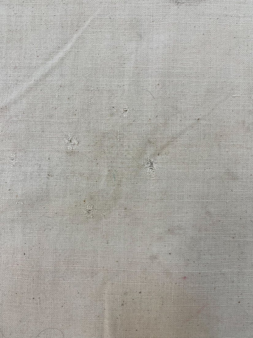 Guizhou, Southwest China, vintage woven cotton embroidery textile, undyed cotton, partial embroidery with bright colors and traditional pattern, consists of two panels sewn together, 91"l x 38"w