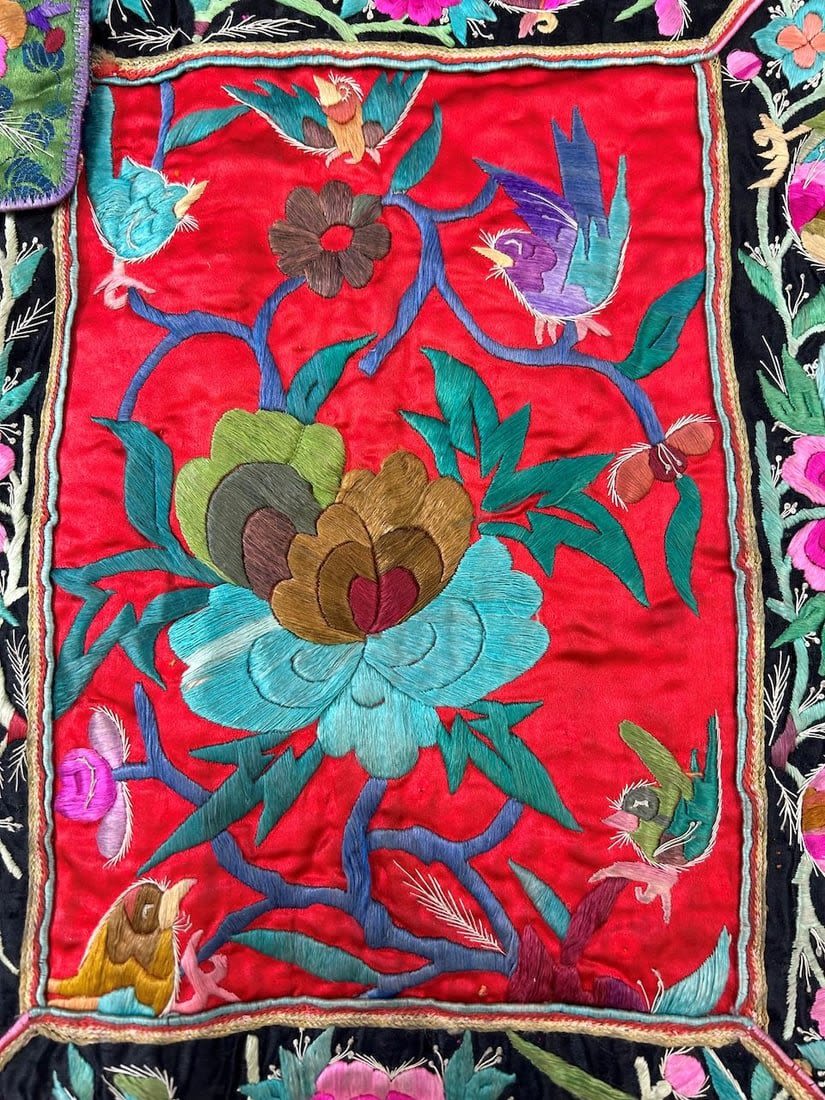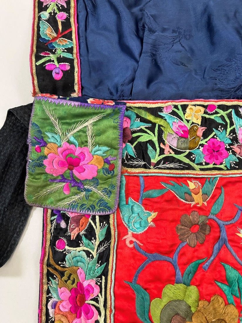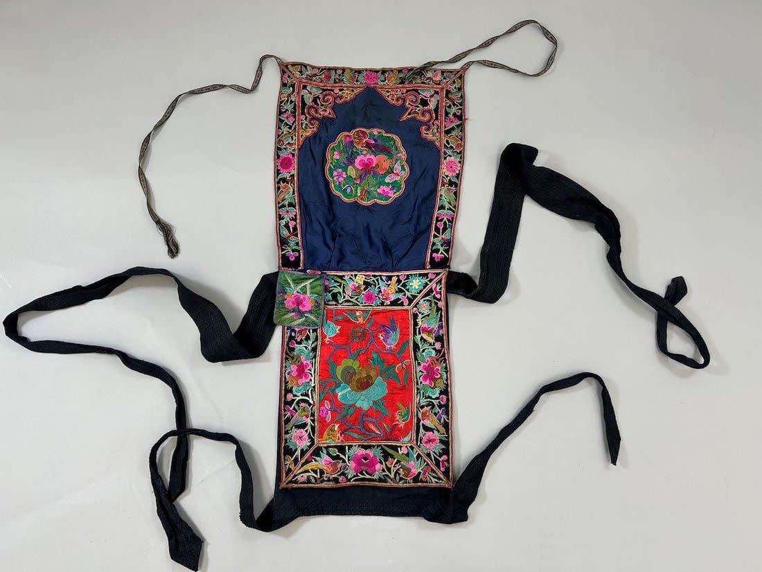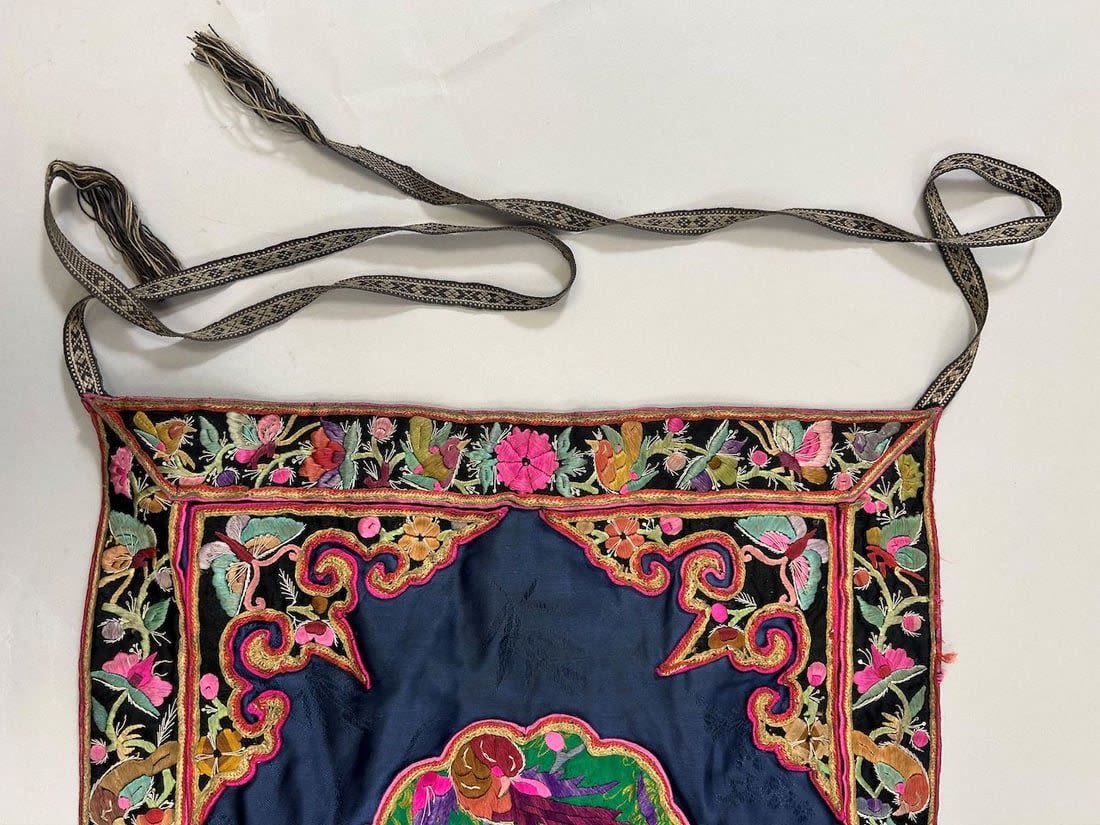 South China, Guizhou, embroidered silk possibly baby carrier, 31"l x 14"w