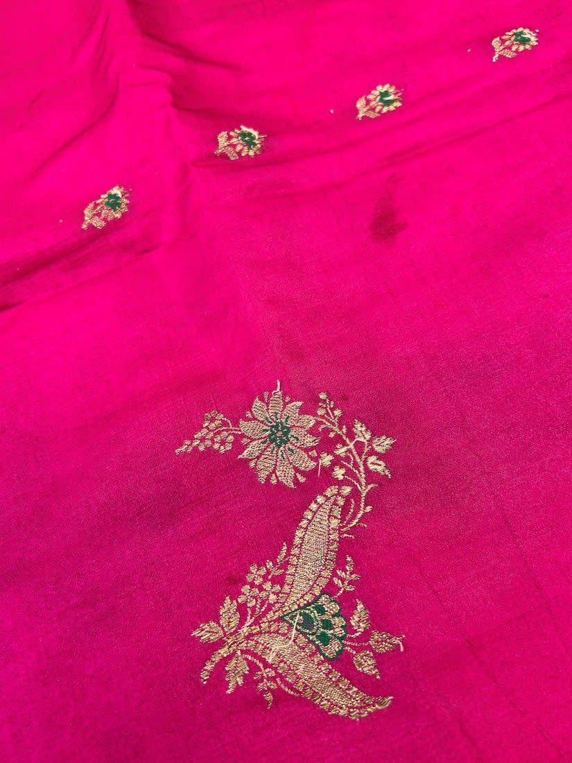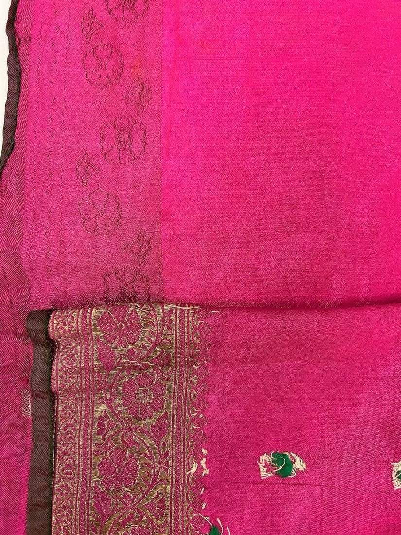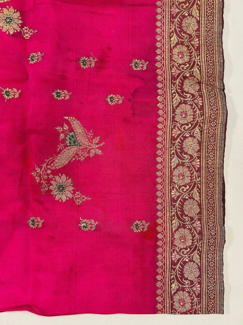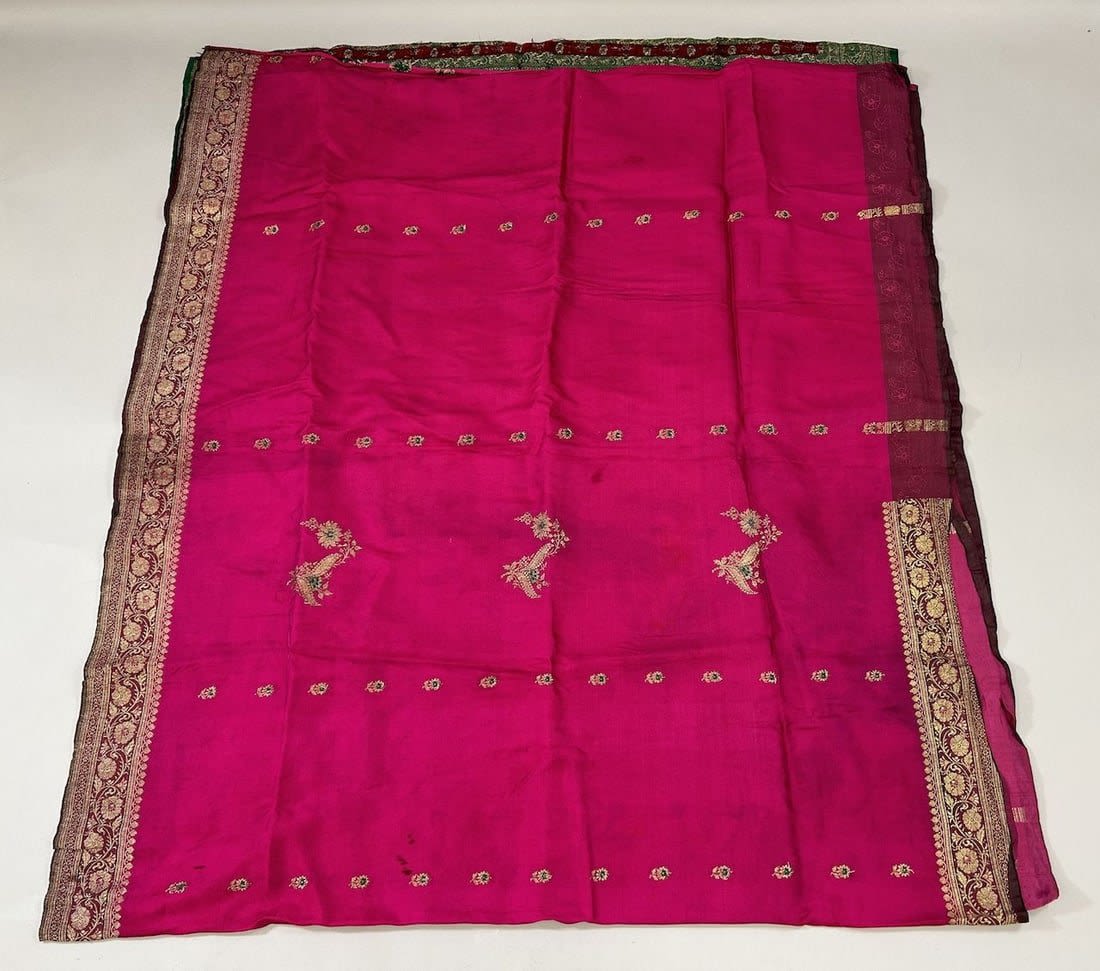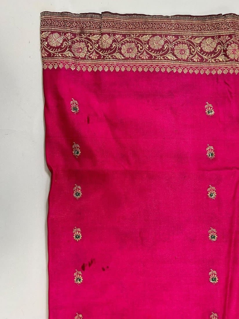 India Silk Sari with Metallic Gold Pattern, 192"l x 42"w