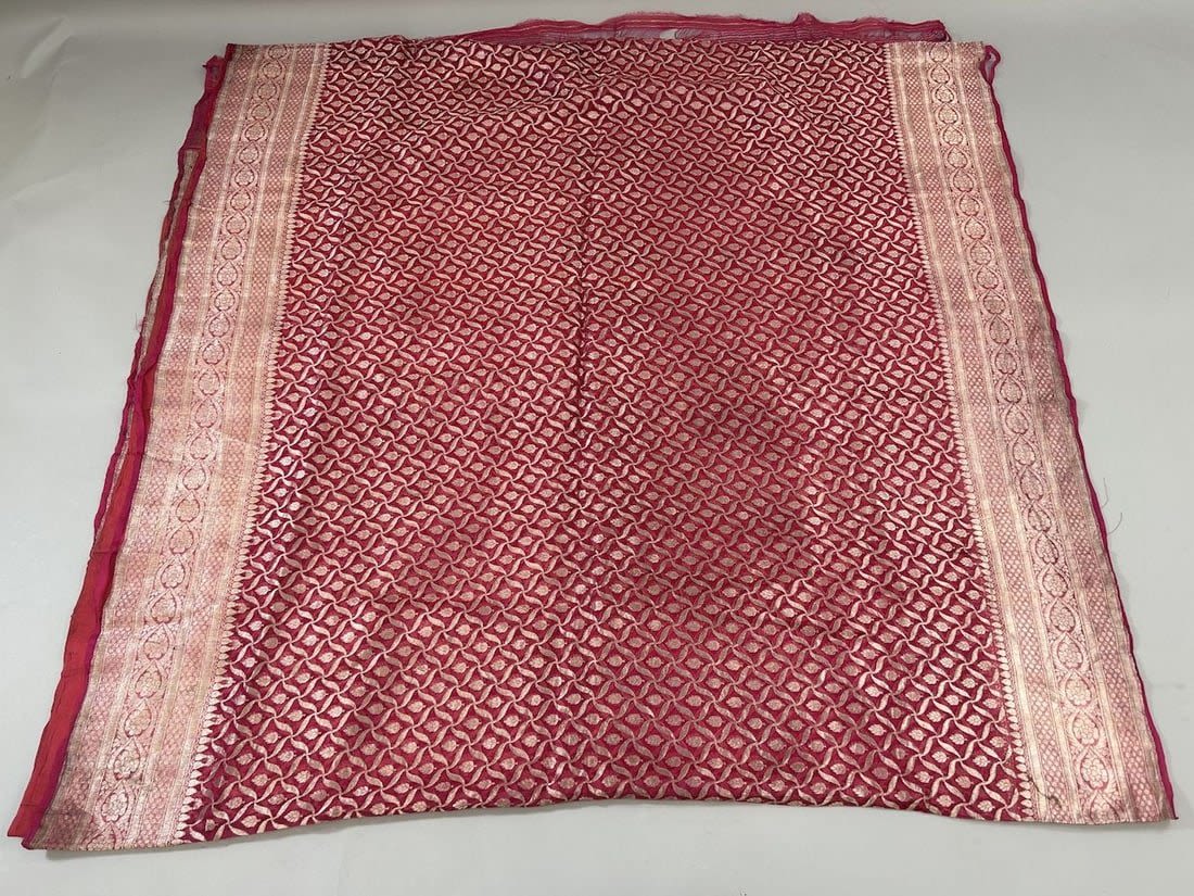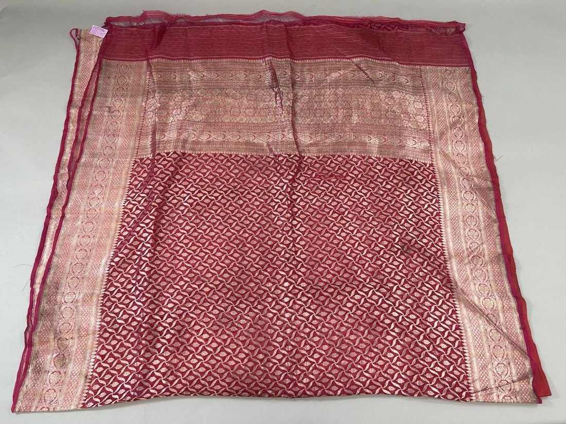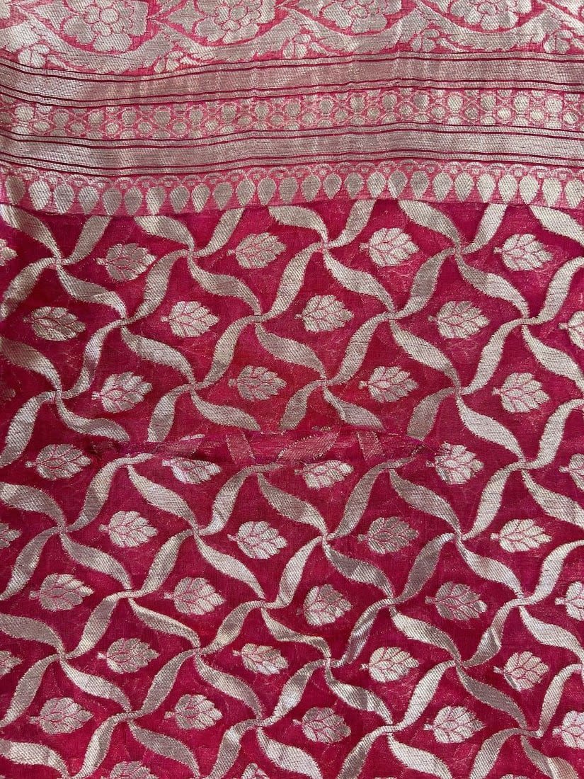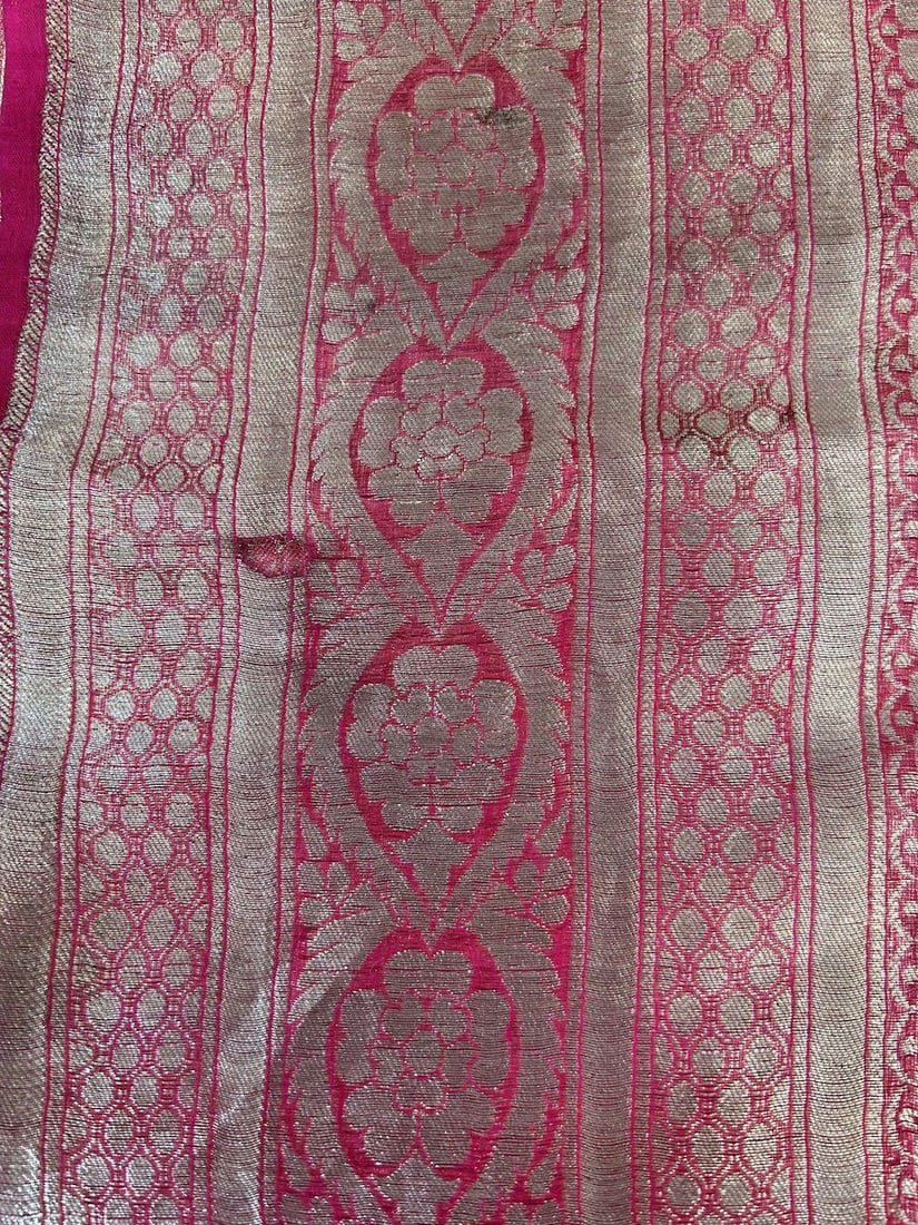 India Silk Sari with Metallic Silver Tone Pattern, 192"l x 43"w