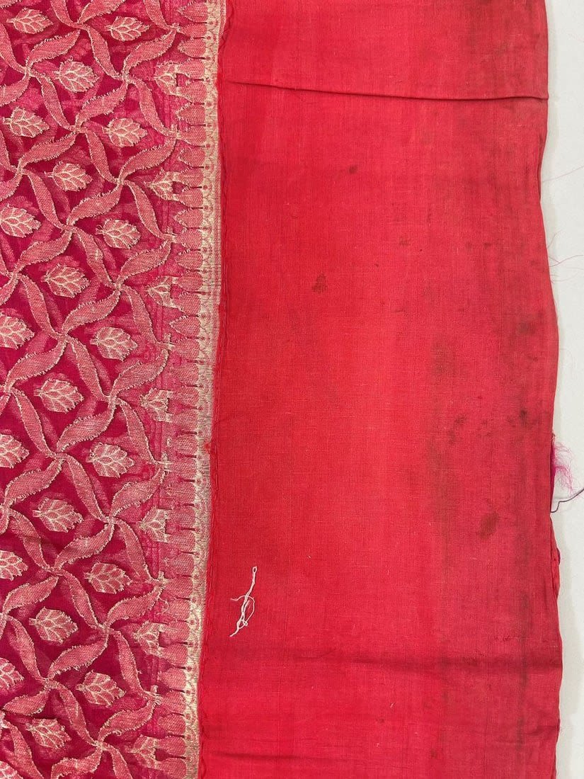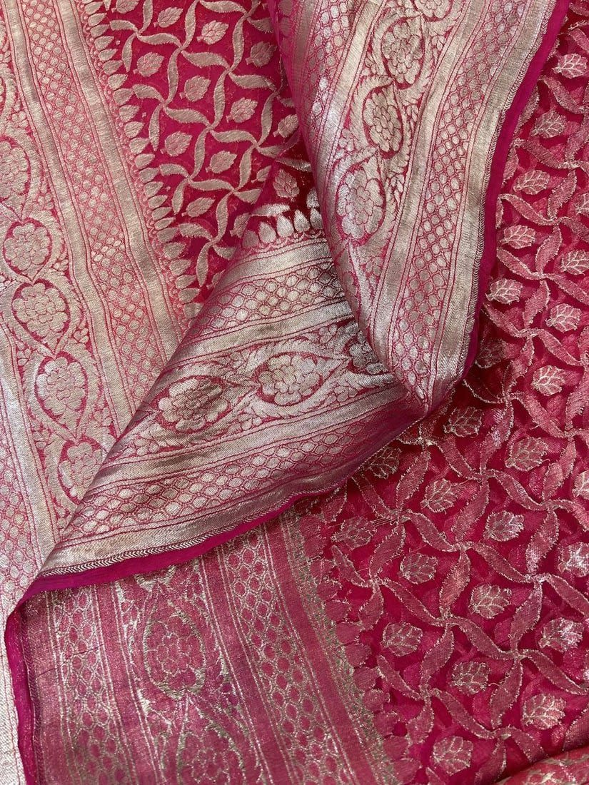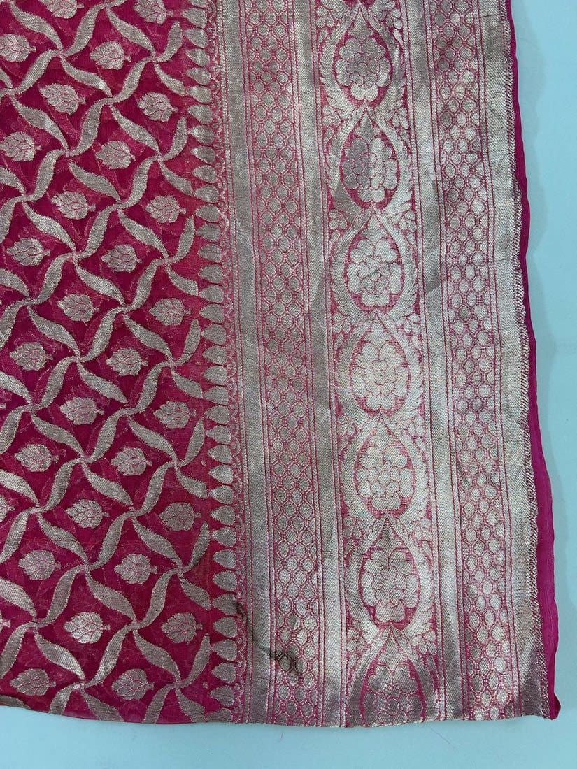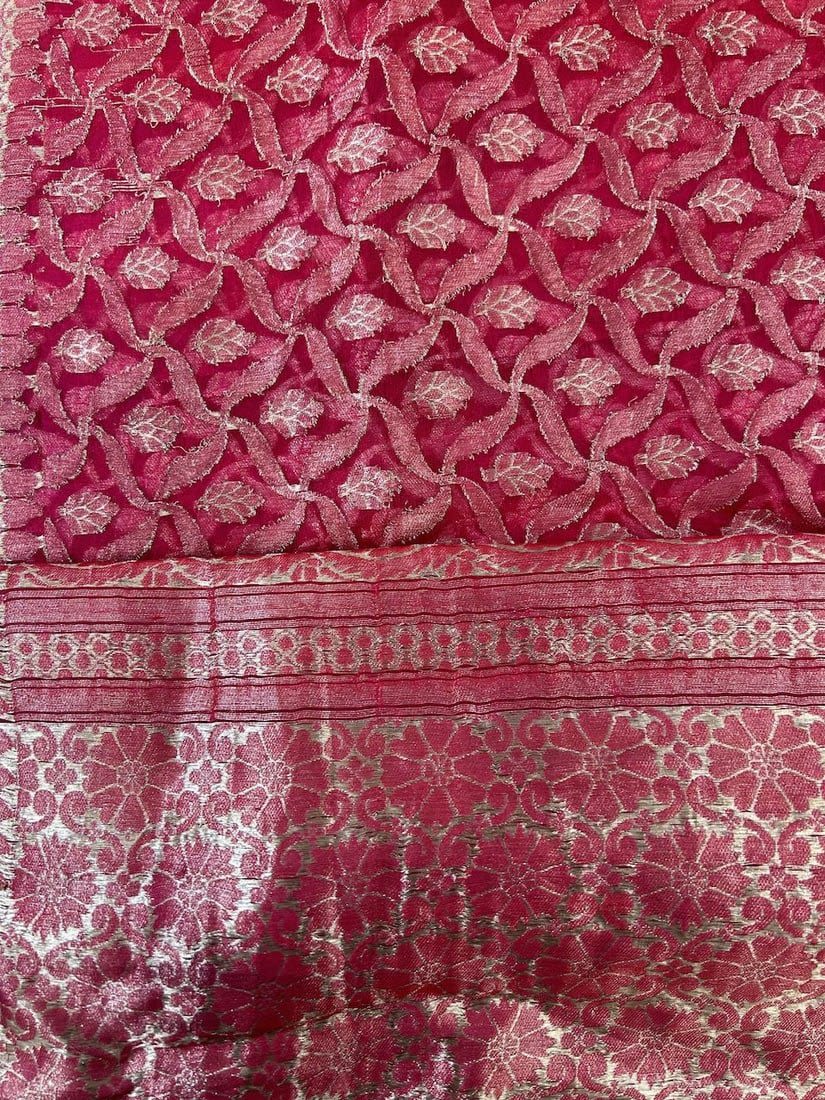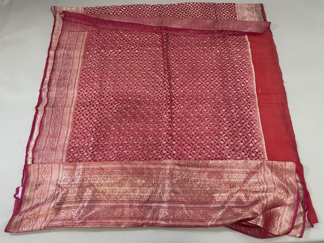India Silk Sari with Metallic Silver Tone Pattern, 192"l x 43"w