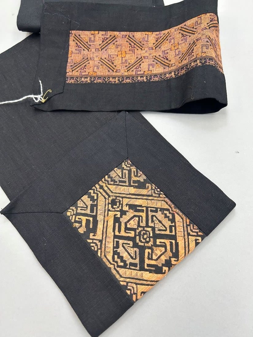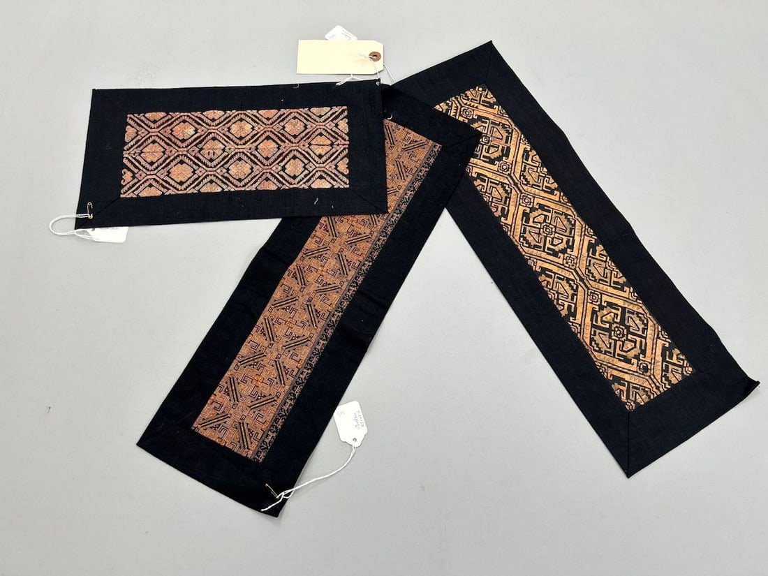 Group of (3) South China, wowen silk and cotton accessories, largest 20"l x 7"w, smallest 13.5"l x 7"w