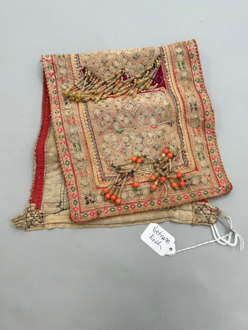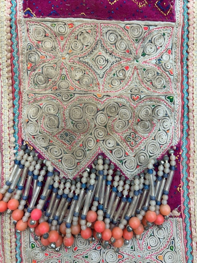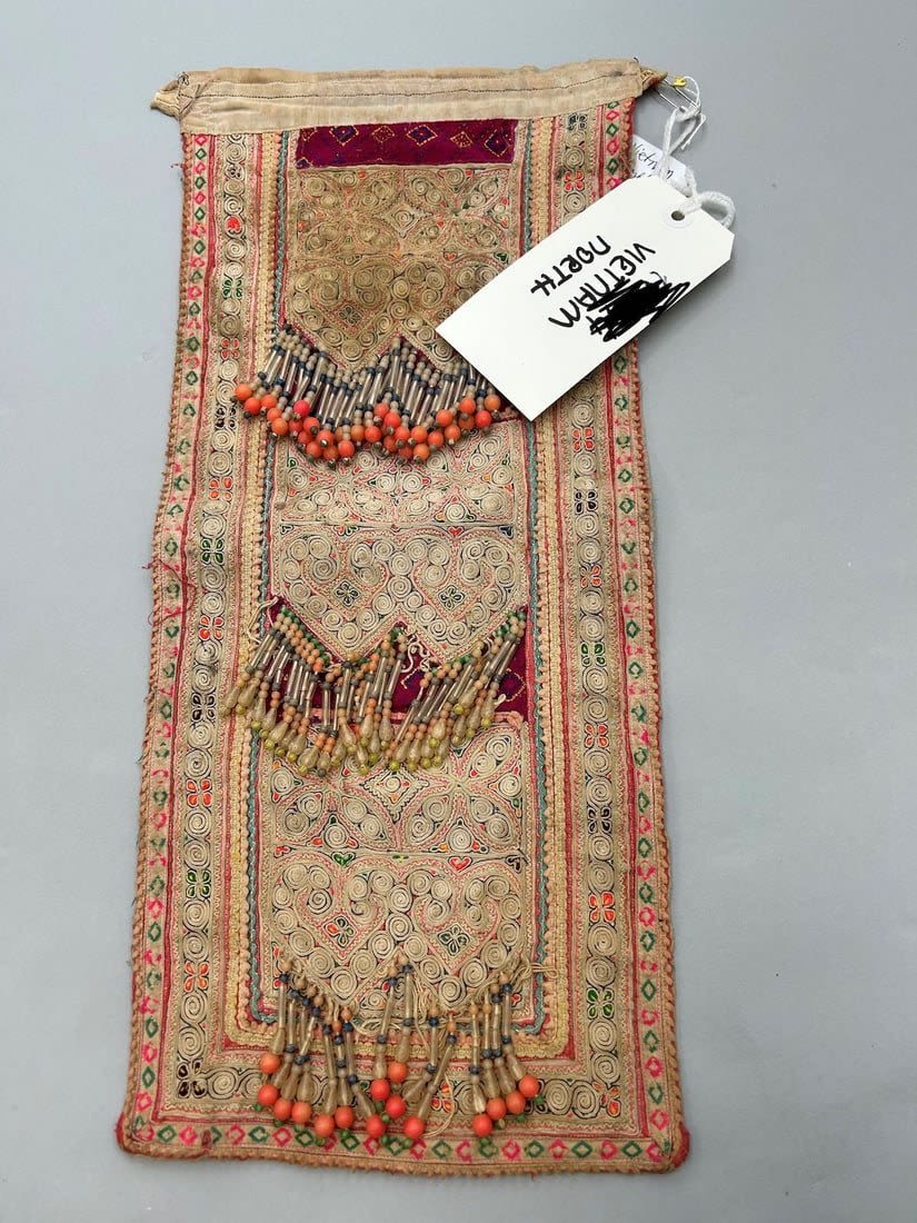 North Vietnam, beaded and embroidered textile, 20"l X 8"w