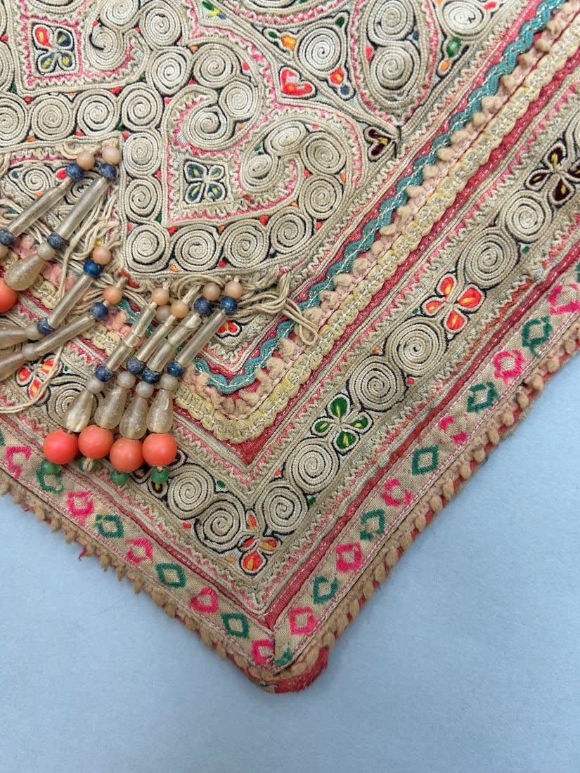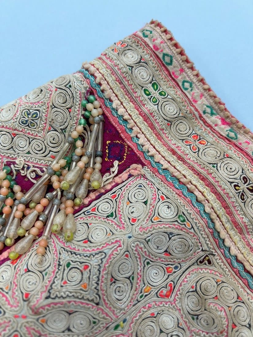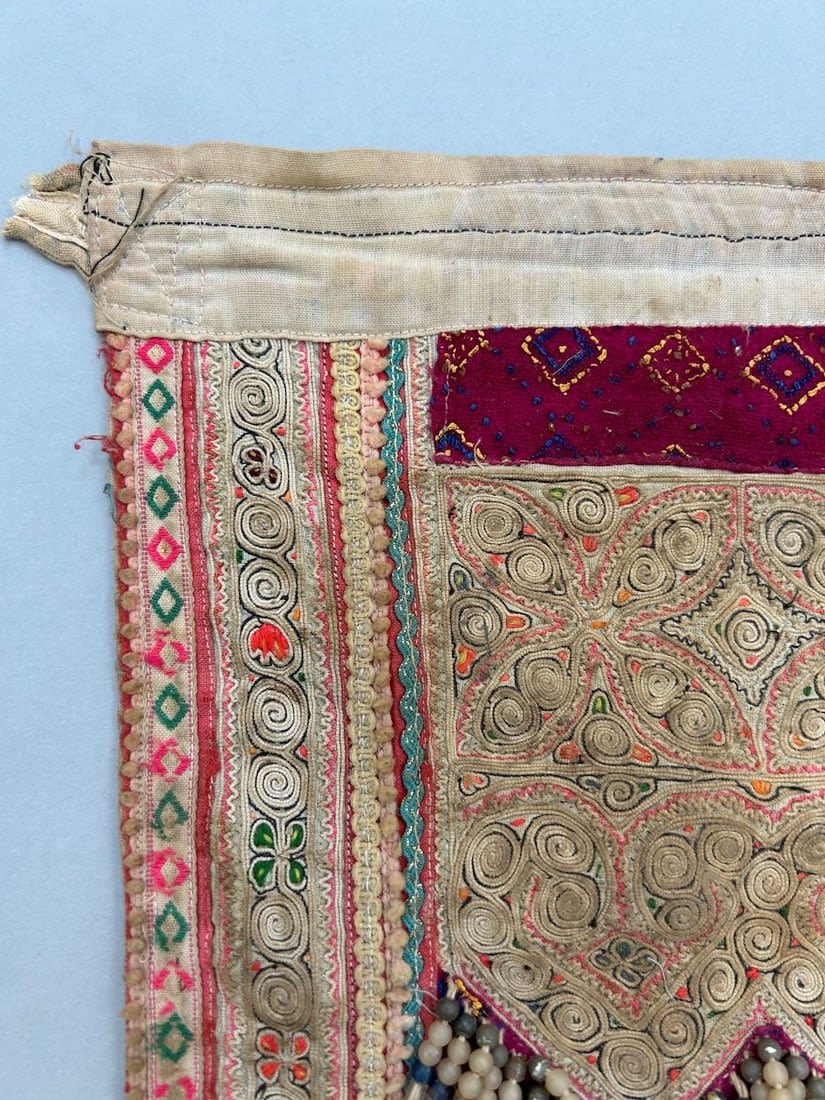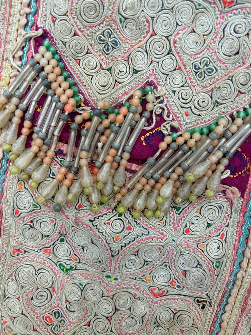 North Vietnam, beaded and embroidered textile, 20"l X 8"w