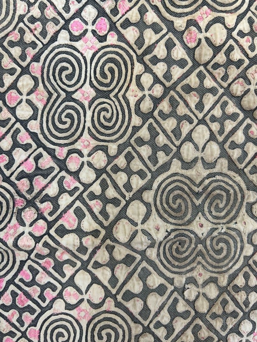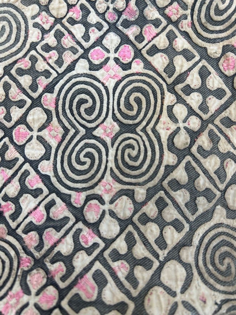 North Thailand/South China, Hmong Hill Tribe, cotton textile with applique pattern, 12"l x 10"w
