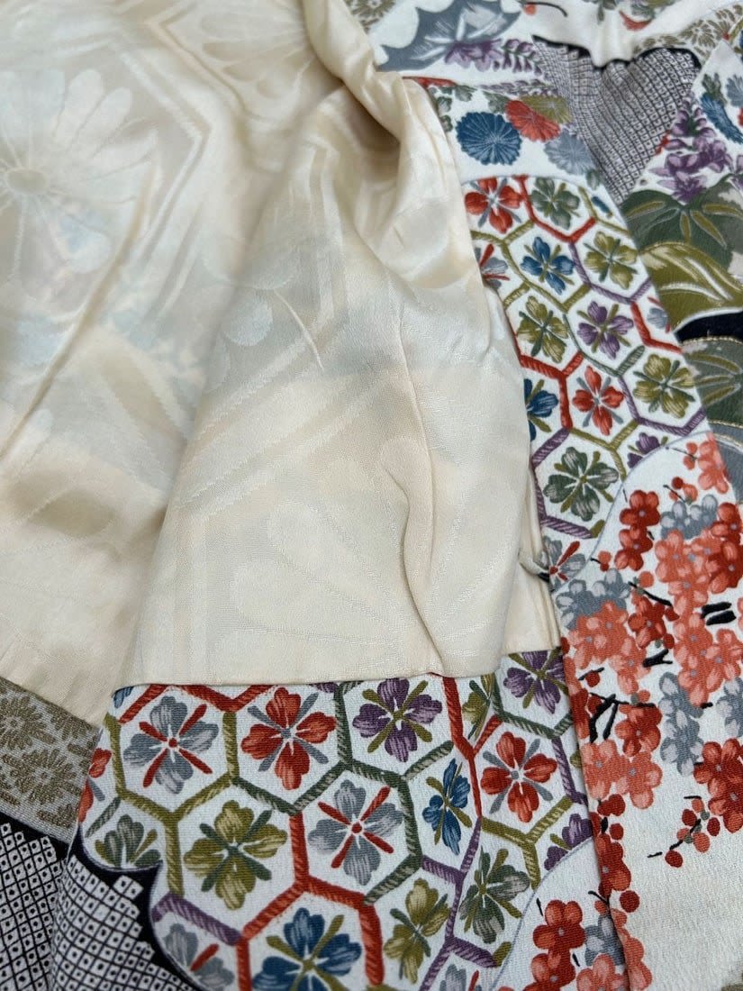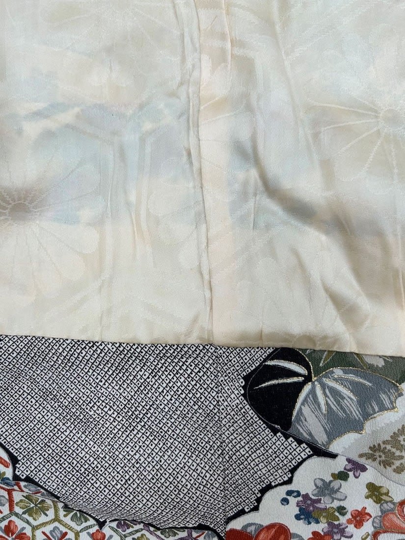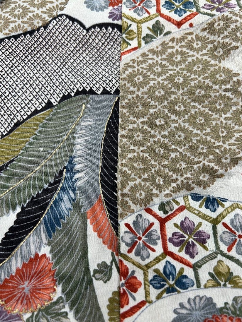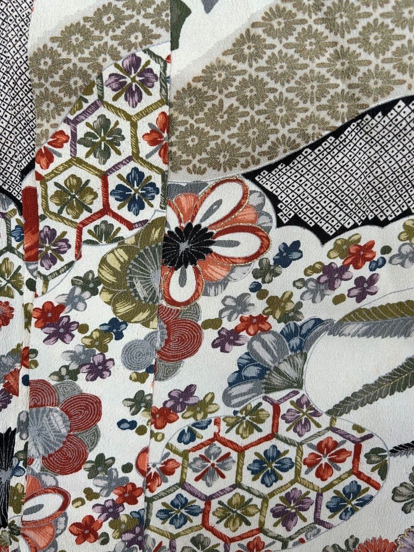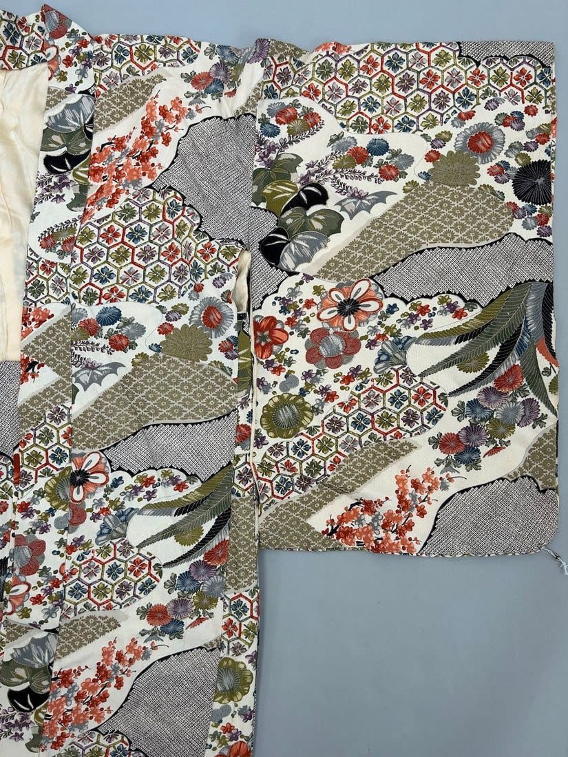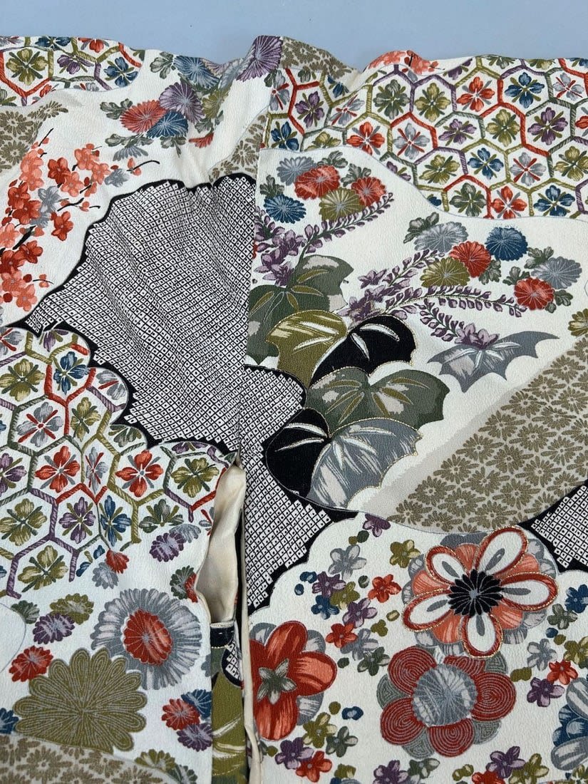 Japan, Floral Silk Crepe Pattern Kimono