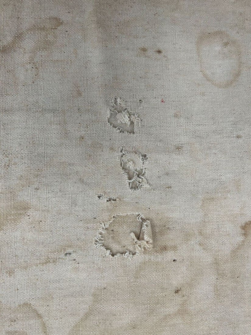 Condition: Fair, stains, some holes, some tears, some fabric loss, signs of wear and age