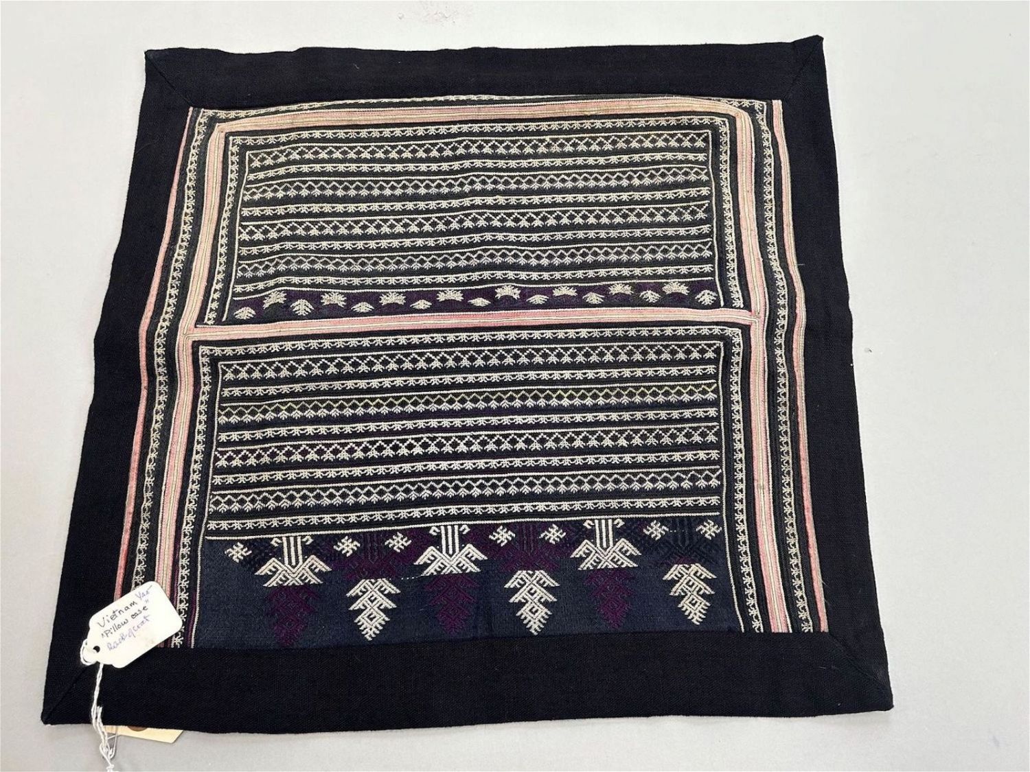 Vietnam, embroidered cotton pillow case, 18"l x 16.5"w