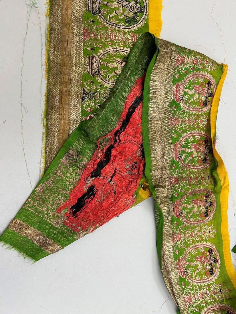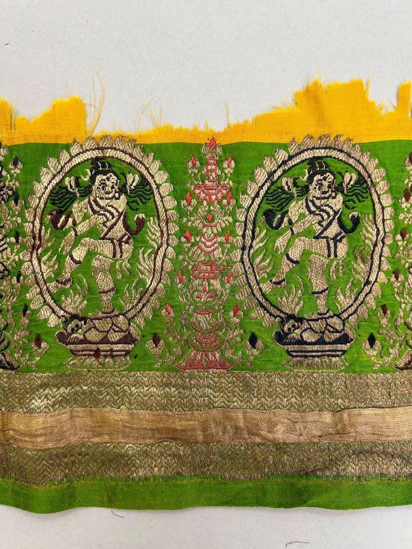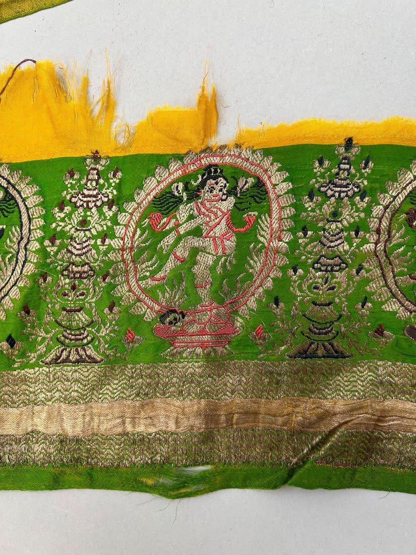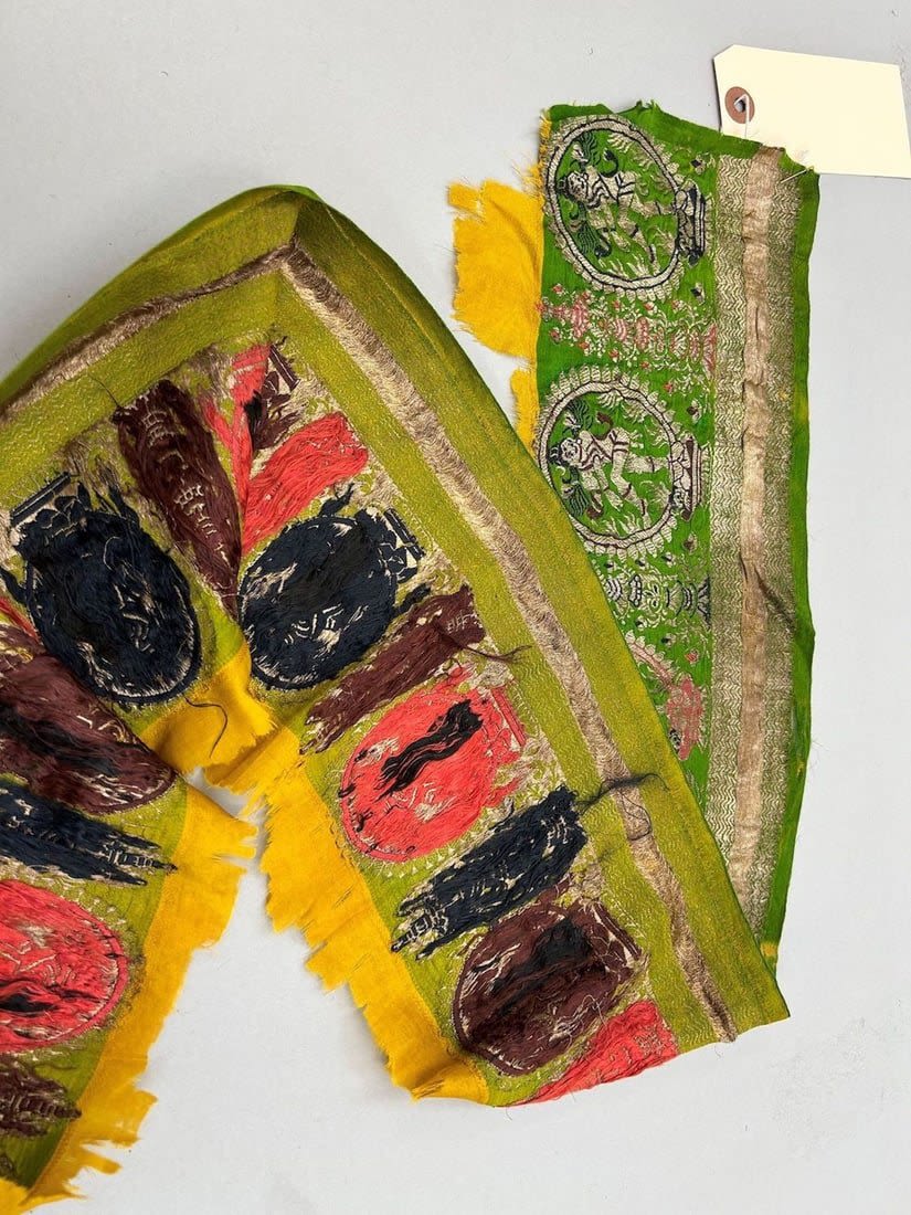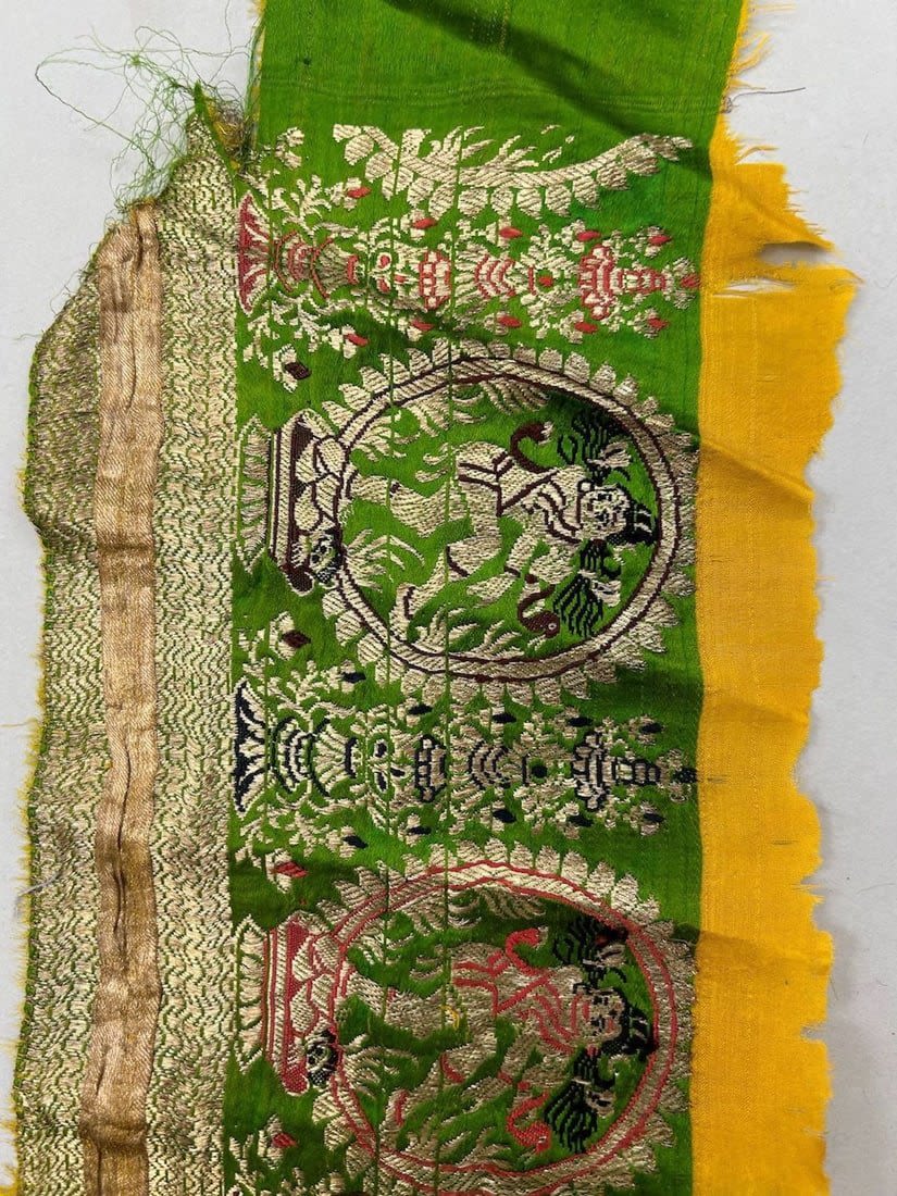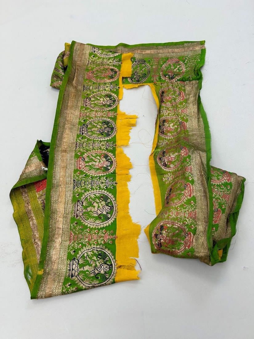 India, silk brocade remnant most likely sari border, largest part 167"l, smallests part 41"l x 6"w,