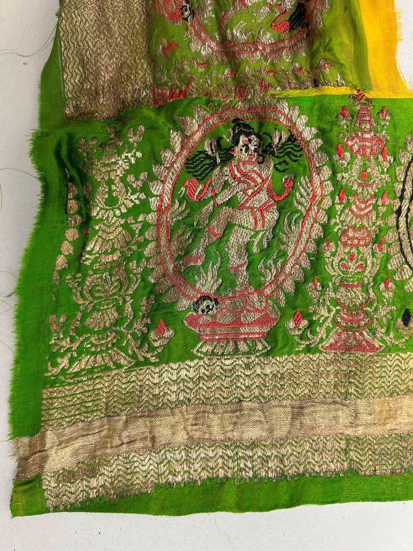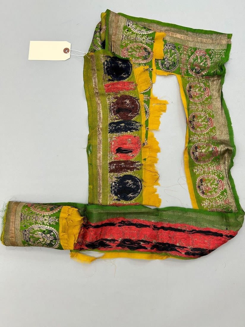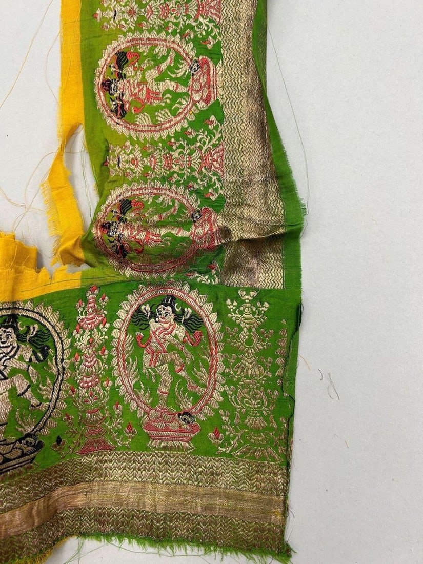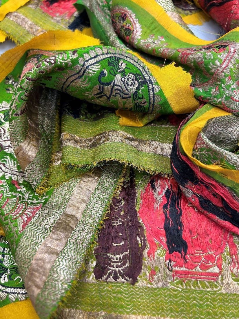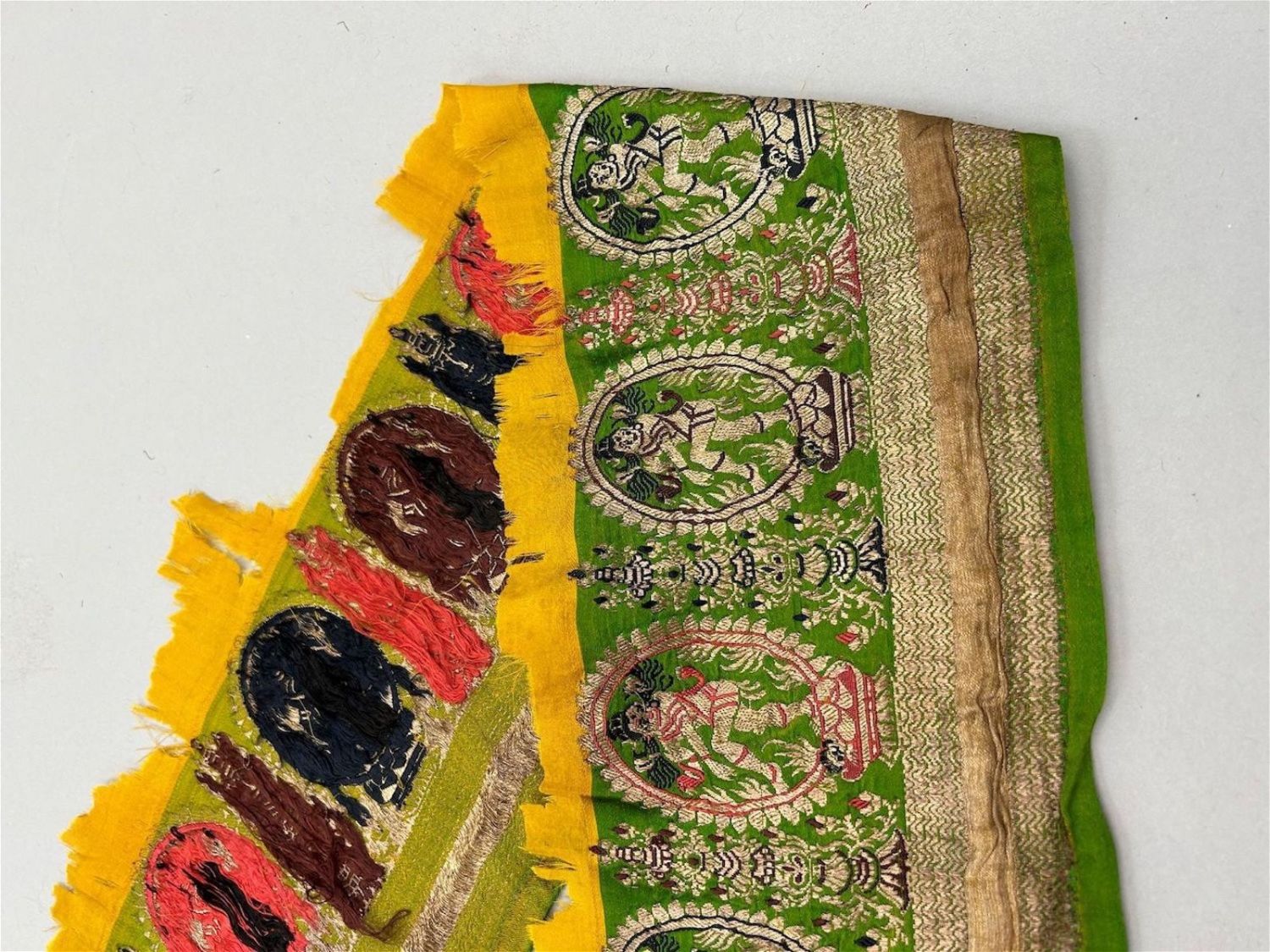 India, silk brocade remnant most likely sari border, largest part 167"l, smallests part 41"l x 6"w,