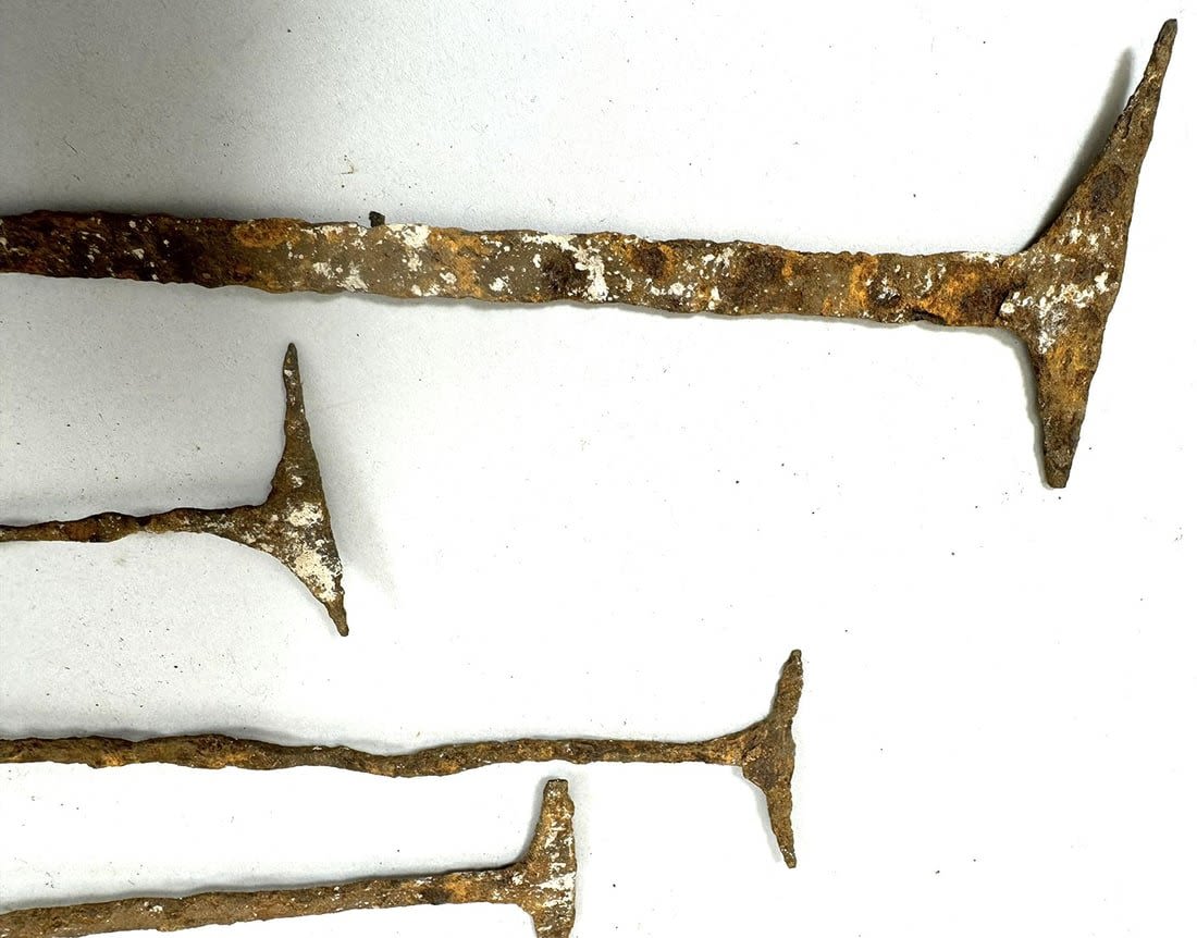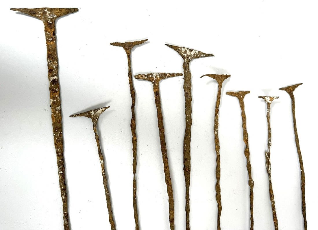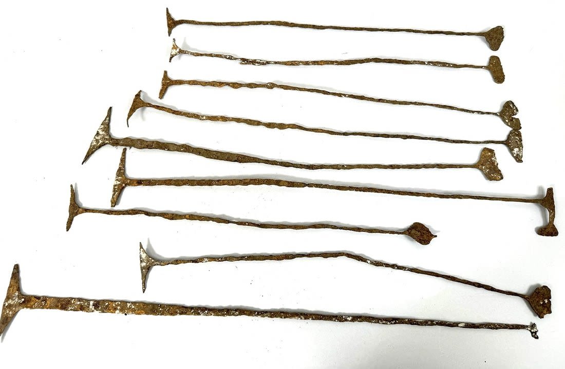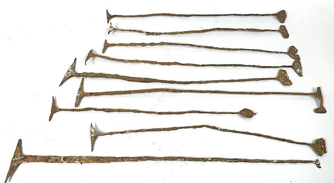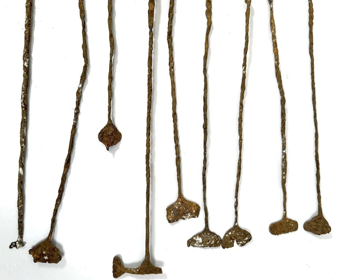 Bundle of Kissi peoples’ large forged iron currency, Sierra Leone/Guinea, West Africa. Largest approx. 21" long