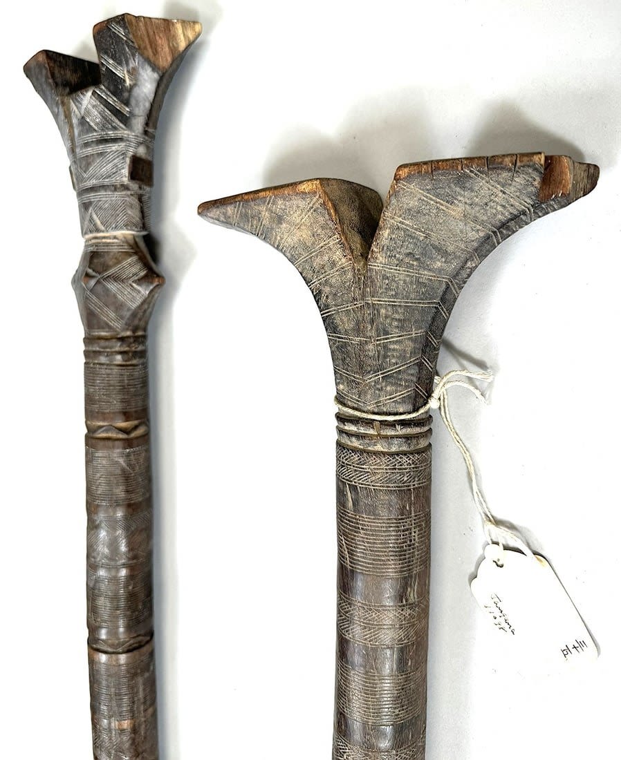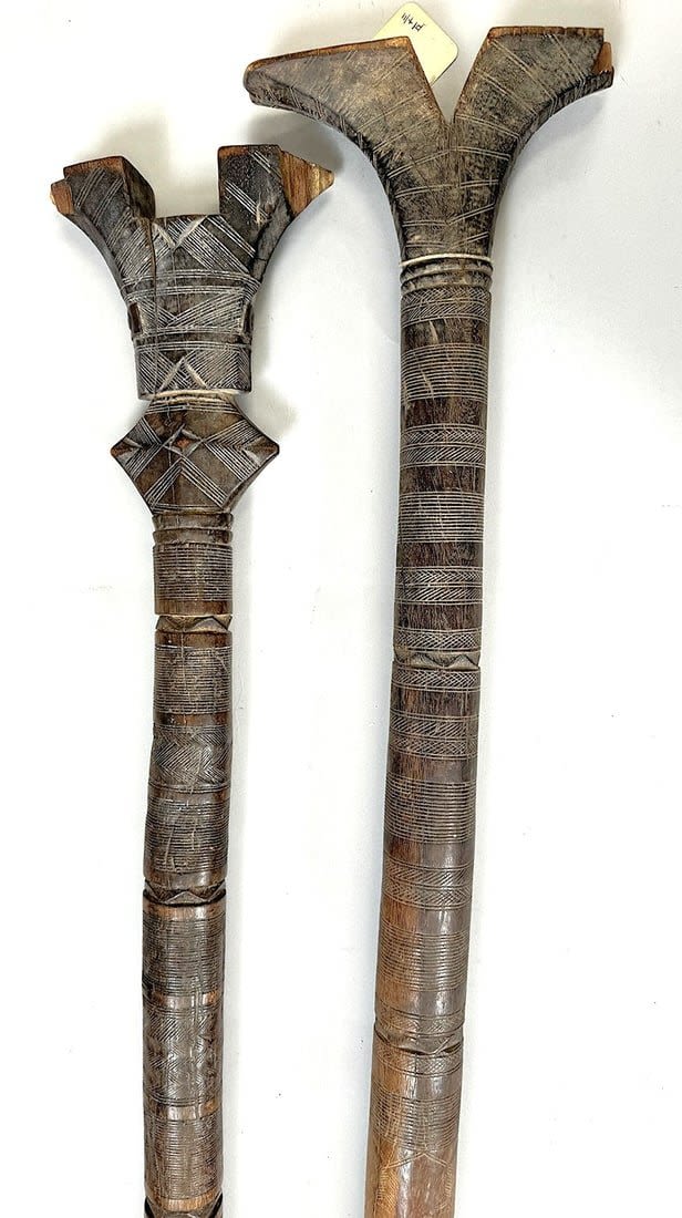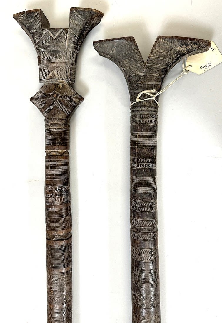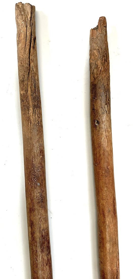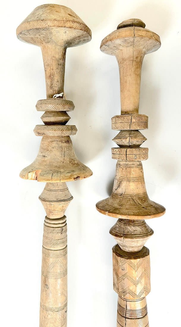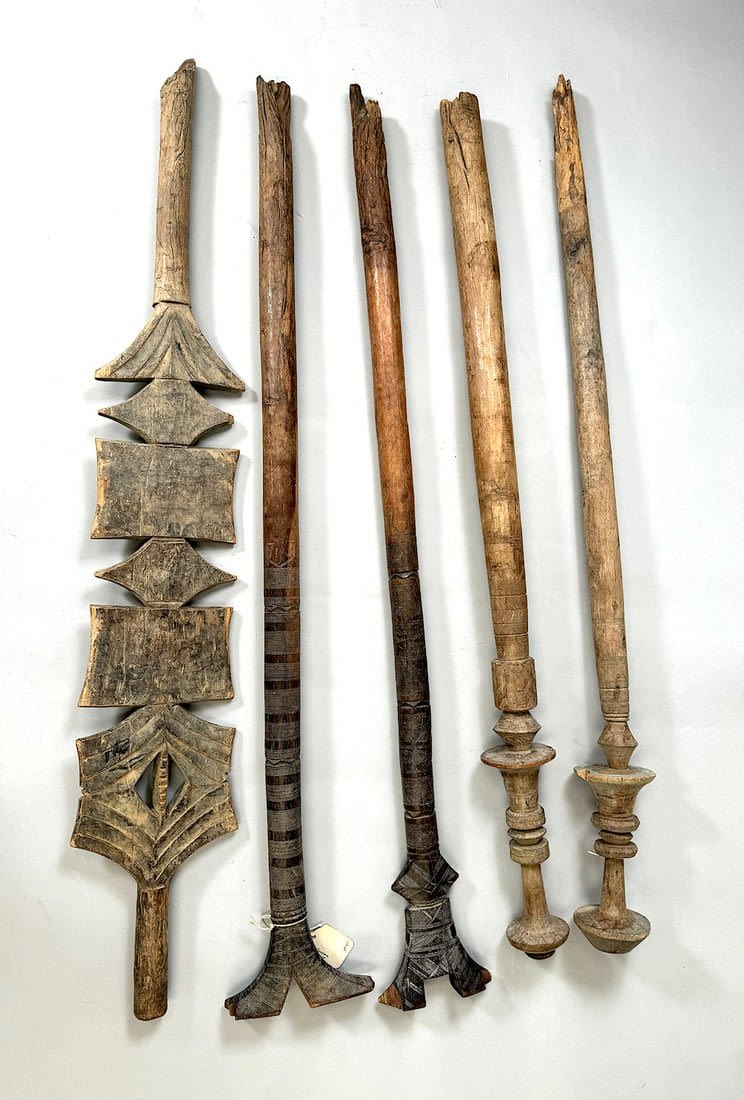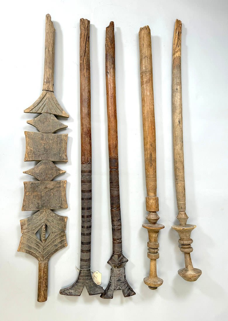 Five Tuareg wood tent poles, North or West Africa. Dimensions (approx.): 44" (longest) to 42" (shortest)