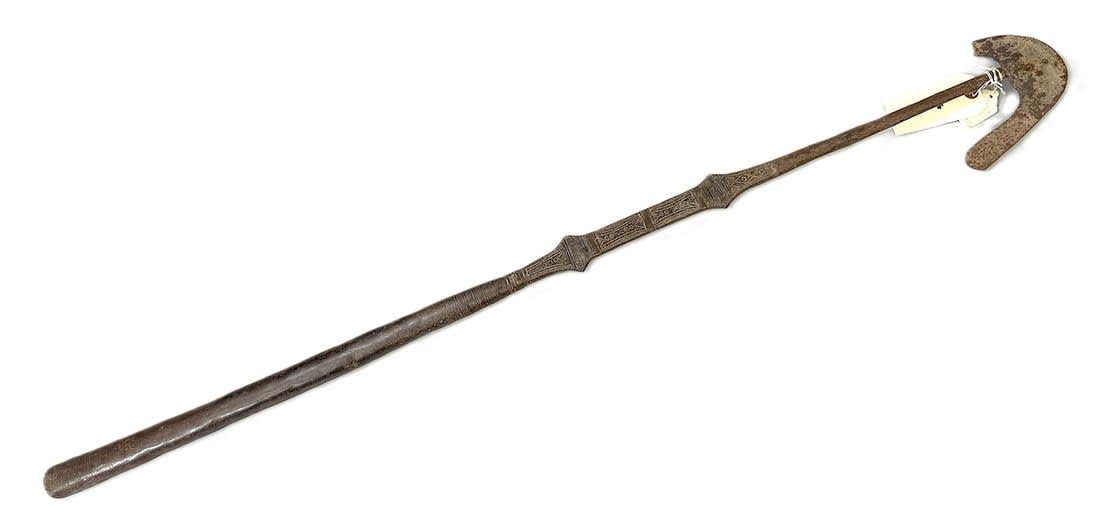 Wrought iron hoe, possibly Tuareg peoples, Mali, West Africa. Dimensions (approx.): 45.5" long