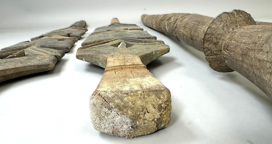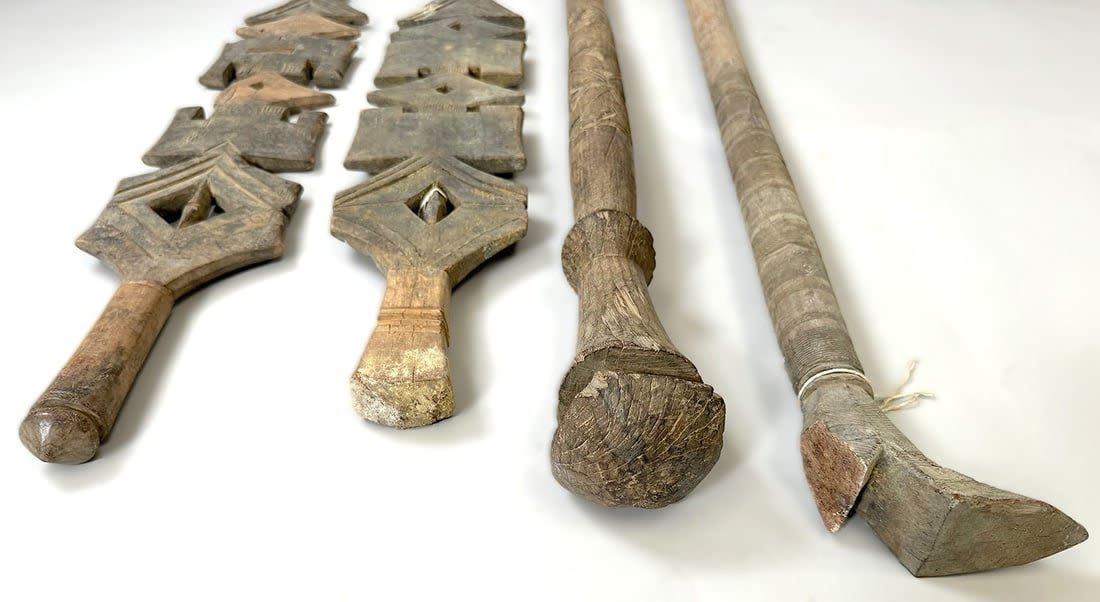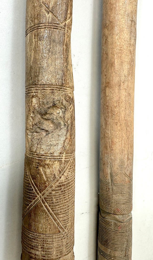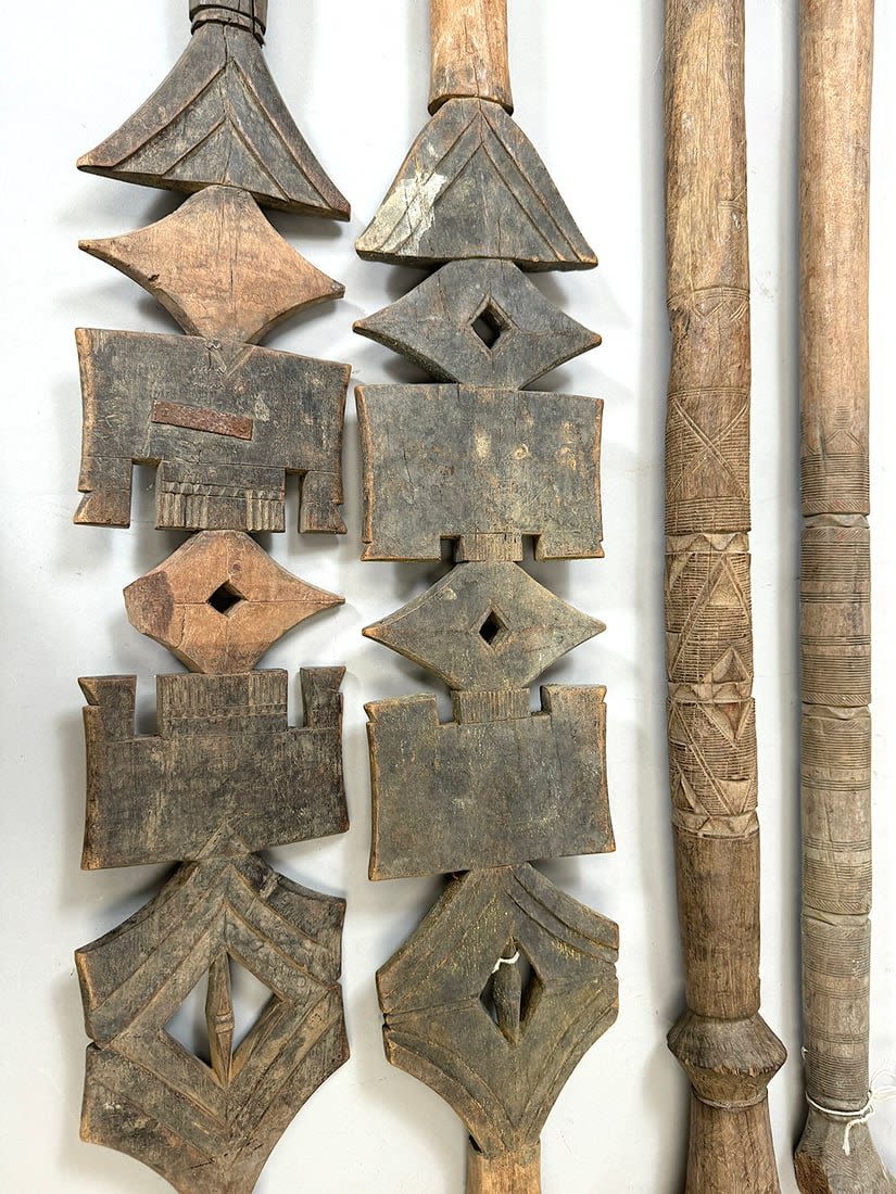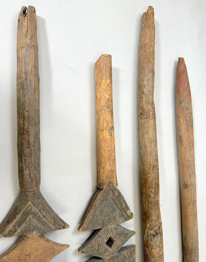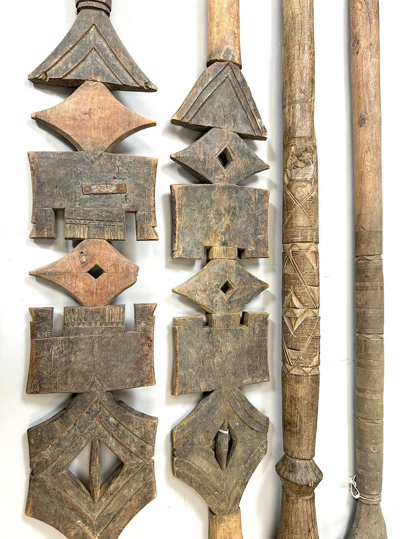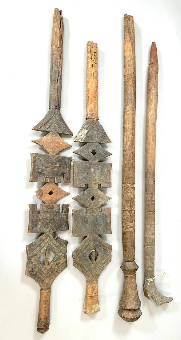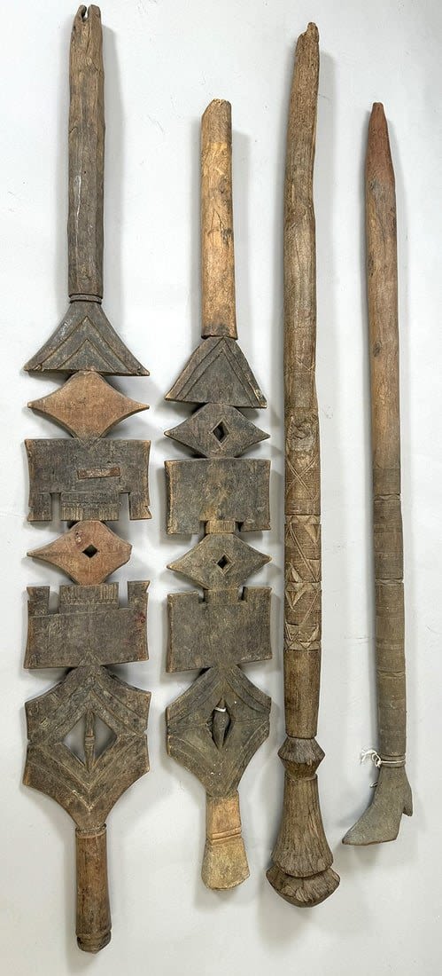 Four Tuareg wood tent poles, North or West Africa. Dimensions (approx.): 44" (longest) to 38" (shortest)