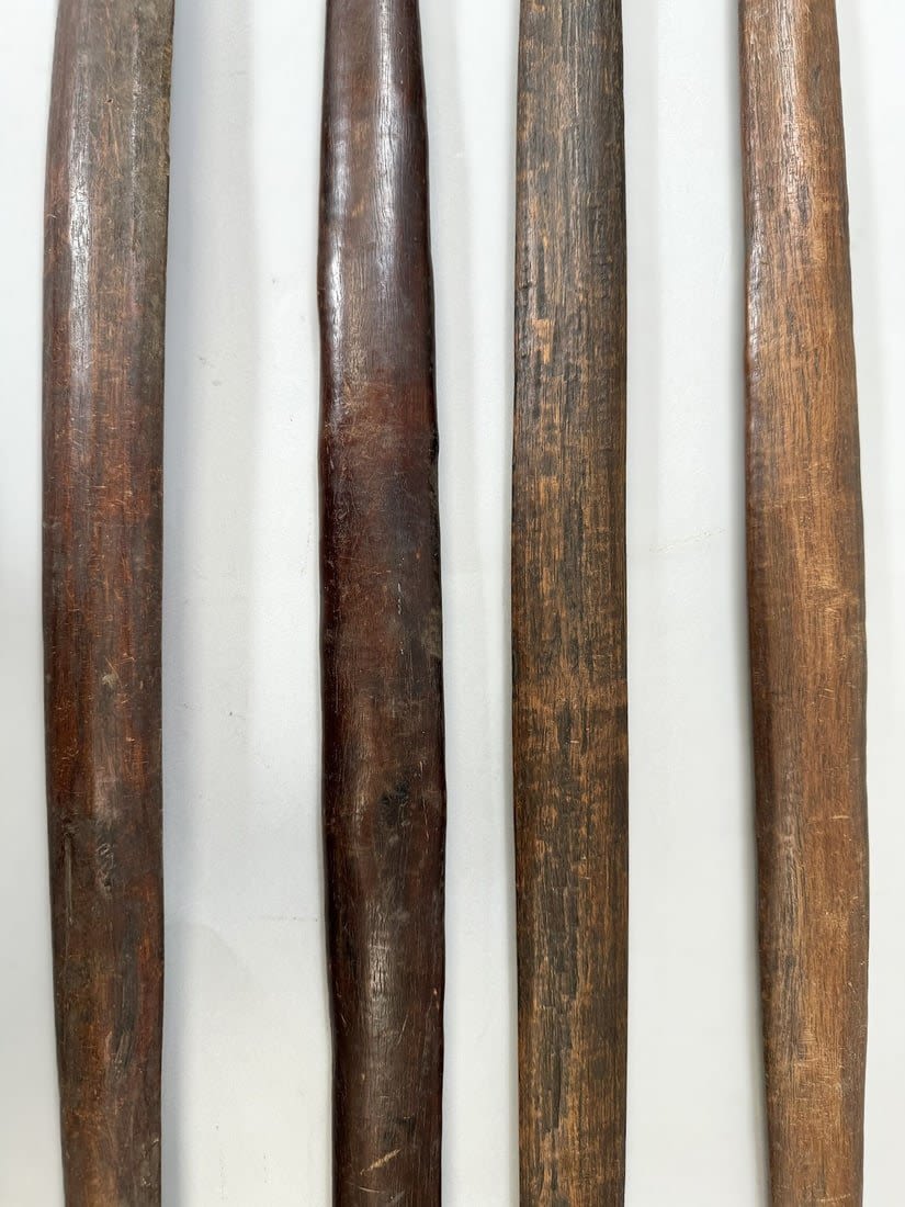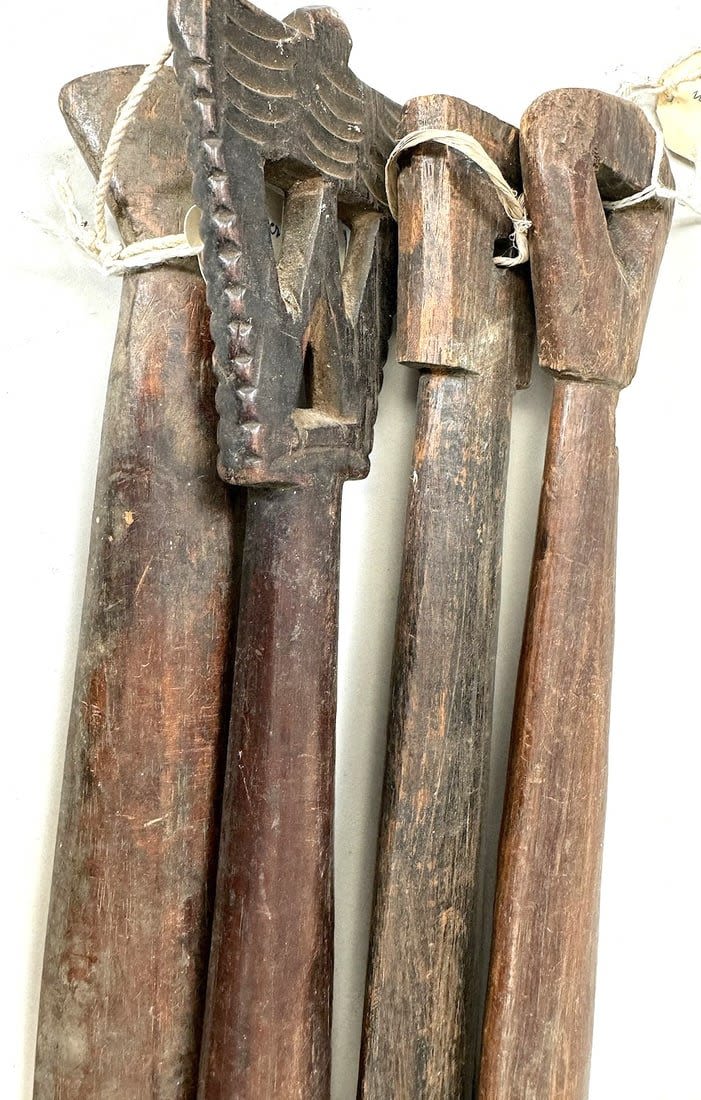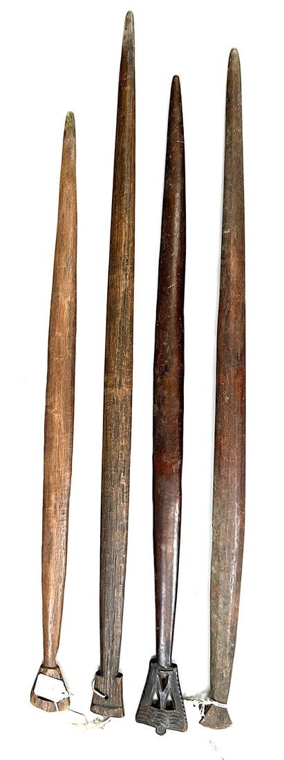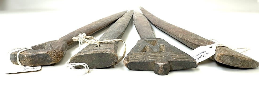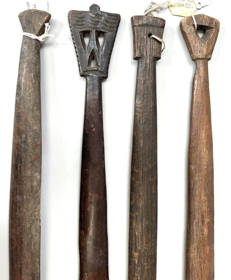 Four Nup peoples wood weaving sticks, Nigeria, West Africa. Condition: Fair; scratches, dents, wear consistent with age